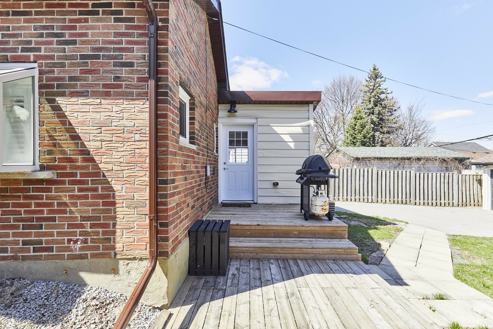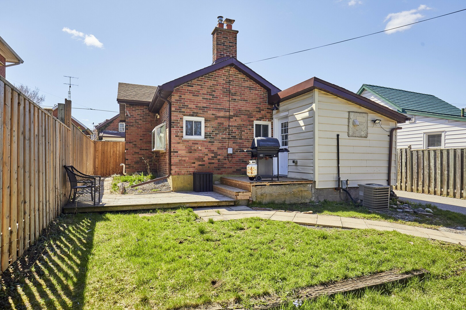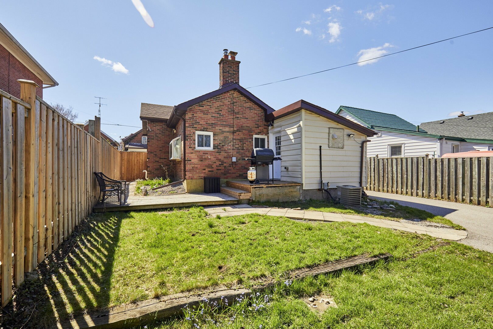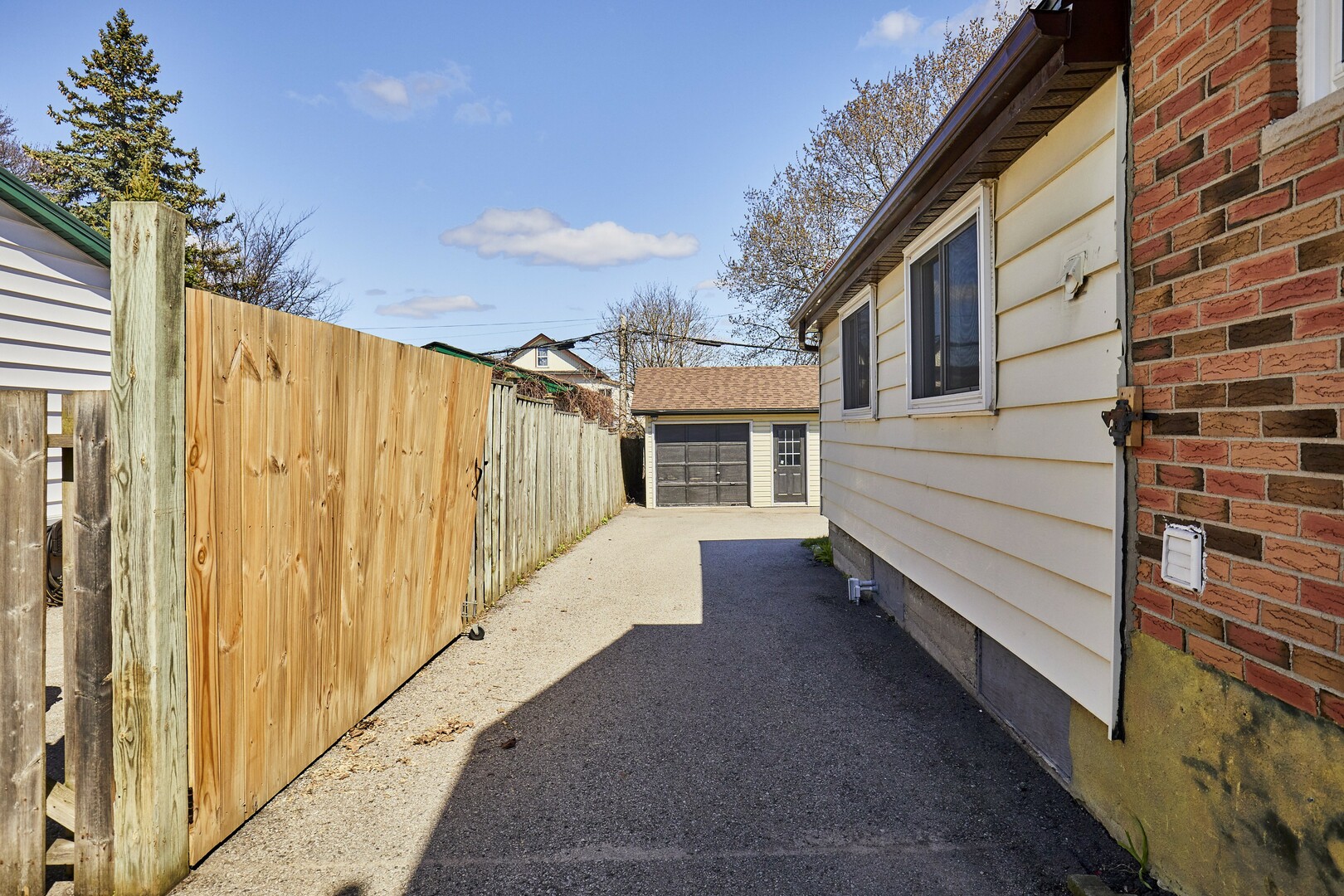 Great fenced in backyard with detached single garage with all new plywood inside and roof.