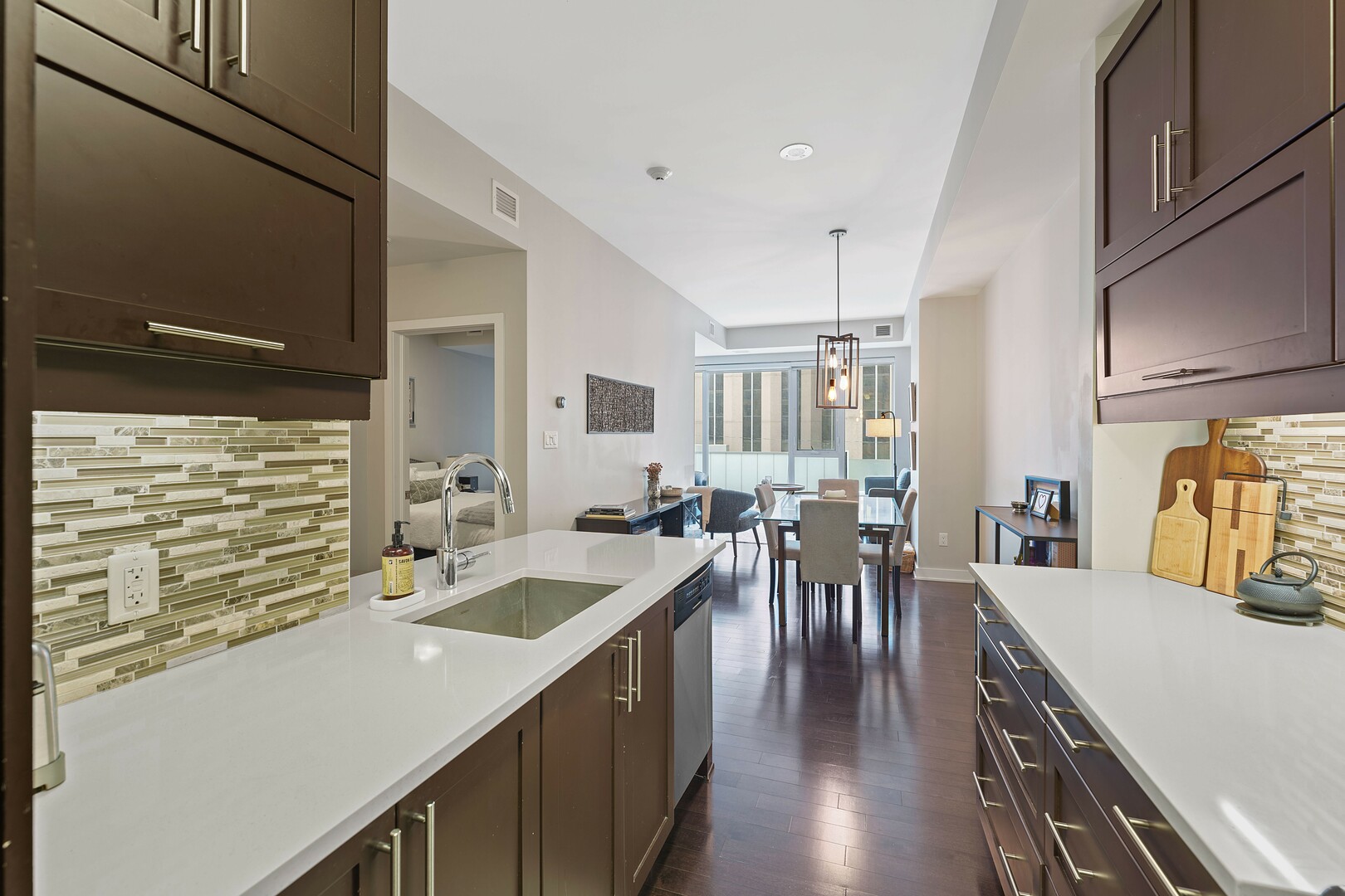 Discover Luxury Living In this Impeccable 1 Bed + Den Condo (875 Sqft) In The Heart Of Downtown Ottawa's Vibrant Parliament Hill Area. This Spacious And Rare THE PLAZA Floor Plan Unit Boasts Floor-To-Ceiling Windows, Gleaming Hardwood Floors, Upgraded Ceiling-Height Kitchen Cabinets And A Private Balcony Perfect For Relaxation. The Open-Concept Chef's Kitchen Features Corian Countertops, A Peninsula Breakfast Bar, And Premium Stainless Steel Appliances, While The Spacious Den Doubles As A Second Bedroom. Enjoy The Master Bedroom With Ample Closet Space And Large Widow, A Modern Bathroom And The Convenience Of In-Suite Laundry. Included Are (2) TWO PARKING Spots In The Underground Heated Garage And A Storage Locker. This Unit Floods With Natural Light, Offering An Elegant Foyer, Stylish Living, Dining Areas, And Access To The Exclusive Tribeca Building Amenities: A Swimming Pool And Sauna, Aprox. 4500 SQ FT Fitness Center, 7000 SQ FT Landscaped Terrace With Gas BBQs, Rooftop Observation Deck, Party Room, Guest Suites, And Dedicated Security. Steps Away From Farm Boy Supermarket (Direct Access Through Building), With Rexall And Top Schools Nearby. Just 1.1 Km From Ottawa Rideau Centre Mall, Byward Market, And The Rideau Canal, You're Minutes From Shopping, Nightlife, Fine Dining, And Transit, Including The LRT. Perfectly Situated Near Ottawa's Best Attractions, Cafes, And Parks, This condo Blends Sophistication, Comfort, And Unbeatable Convenience.