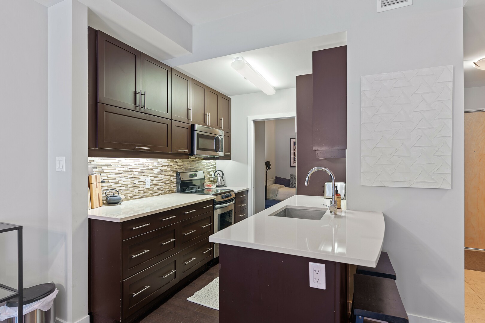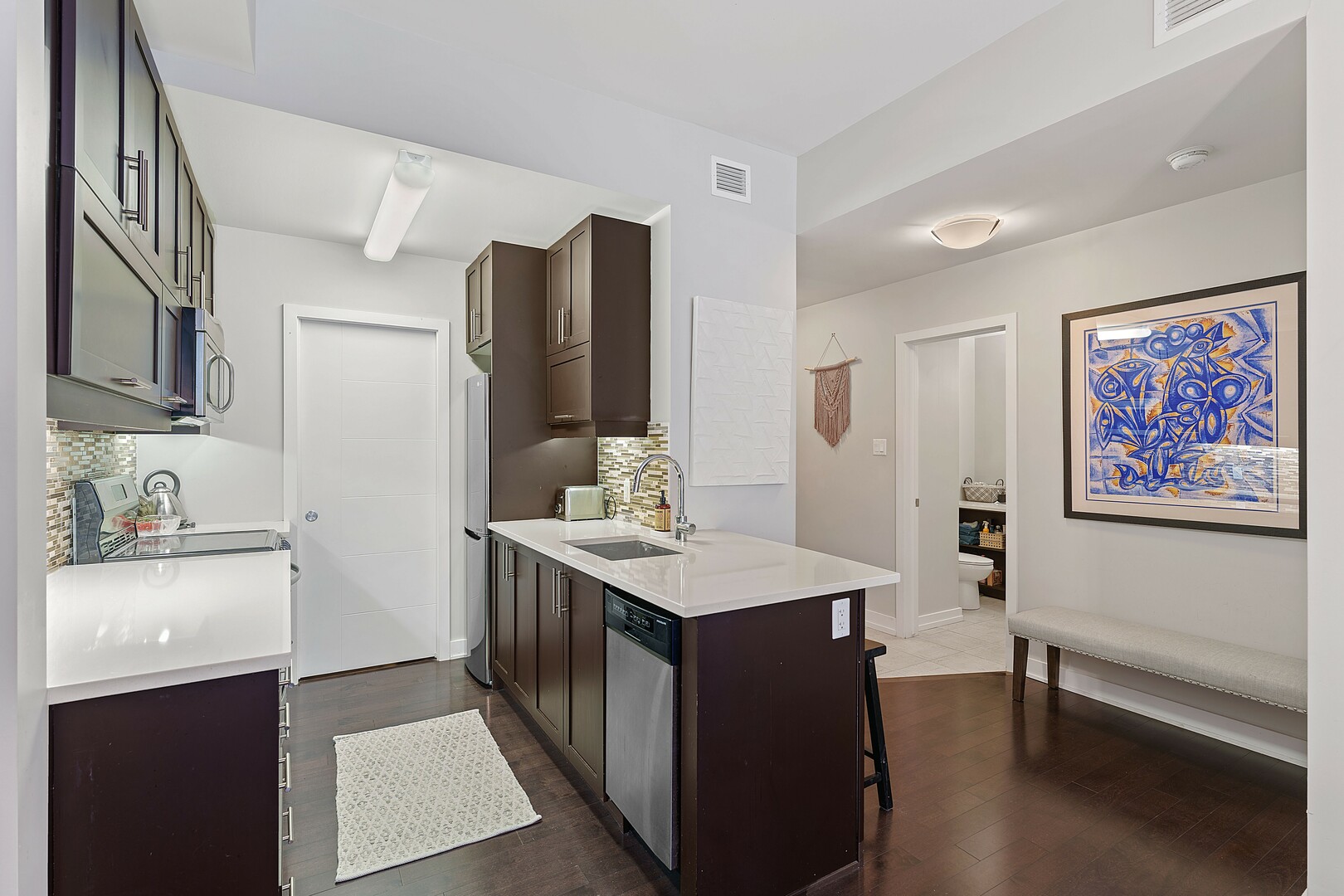 Discover Luxury Living In This Impeccable 1 Bed + DEN Condo (875 SQ FT) In The Heart Of Downtown Ottawa’s Vibrant Parliament Hill Area. This Spacious And Rare THE PLAZA Floor Plan Unit Boasts Floor-To-Ceiling Windows, Gleaming Hardwood Floors, Upgraded Ceiling-Height Kitchen Cabinets And A Private Balcony Perfect For Relaxation. The Open-Concept Chef’s Kitchen Features Corian Countertops, A Peninsula Breakfast Bar, And Premium Stainless Steel Appliances, While The Spacious Den Doubles As A Second Bedroom. Enjoy The Master Bedroom With Ample Closet Space And Large Window, A Modern Bathroom And The Convenience Of In-Suite Laundry. Included Are (2) TWO PARKING Spots In The Underground Heated Garage And A Storage Locker. This Unit Floods With Natural Light, Offering An Elegant Foyer, Stylish Living, Dining Areas, And Access To The Exclusive Tribeca Building Amenities: A Swimming Pool And Sauna, Aprox. 4500 SQ FT Fitness Center, 7000 SQ FT Landscaped Terrace With Gas BBQs, Rooftop Observation Deck, Party Room, Guest Suites, And Dedicated Security.