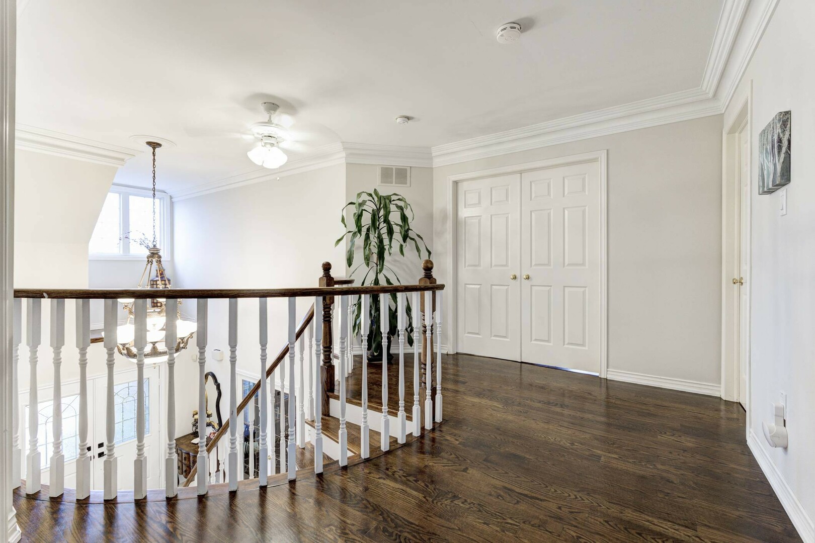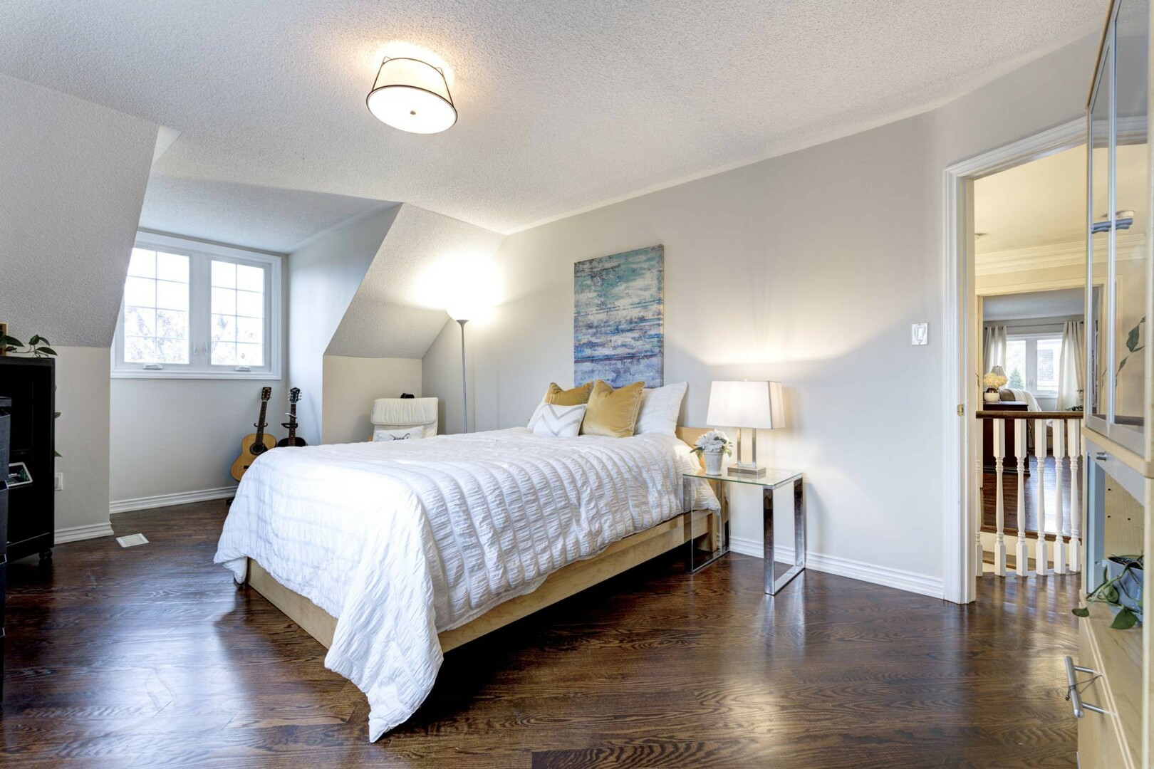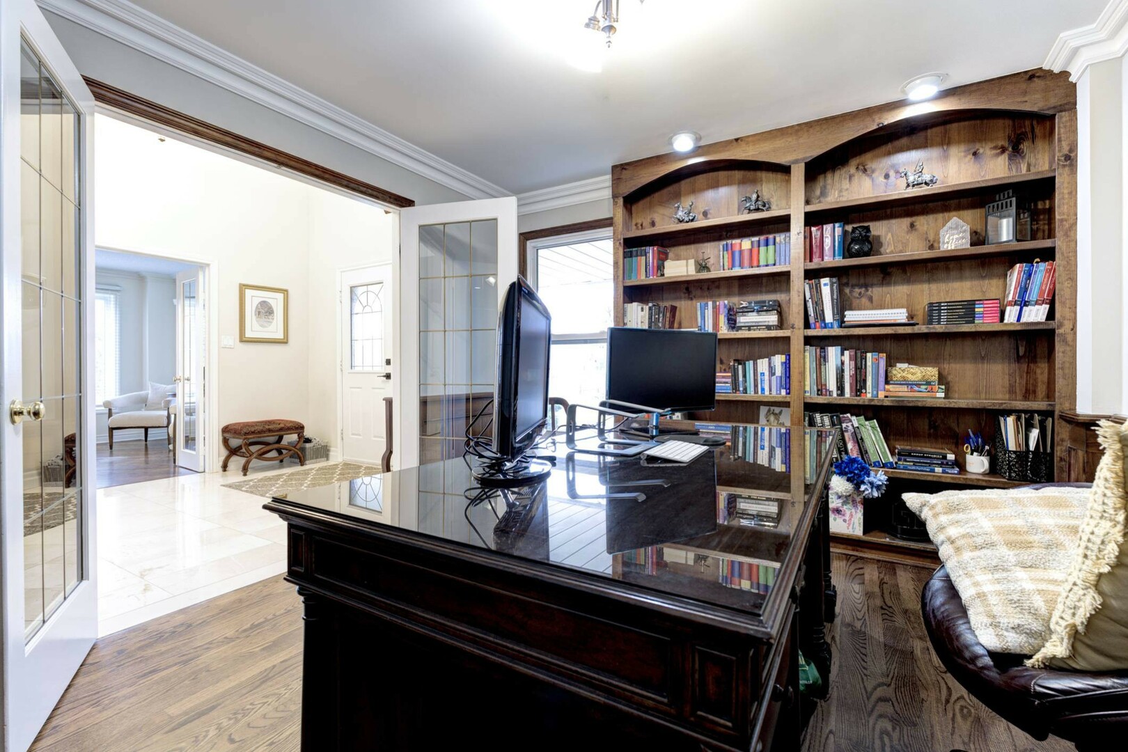1457 Postmaster Drive is an exquisite CAPE COD style home, a rare find on a sprawling RAVINE LOT nestled in the highly desirable Glen Abbey neighbourhood of Oakville. This beautiful property boasts 4+1 bedrooms, OVER 3000 SQ FEET ABOVE GRADE and features hardwood floors, a spiral staircase and 2-storey ceilings setting the stage for timeless elegance in your home. The large eat-in KITCHEN was tastefully UPDATED in 2020, featuring STAINLESS STEEL appliances and stunning QUARTZ countertops with a DOUBLE FARM SINK, making it the perfect place to prepare meals and entertain guests. A main floor office overlooking the front garden, separate dining room, living room and family offers plenty of space for everyone. Head upstairs, your primary suite sanctuary awaits you with a GAS FIREPLACE for cozy romantic nights and a huge ensuite bath, flooded with natural light from the newer skylights. Enjoy UPDATES GALOUR in this home and as well as peace of mind with a NEW FURNACE AND A/C installed in 2022. Most of the WINDOWS were tastefully replaced in 2017, featuring elegant LIMESTONE SILLS. The SHINGLES were also recently REPLACED, in 2018. The BASEMENT was professionally finished in 2010, offering an additional full bathroom, kitchenette and a space for relaxation and entertainment, the BIG SCREEN TV is even INCLUDED in the sale. Great layout for a billiards table, gym area, or just relaxing aside a cozy gas fireplace.