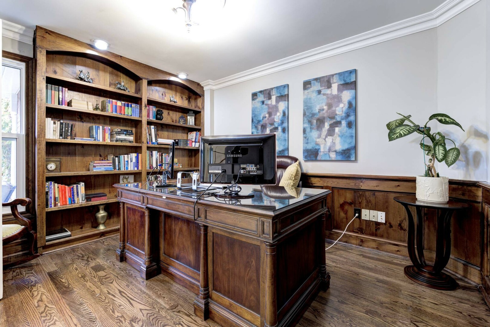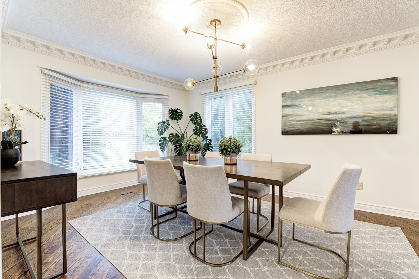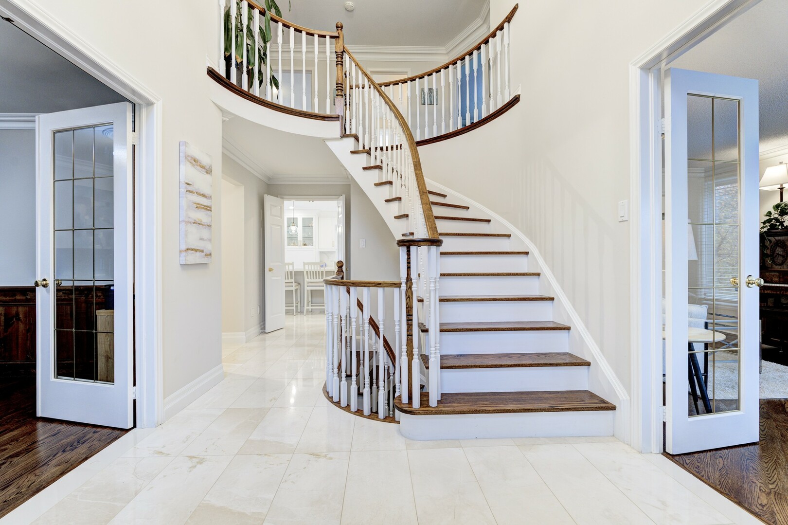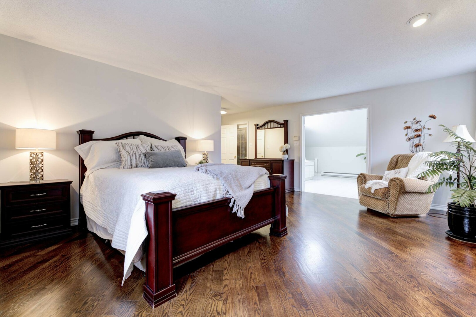 1457 Postmaster Drive is an exquisite CAPE COD style home, a rare find on a sprawling RAVINE LOT nestled in the highly desirable Glen Abbey neighbourhood of Oakville. This beautiful property boasts 4+1 bedrooms, OVER 3000 SQ FEET ABOVE GRADE and features hardwood floors, a spiral staircase and 2-storey ceilings setting the stage for timeless elegance in your home. The large eat-in KITCHEN was tastefully UPDATED in 2020, featuring STAINLESS STEEL appliances and stunning QUARTZ countertops with a DOUBLE FARM SINK, making it the perfect place to prepare meals and entertain guests. A main floor office overlooking the front garden, separate dining room, living room and family offers plenty of space for everyone. Head upstairs, your primary suite sanctuary awaits you with a GAS FIREPLACE for cozy romantic nights and a huge ensuite bath, flooded with natural light from the newer skylights. Enjoy UPDATES GALOUR in this home and as well as peace of mind with a NEW FURNACE AND A/C installed in 2022. Most of the WINDOWS were tastefully replaced in 2017, featuring elegant LIMESTONE SILLS. The SHINGLES were also recently REPLACED, in 2018. The BASEMENT was professionally finished in 2010, offering an additional full bathroom, kitchenette and a space for relaxation and entertainment, the BIG SCREEN TV is even INCLUDED in the sale. Great layout for a billiards table, gym area, or just relaxing aside a cozy gas fireplace.