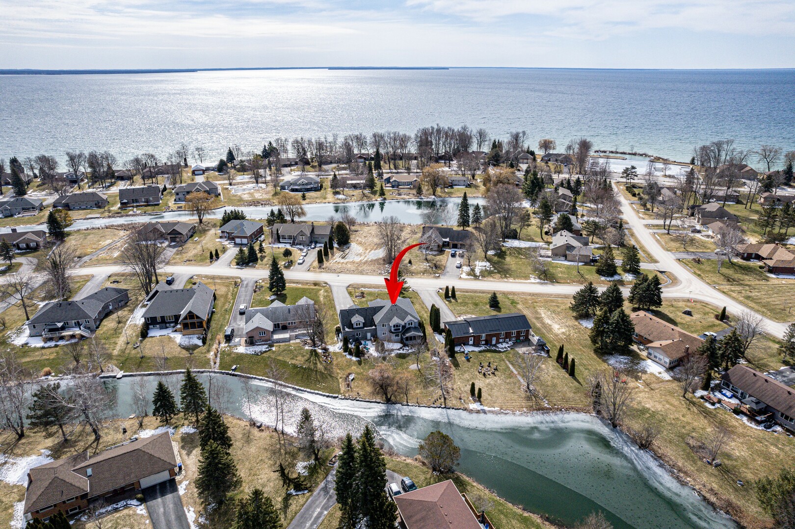Custom built 5 br home finished from top to bottom in prestigious Bayshore Village. Featuring a large eat-in Kit with quarts counter tops, a office off the kit, a screened in porch O/L the tranquil pond. Large dining room for all family gatherings. Prim/Br. has huge 5pc ensuite with relaxing soaker tub. The 2nd floor features 3 bathrooms. The 5th br on the main floor has access to a 3pc bath. Large double heated garage. Inground sprinkler system. Upstairs family room has a warm fireplace and built in wet bar an entertainers delight. Seller Is A Member In Good Standing with Bayshore Village Association. Membership Fee is $975/Yr And Gives You Access To All Amenities Including, 3 Marinas/Golf/Pickleball/Tennis/Salt Water Pool/Club House and all Social activities. Member of the Bell Fiber TV/Internet Service at preferred rate. Home is on bus route