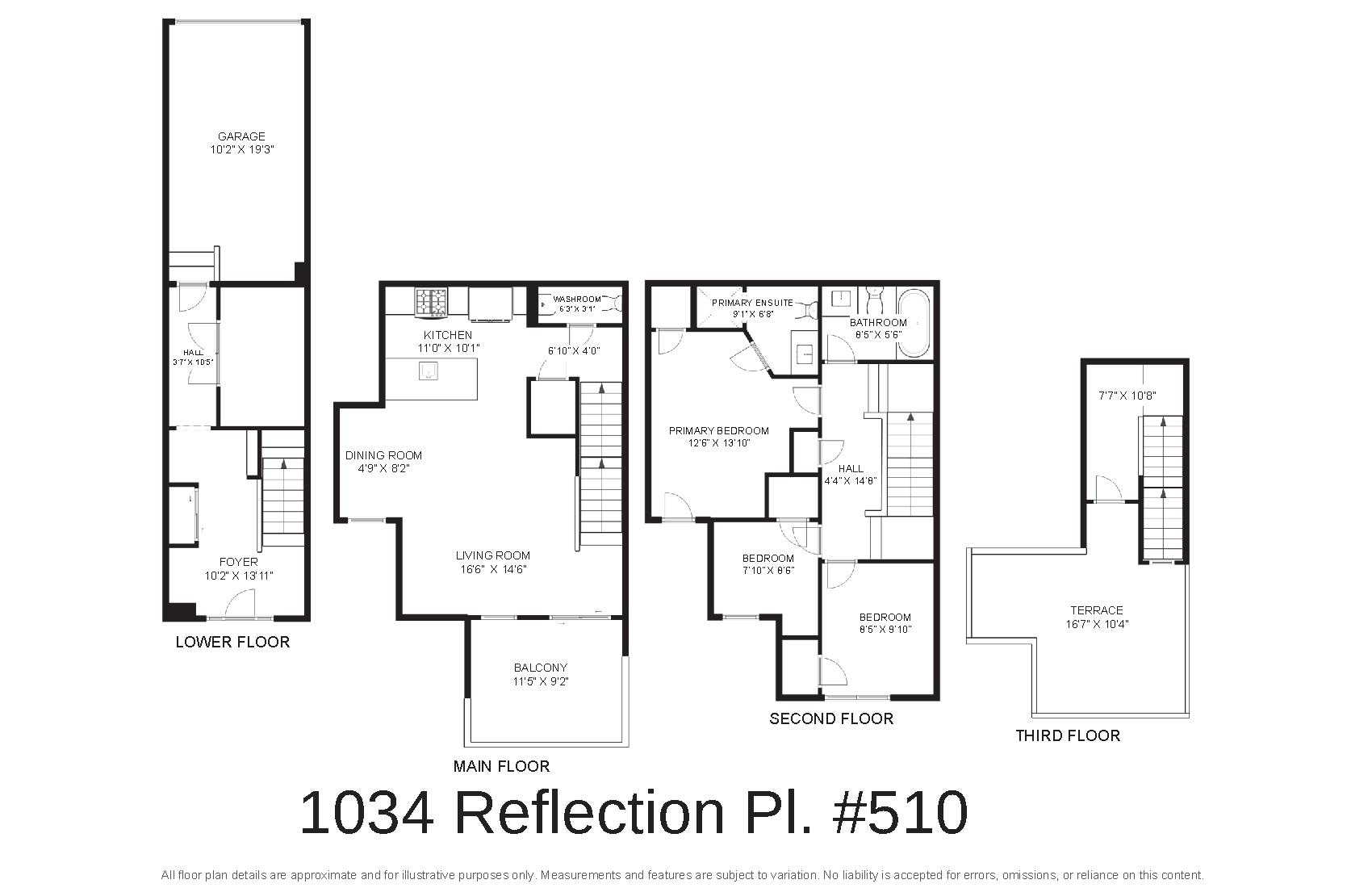 | Primary Bedroom | Third level | 3.61 x 3.54 (meters) |