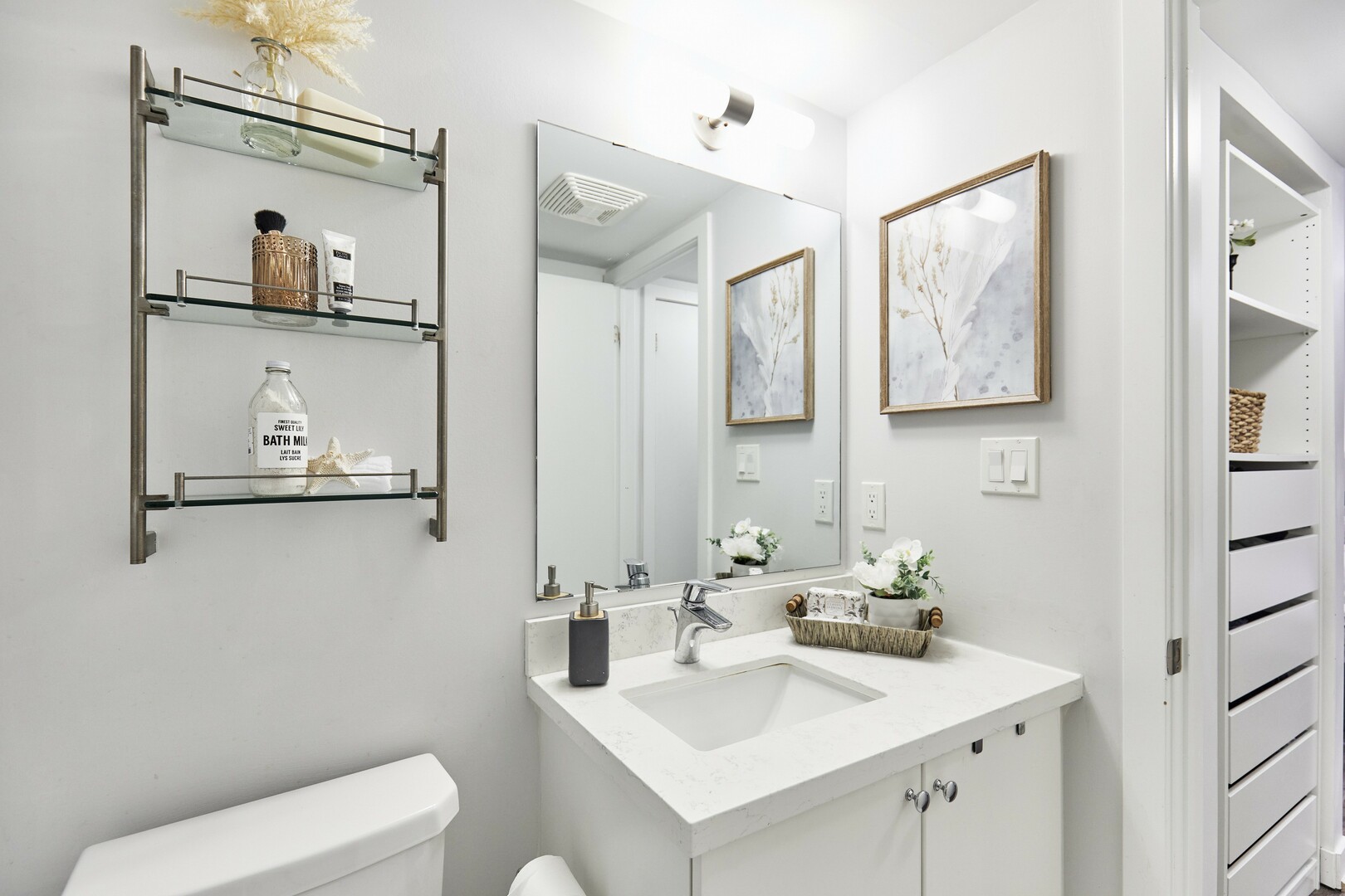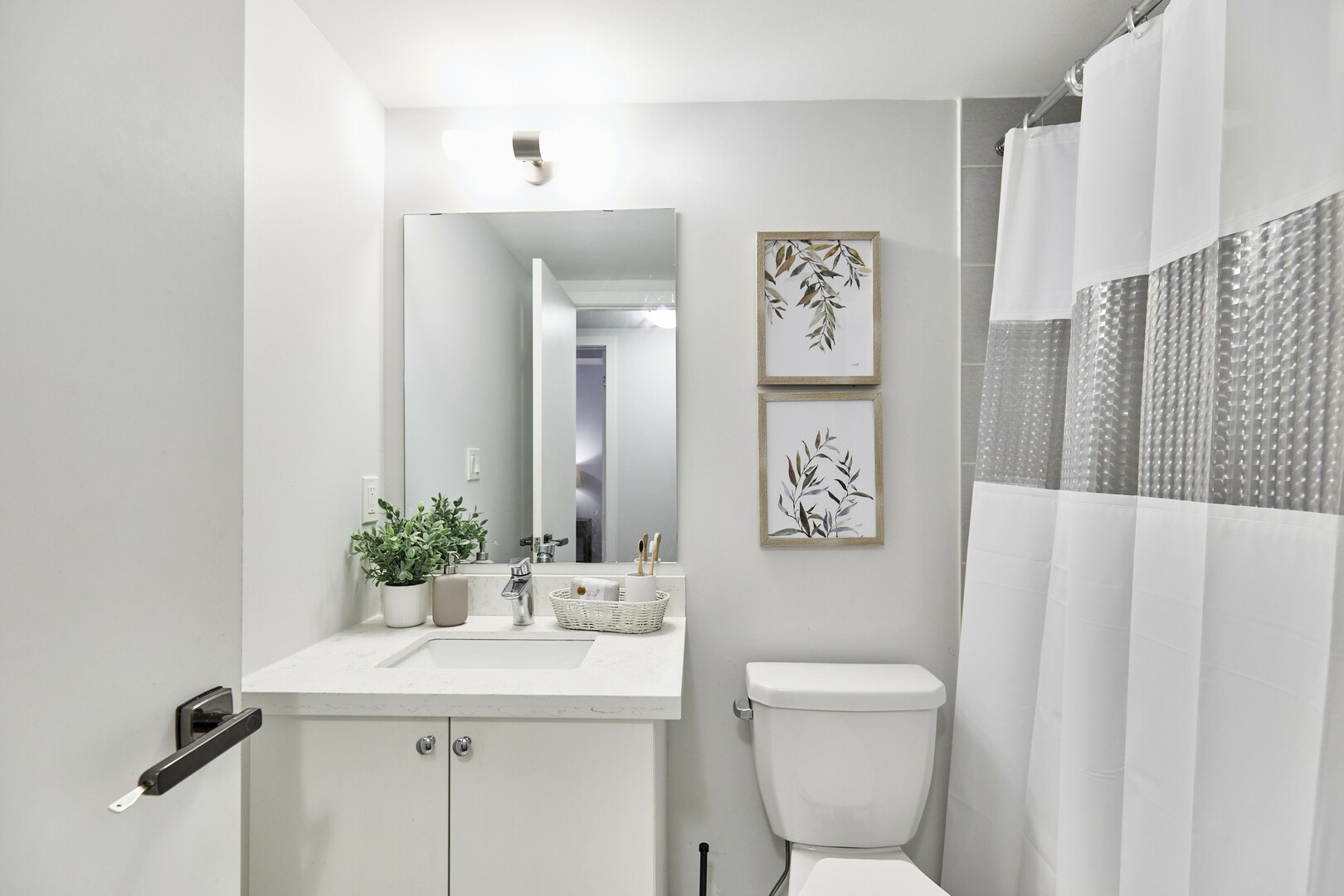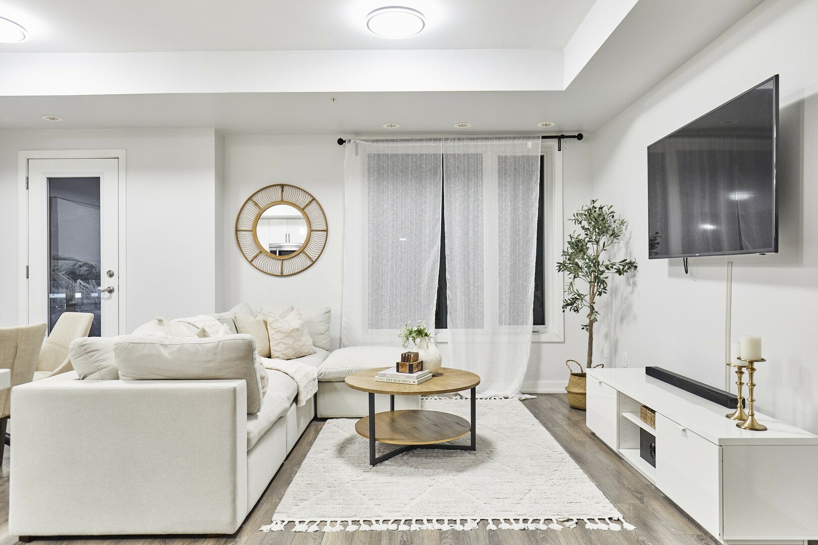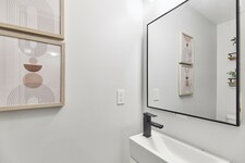 Step inside through the inviting front entrance and ascend to the upper main floor. A welcoming foyer and stylish powder room sets the tone, featuring ceramic tile flooring, a modern vanity, and contemporary lighting. The Foyer’s double closet offers plenty of storage to keep your entryway organized.
