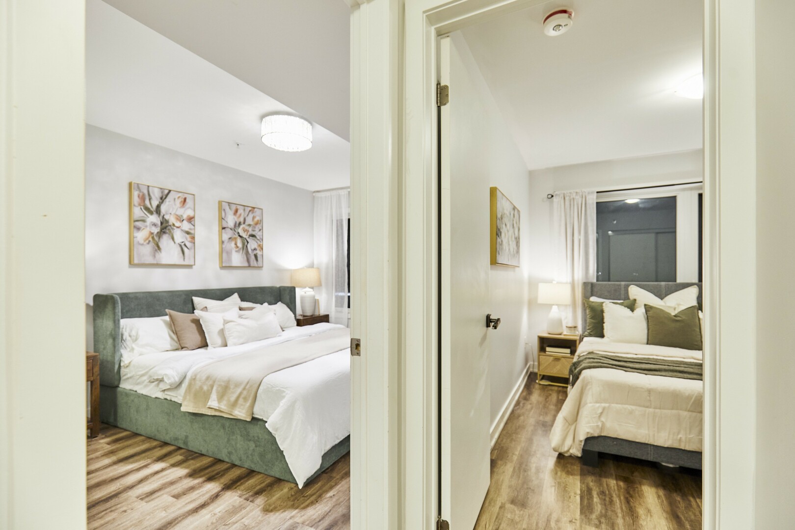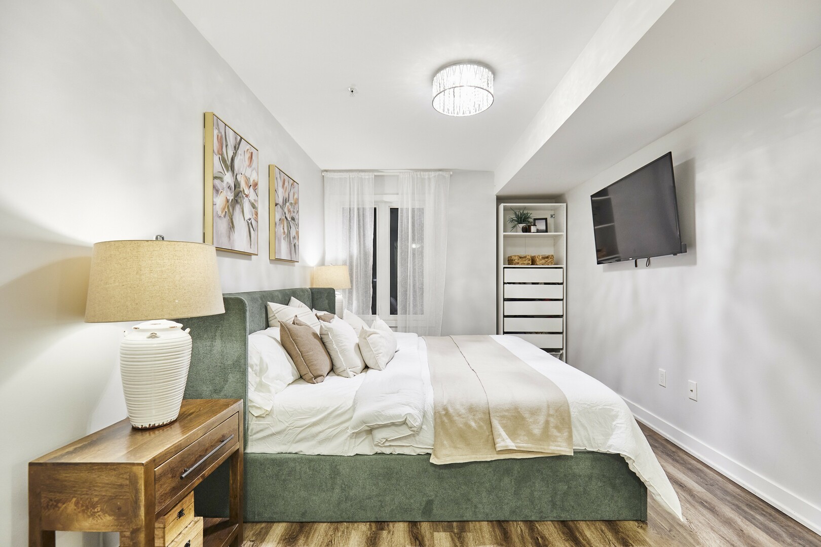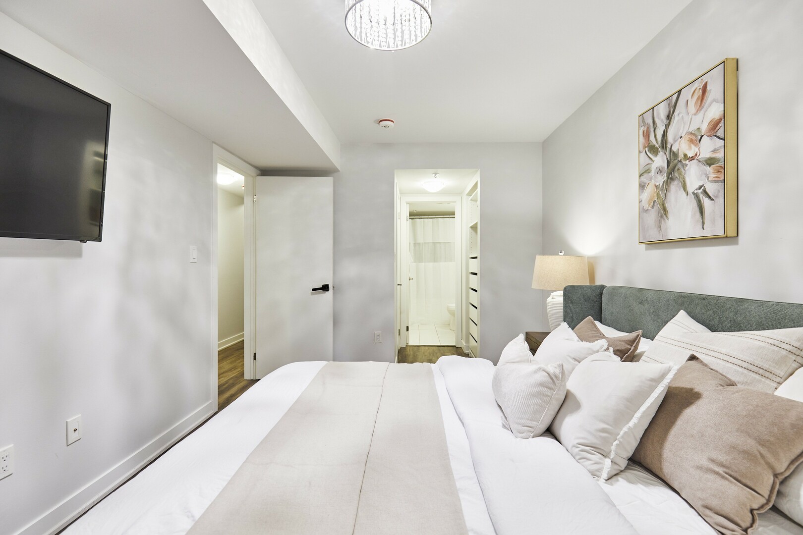 The second bedroom offers flexibility for guests or a home office, complete with a large window and double closet.