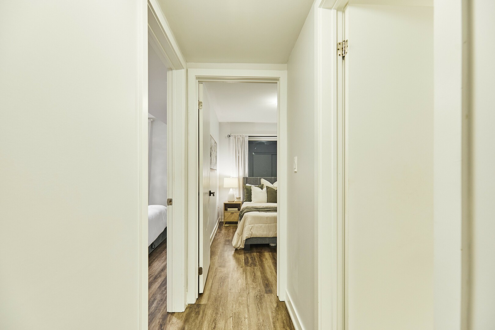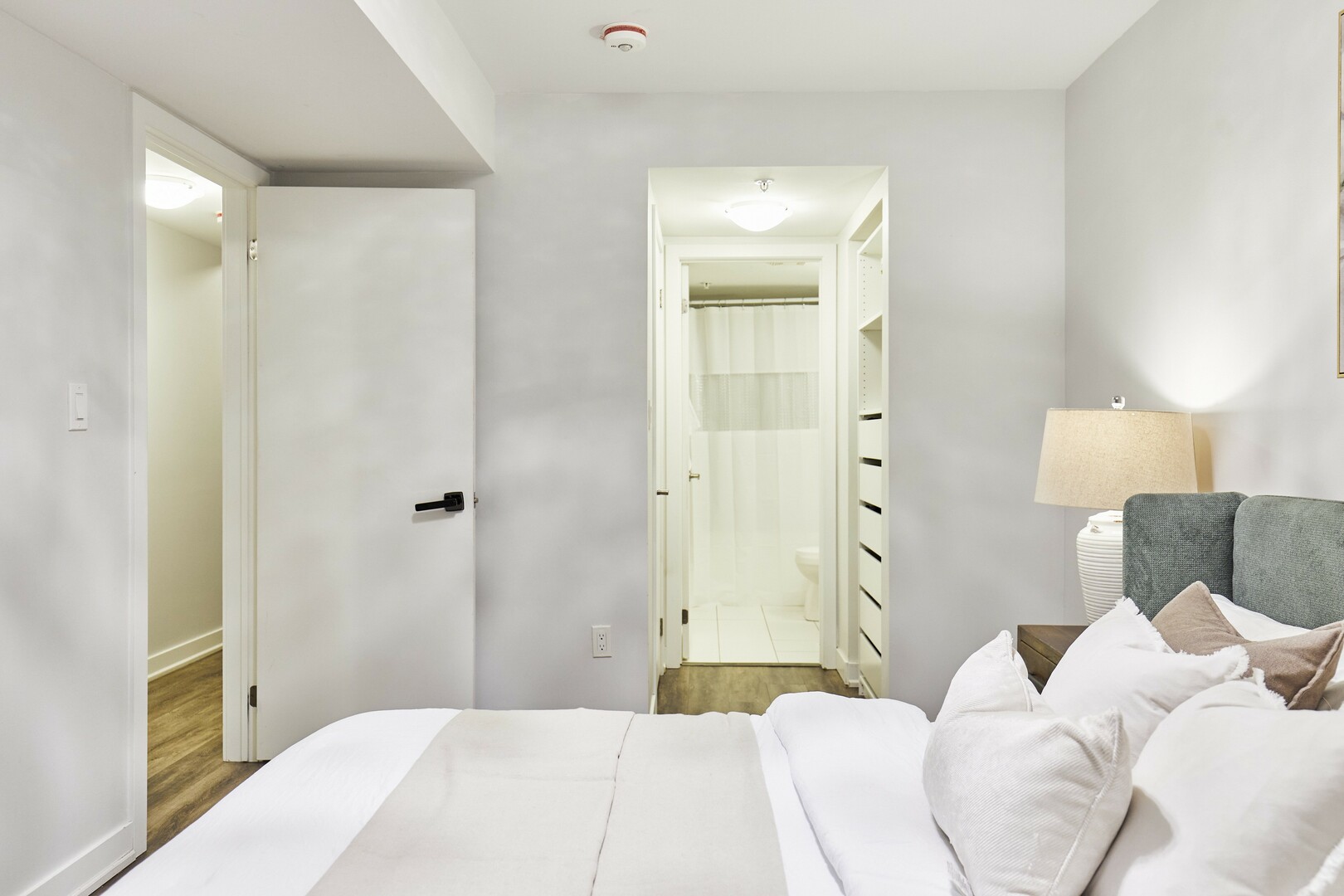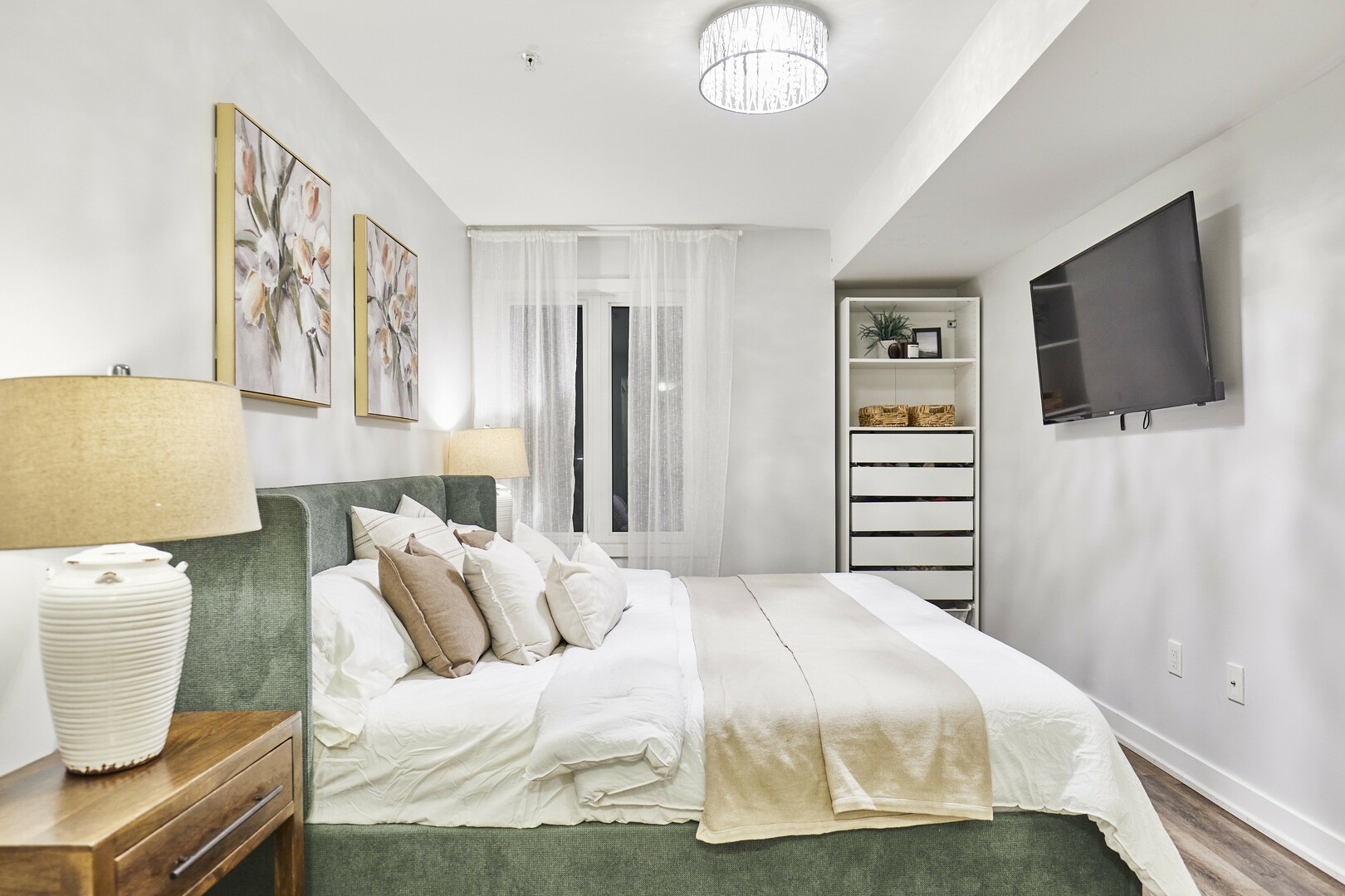 The second bedroom offers flexibility for guests or a home office, complete with a large window and double closet.