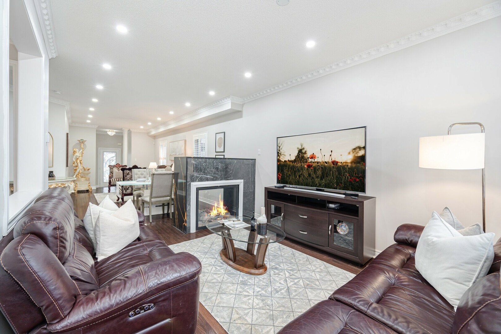 Beautiful 4 Bedroom 3 Bath Home * 2nd Bedroom Can Be Returned to Family Room with 10 Ft. Ceiling * 9 Ft. Ceiling on Main * Hardwood Floors Thru-Out * Crown Moulding * California Shutters * Two Sided Fireplace Between Living and Dining Room * Large Deck in Backyard * No Grass to Cut * Interlock Front and Back * Close to Shopping, Hwy 407, Restaurants and more