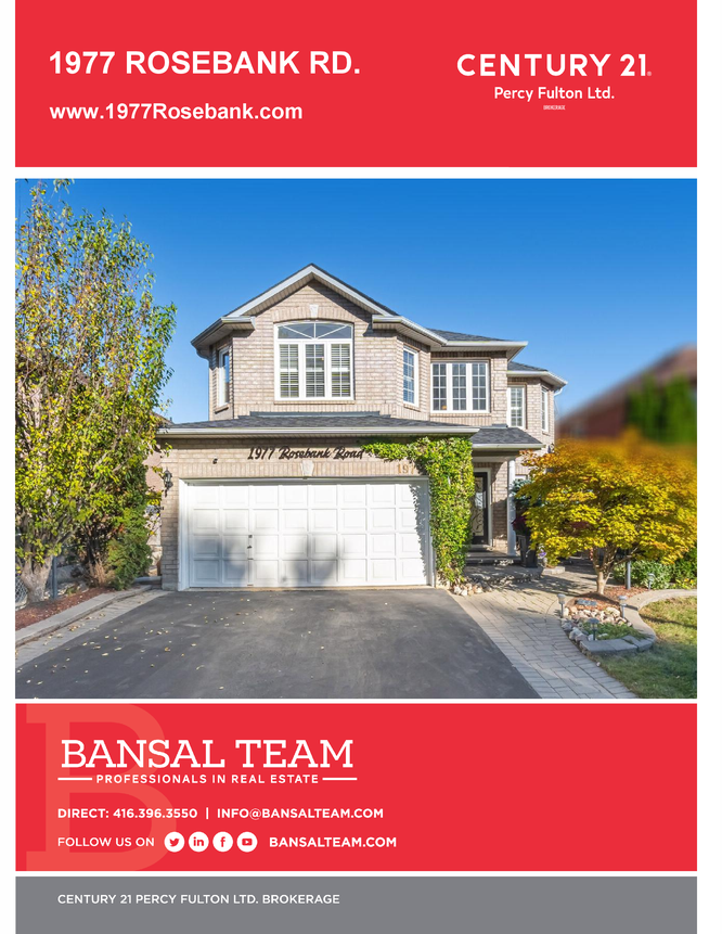 * Stunning Home in Highly Sought After Amberlea Community * Facing Green Space * 2969 Sq Ft * 4 Bedrooms * 3 Updated Bathrooms * Grand Foyer with 18 Ft Ceiling * 9 Ft Ceiling on Main Floor * Hardwood Floors * Brand New Hardwood Floor On Second Floor * Oak Staircase with Wrought Iron Spindles * Crown Moulding * Modern Kitchen with Quartz Counters & Island * 2 Gas Fireplaces * 2 Family Rooms * 2nd Family Room Can Be Converted into 5th Bedroom * Access to Garage * Finished Basement With Rec Room* Close to Top-Rated Rosebank Public School * Minutes to Hwy 401 & 407 * Near Restaurants, Malls, Transit, Parks & Shops * Hot Water Tank ( 3yrs) Roof (10 yrs)