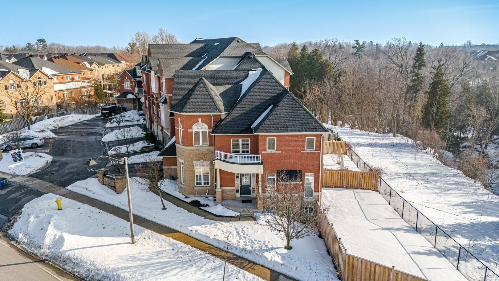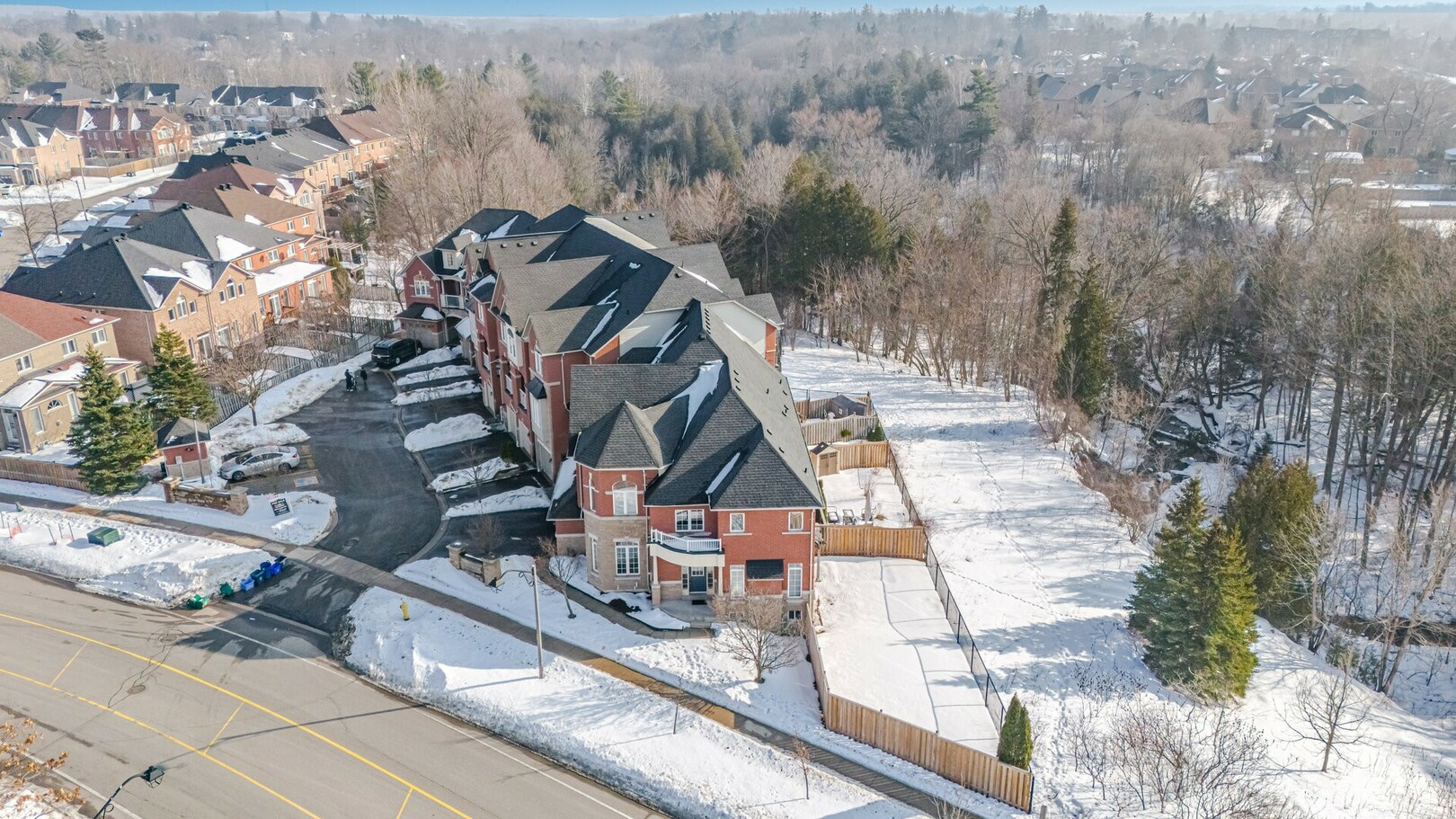 Rare End Unit 3 Bedroom 3 Bath Townhome In Prestigious Highbush Community in Pickering * Almost 2000 Sq. Ft. * Steps to Parks and Trails * Backs Onto Green Space ** 76 Ft. Wide Rear ** 17 Ft. Ceiling in Grand Foyer * 9 Ft Ceilings on Main Floor * Hardwood Flooring On Main & Second Floor * Spacious Open-Concept Layout * Living Room Features Gas Fireplace * Dining Room With Coffered Ceilings * Spacious Kitchen with Granite Countertop * Kitchen Gas Line Available* Breakfast Area With Walk-out to Balcony * Primary Bedroom With Walk-In Closet & 5-Piece Ensuite* Walk Out Basement With Separate Entrance - Easy to Make Basement Apartment * Convenient Garage Access * Family-Friendly Neighbourhood Close To Top-Rated Schools, Shopping & Transit * Ten Minutes to Hwy 401, 407 & GO Station * Exceptional Opportunity In A Highly Sought-After Location * Roof (6yrs) * Furnace (2yrs)