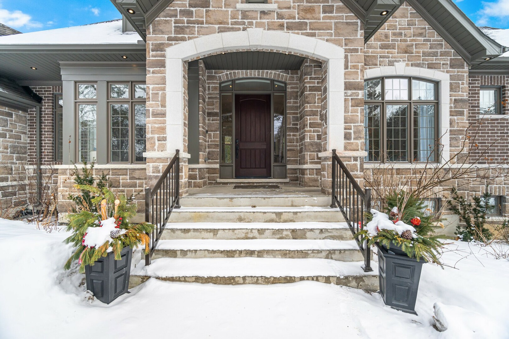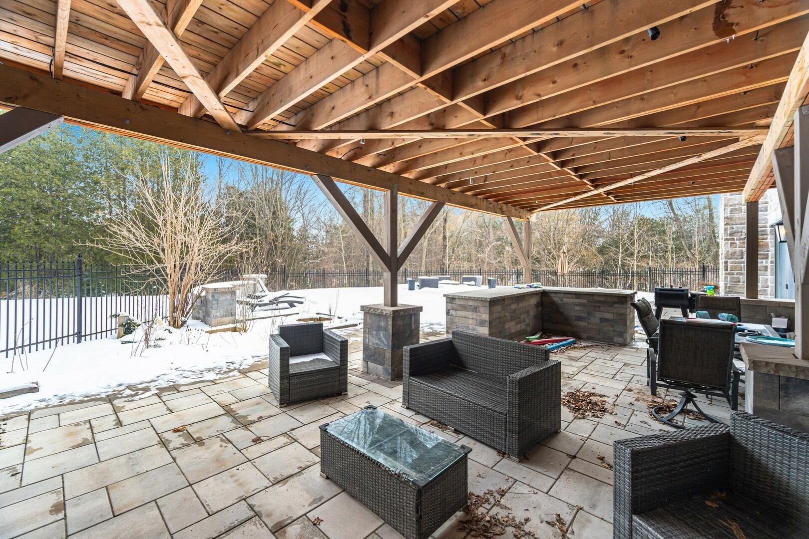 Custom-Built 5 Year Old Luxury Bungalow * Rare 2 Acre Lot * 4+1 Bedrooms * 5 Baths * 3 Car Garage With Total 19 Parking Spaces * Heated 6'8" Deep 15 x 40 Ft. Fenced Fibreglass Pool with Integrated Hot Tub and Splash Pad * 5000 Sq. Ft. of Living Space * 17'6" Cathedral Ceiling in Open Area and 10 Ft. Ceilings in Other Areas on Main Floor * 9 Ft. Coffered Ceiling in Basement * Crown Moulding * Hardwood Floors on Main * Living Room With Fireplace & Built-In Book Shelves * Modern Kitchen With Quartz Counters, Butler's and Built-In Pantry, Induction Stove & Warming Drawer * Custom Cabinets Thru-Out * Spacious Primary Bedroom With Spa-Inspired 7 Pc Ensuite Featuring Steam Shower & His & Hers Closets * Built-In Closets In Bedrooms * Skylight In Laundry Room * Finished Walk-Out Basement Featuring Family Room with Fireplace, Home Theatre With Built-In Wall & Ceiling Speakers, 150" Projector Screen & Projector and Sauna * Oversized Deck and Covered Porch with Built-In Seating * Professionally Landscaped Yard (2023) With Smart Irrigation System (2024) & Landscape Lighting * Leaf Guard On Eavestrough * Playground, Sandbox & Fenced Vegetable Garden * Stream at Side of Property * 22kW Whole Home Backup Generator * Heat Pump (2024) * New Starlink High-Speed Internet * Water Filtration System With Water Softener, UV & Reverse Osmosis * Tankless Hot Water System * 200 Amp Electrical Panel * Minutes To Hwy 407