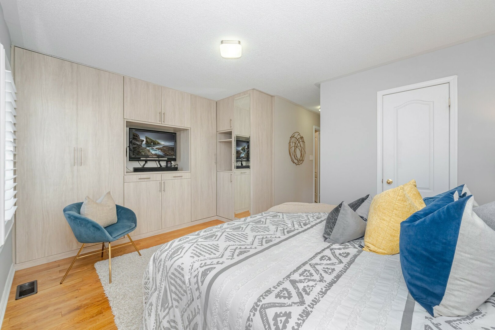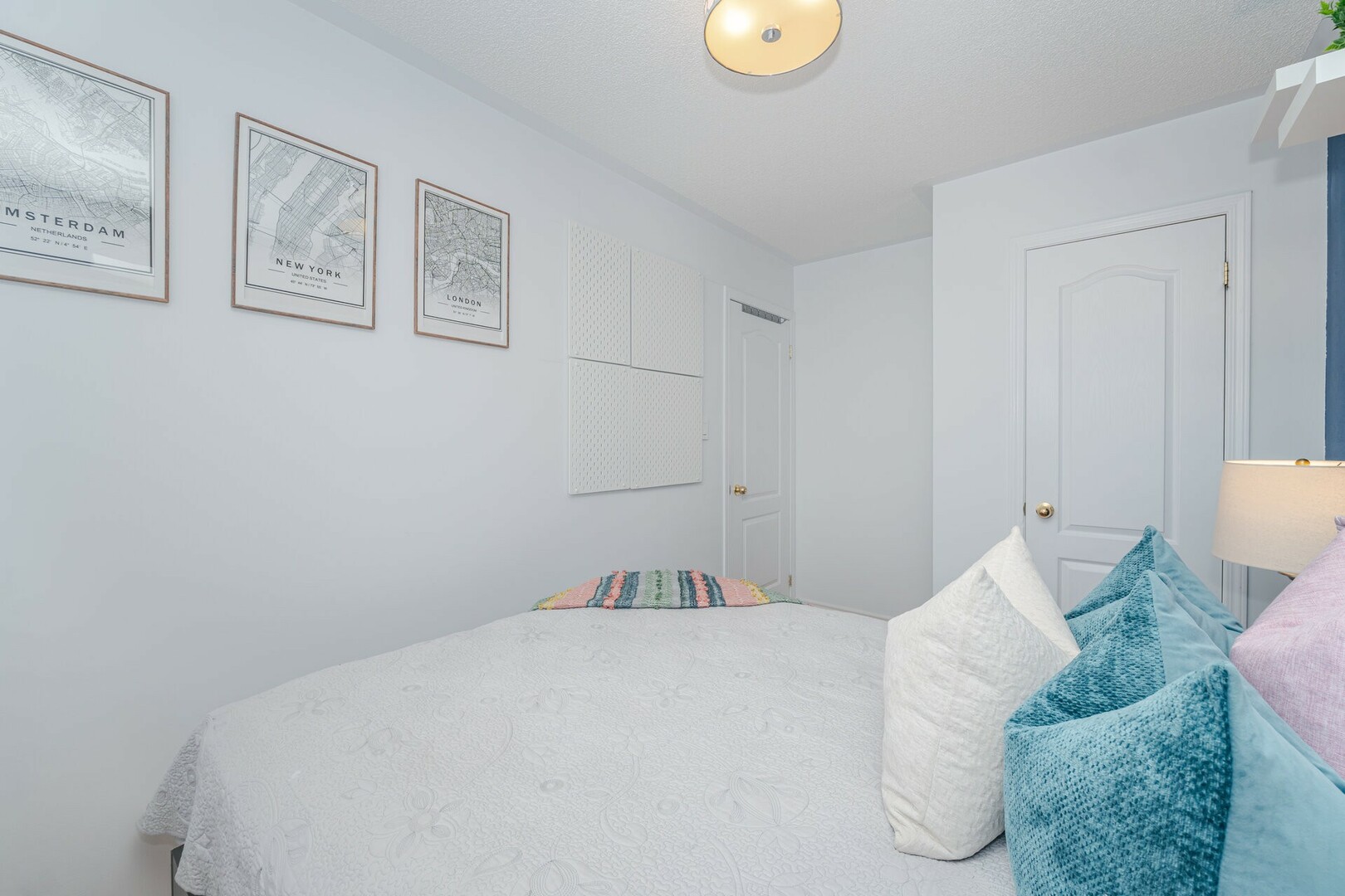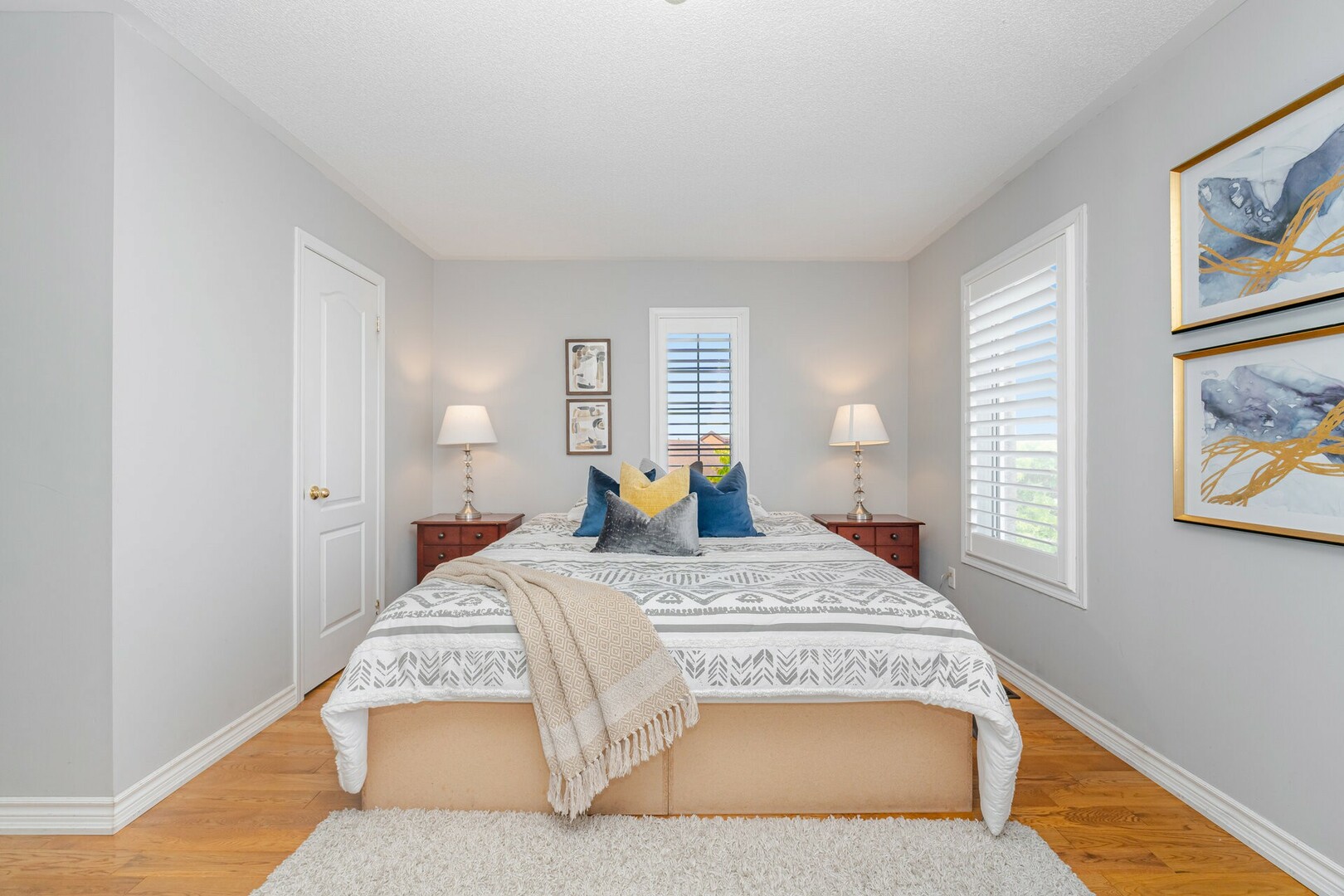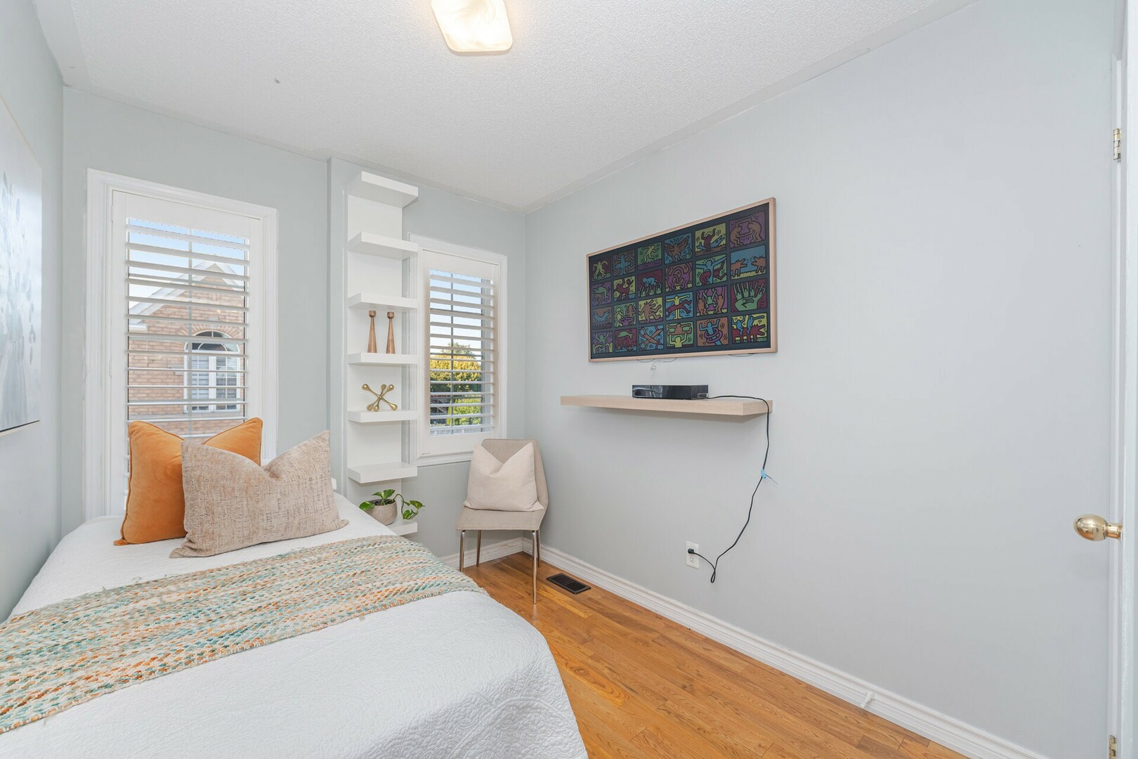 Beautiful 3 Bedroom 3 Bath End Unit Townhome * * Rarely Offered Parking for 5 Cars * * Updated Kitchen with Porcelain Floors, Quartz Counters, and Under cabinet Lighting * Updated Bathrooms with Frameless Showers and Time Controlled Exhaust Fans * 9 Ft. Ceiling on Main Floor * Hardwood Floors * No Carpet * Oak Stairs * California Shutters * Primary Bedroom with Custom Closet and 6 Pc. Ensuite ** Interlock Driveway * Entrance from Garage * New Roof * Furnace ('19) * Close to Shopping, Transit, Hwy 401, Places of Worship