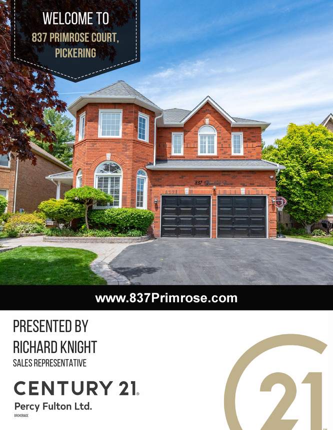 Welcome To 837 Primrose Court In A Desirable Enclave Of Family Homes In Pickering. This Is A Fully Renovated Home Which Boast The Beautiful Kitchen With Granite Countertop Stainless Steel Appliances, Along With Soaring High Ceilings And A Fireplace In The Family Room. Primary Bedroom With A 5 Piece Ensuite And Two Walk-In Closets Along With Another Three Large Bedrooms. Totally Finish Basement With The Primary Bedroom With A Fireplace Along With Two Other Bedrooms And A Family Room. Fully Landscape Outdoor With A Deck And Underground Sprinkler System And No Neighbour Behind (Environment Land) . No Disappointment All Boxes Checked.