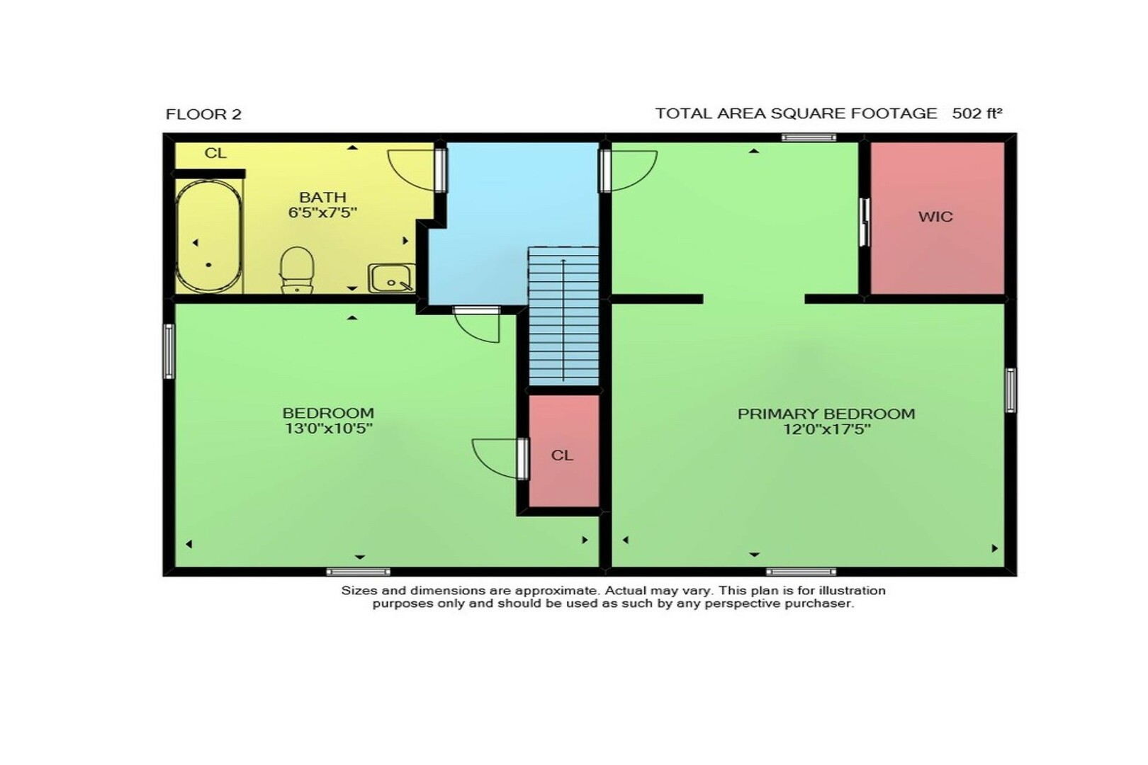 | Bedroom 2 | Upper Level | 13' x 7" |