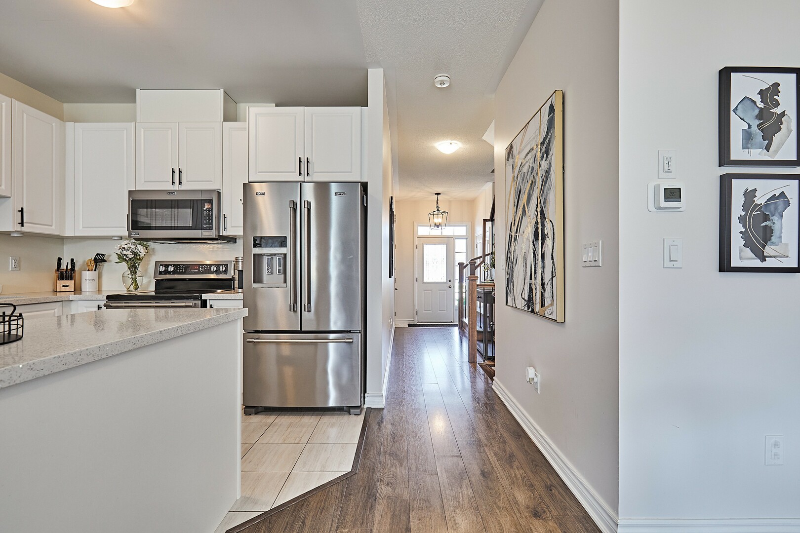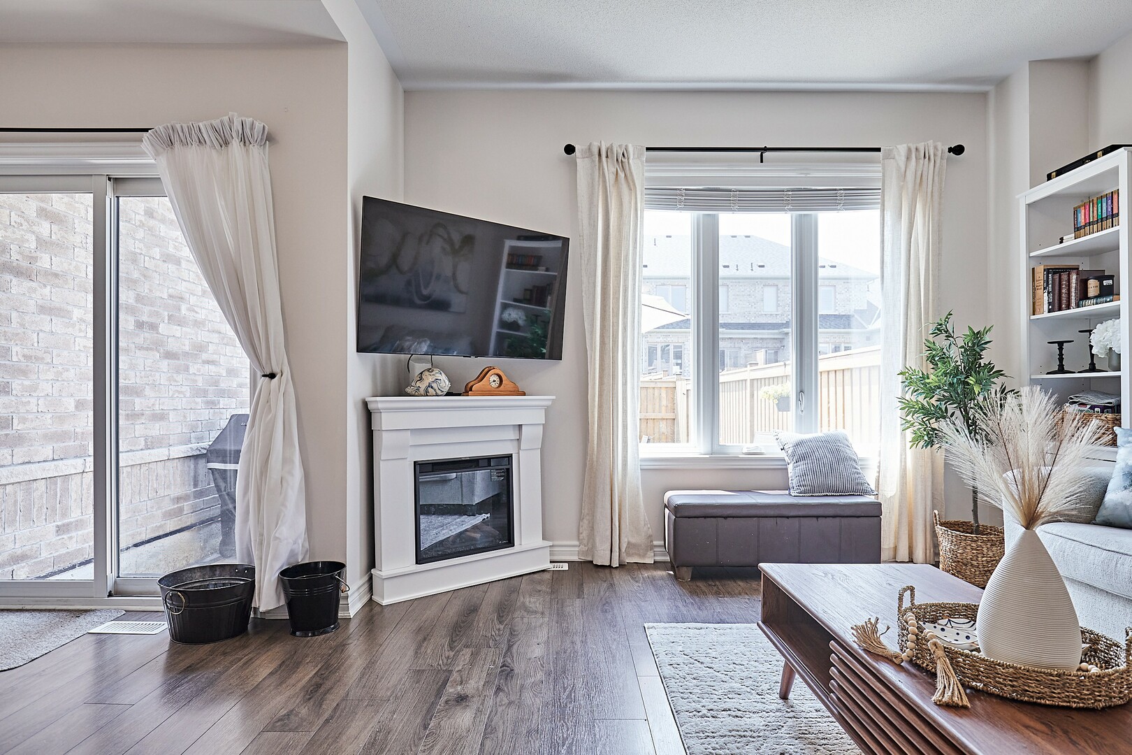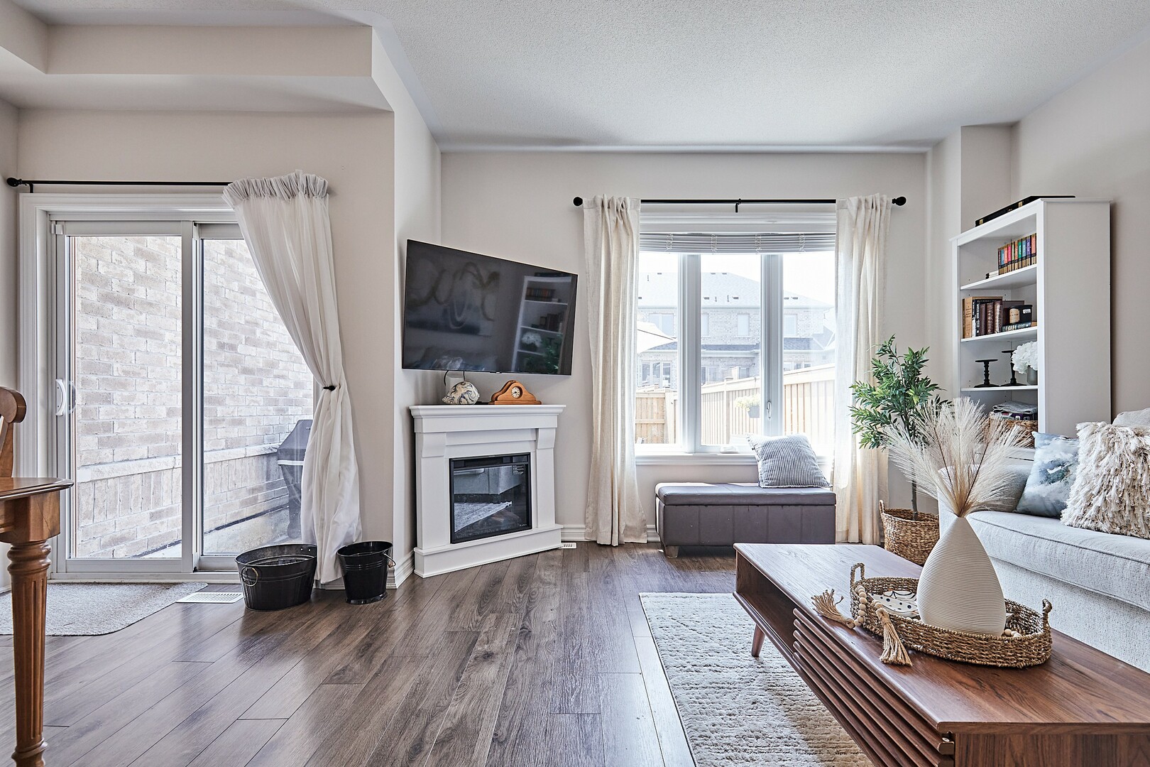 Welcome to this inviting freehold townhome located in the charming Port Perry area. This well-maintained property is situated in a sought-after neighborhood, offering 3 spacious bedrooms and 3 baths, making it an ideal choice for families or those seeking a tranquil living space. Upon entering, you will be captivated by the sleek and modern kitchen equipped with quartz countertops and stainless steel appliances, catering to all your culinary needs. The expansive living area leads to a fully fenced yard, providing a perfect setting for outdoor gatherings and relaxation. Practicality meets luxury with convenient features such as direct access to the garage, rough-in central vacuum, and a primary bedroom showcasing a lavish 3 pc ensuite with a frameless shower and a sizable walk-in closet. The additional bedrooms are generously sized and share a full 4 pc bath, ensuring comfort and space for all residents. Outside, the brand new patio and front walkway demonstrates pride in ownership. The fully fenced yard offers a serene retreat with meticulously designed greenery and a charming patio area, ideal for entertaining or unwinding amidst nature's beauty. This meticulously cared for townhome presents a rare opportunity to own a blend of comfort, elegance, and a peaceful outdoor sanctuary. Don't hesitate to schedule a viewing and seize the chance to make this exceptional property your own before it's too late!