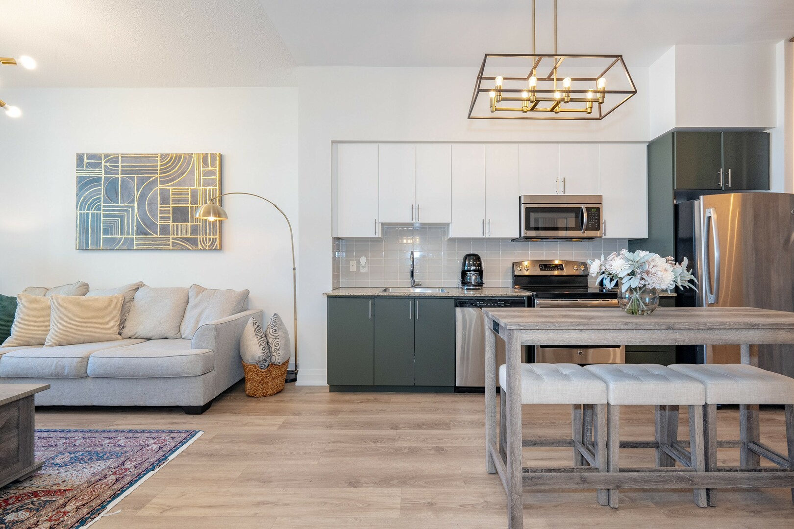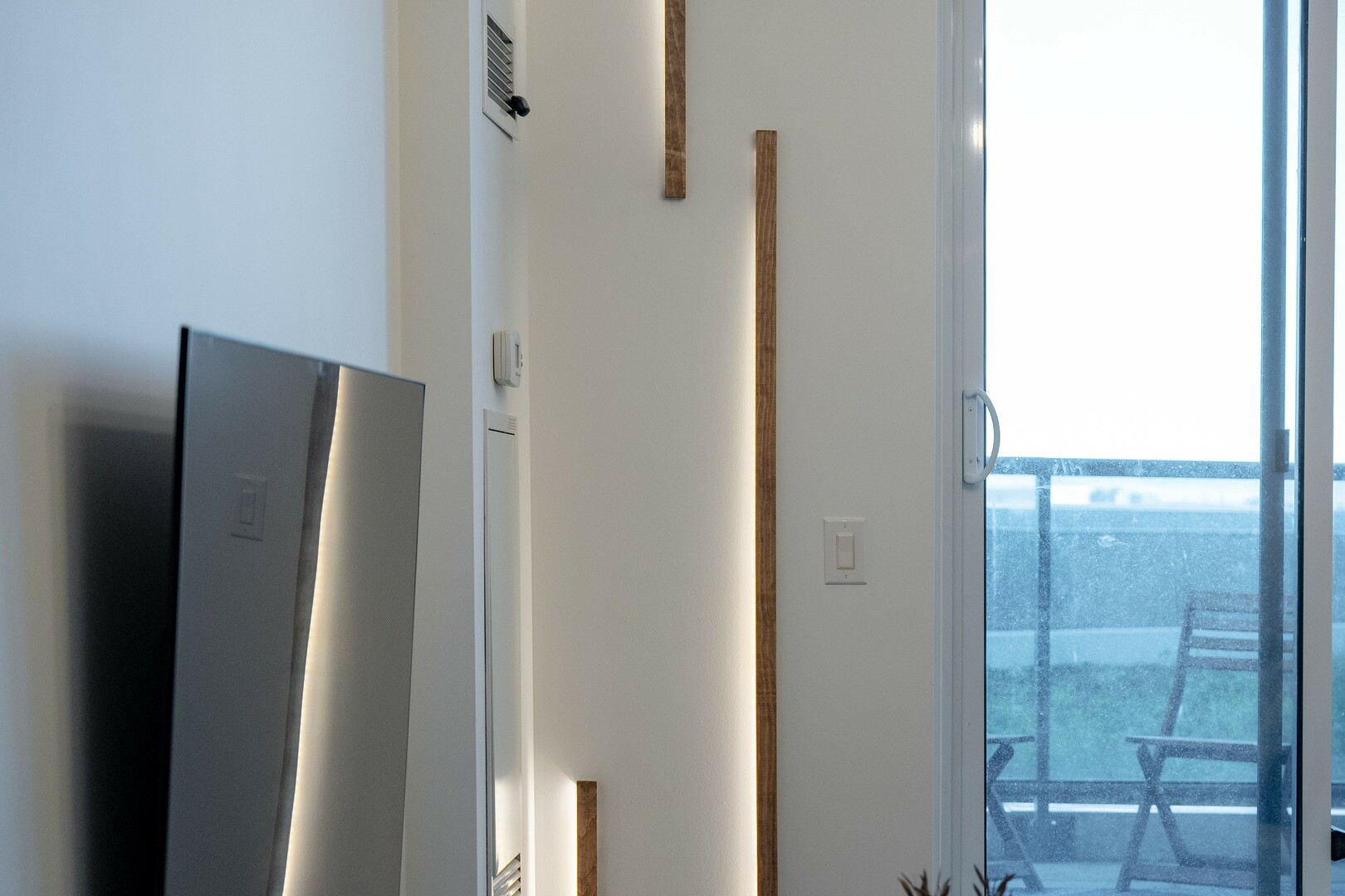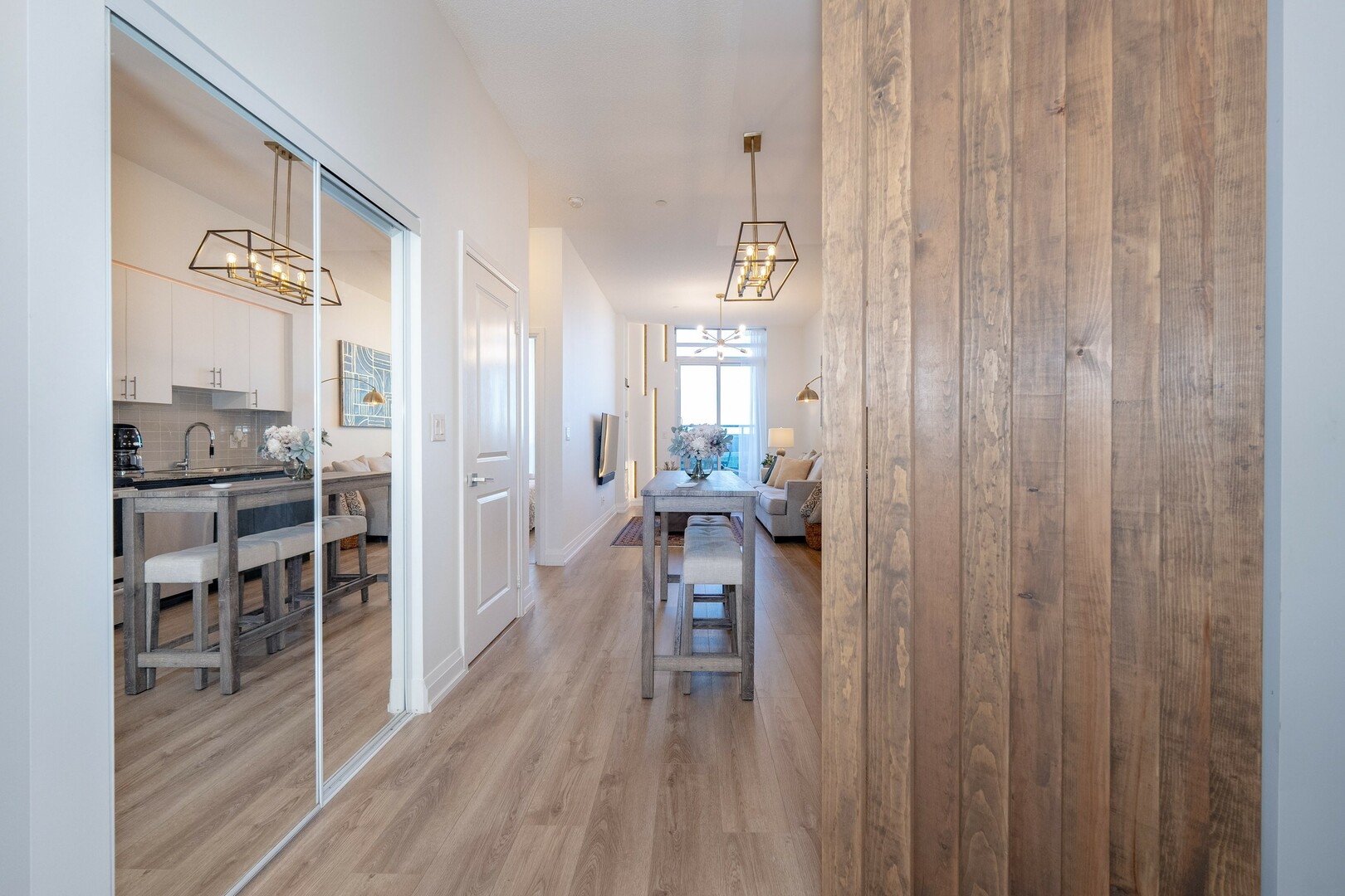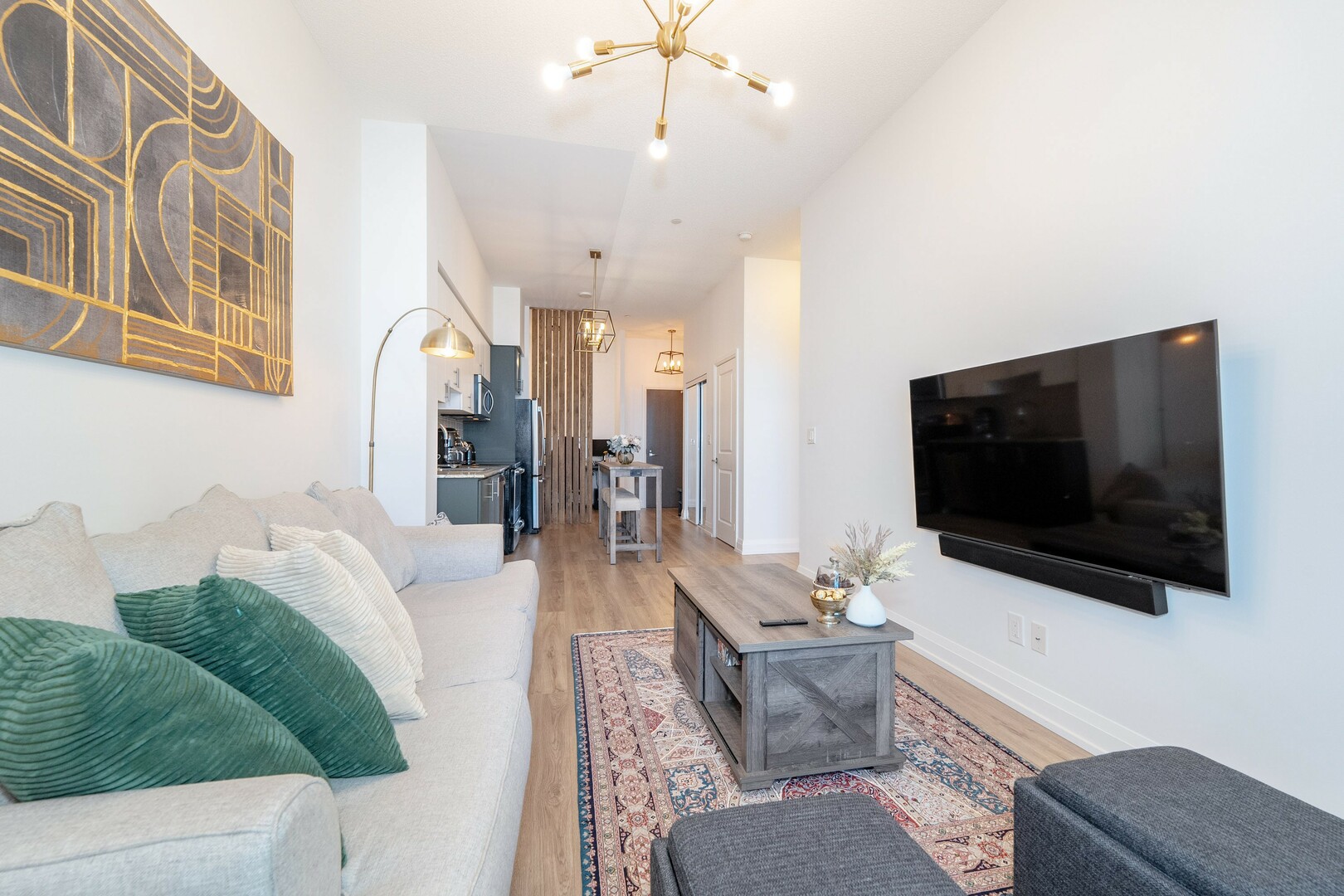 Inside, you’ll find a modern design that includes an eye-catching LED feature wall and stylish wood panel partition walls, adding both character and function. The open-concept living and dining area gets plenty of natural light and connects easily to the terrace.