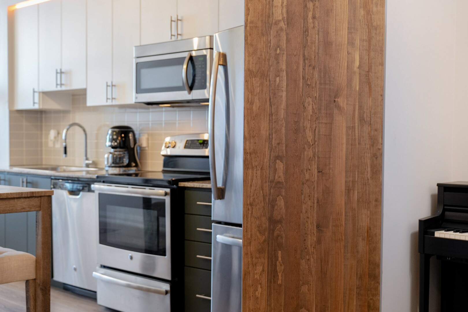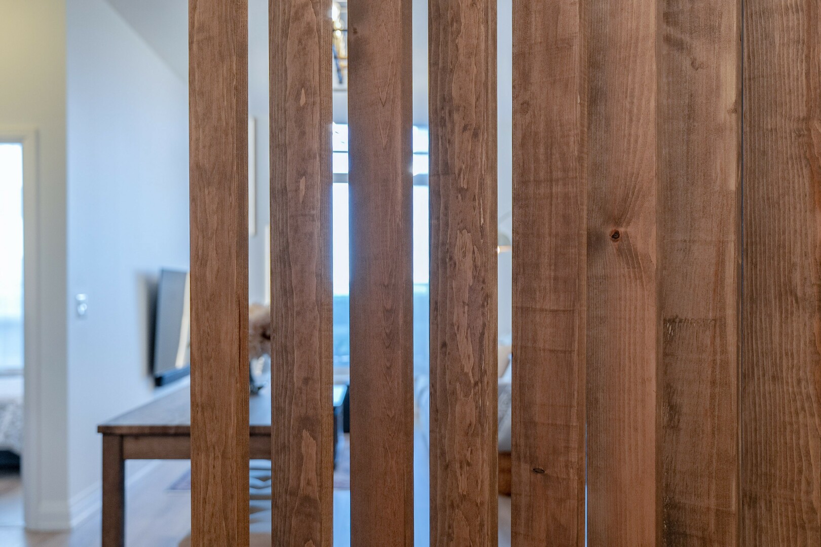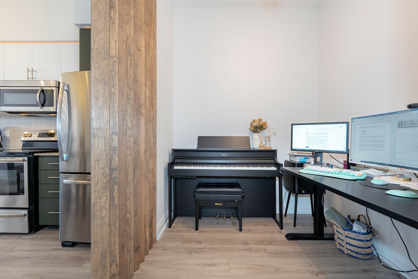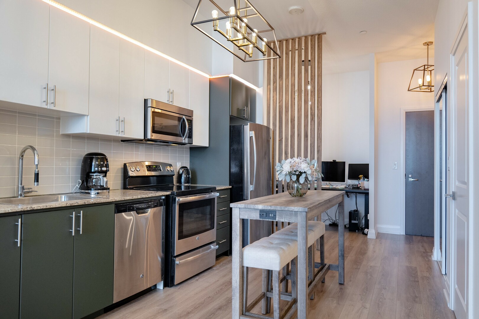 Inside, you’ll find a modern design that includes an eye-catching LED feature wall and stylish wood panel partition walls, adding both character and function. The open-concept living and dining area gets plenty of natural light and connects easily to the terrace.