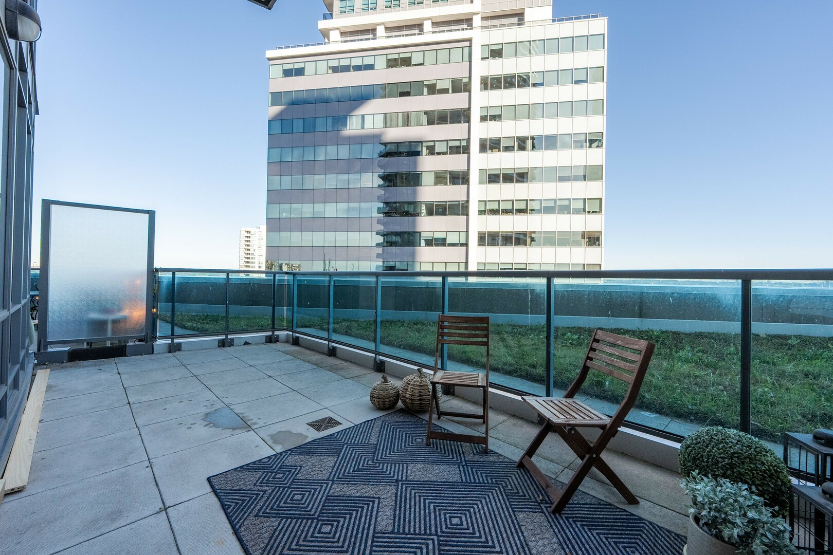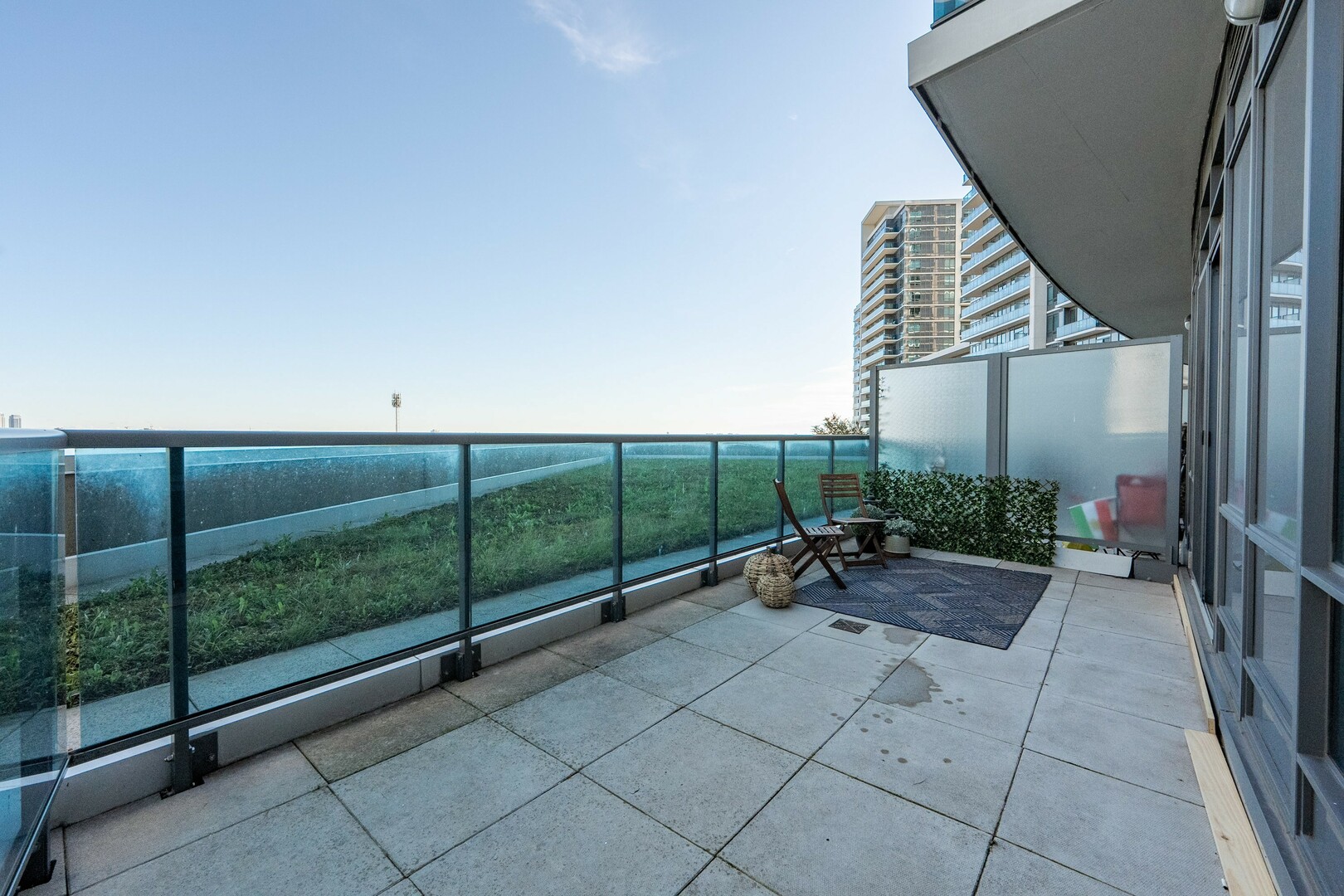 Luxurious Condo with Large Terrace and Modern Design. Enjoy this beautiful 1+1 condo at World on Yonge by Liberty Development, featuring 10' ceiling, stainless steel appliances, granite countertops, updated lighting, and a large terrace with a green roof - perfect for relaxing or hosting guests. The unit's modern design includes an LED feature wall and stylish partition walls. Amenities include a fitness center, indoor pool, sauna, party room, 24-hour concierge, and direct access to shops and services. Conveniently located near everything you need with easy access to public transit. Includes one parking space and a locker.