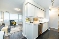 Sun-filled 2-bed, 2-bath condo with lots of natural light for a bright, airy feel. The open concept living room area flows seamlessly into a warm, inviting kitchen with ample storage. The spacious primary suite boasts a private ensuite and generous closet space. A well appointed second bedroom is perfect for guests, a home office, or both. In-suite laundry adds everyday convenience to this stylish urban retreat. Includes one parking space and a locker for extra storage. Enjoy top-tier building amenities, including a gym, pool, and 24-hour concierge. Steps to transit, shopping, and dining with top rated schools and major highways moments away. Experience the perfect blend of comfort, convenience, and luxury!