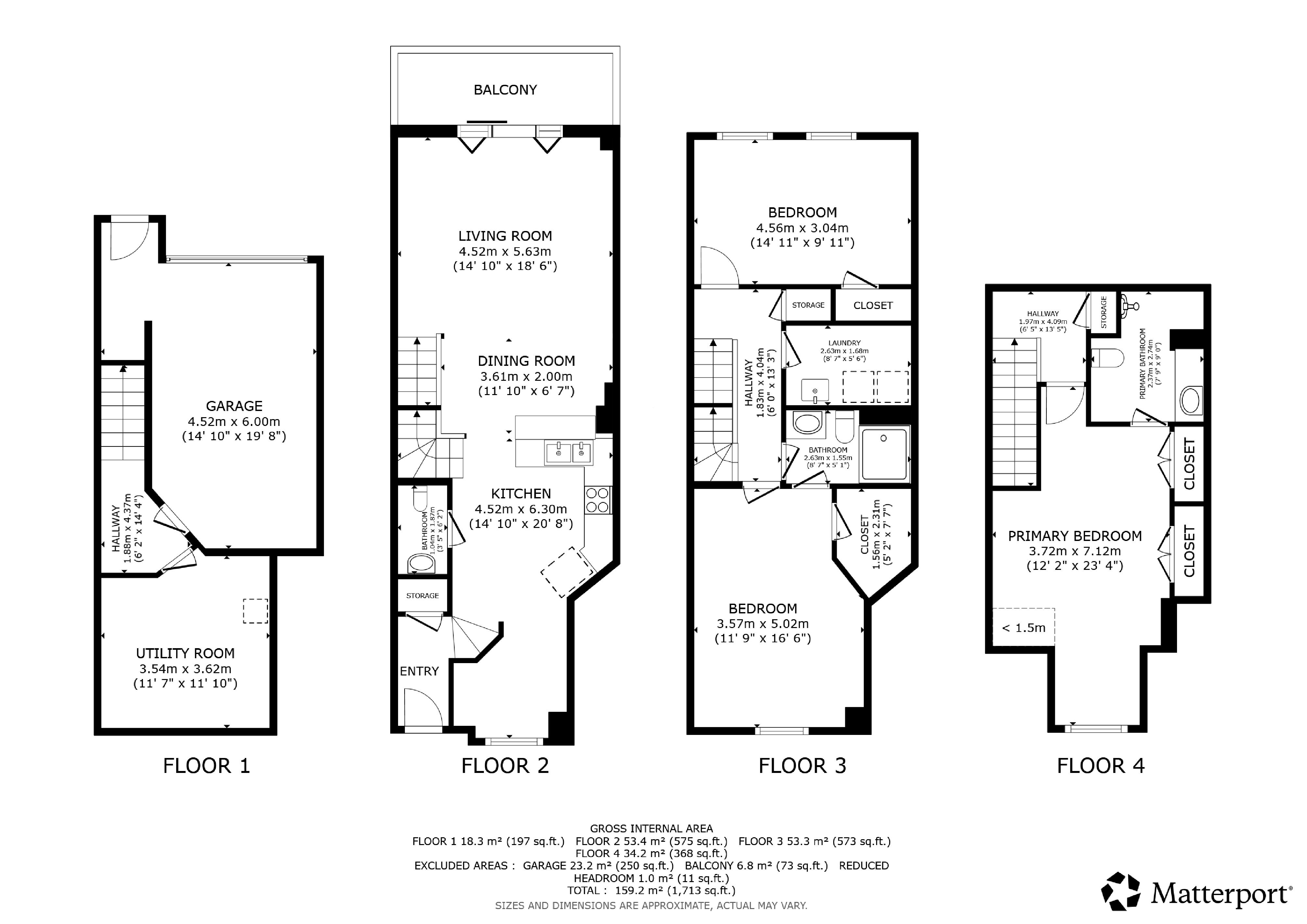 | Primary Bedroom | Third level | 6.4 x 3.81 (meters) |