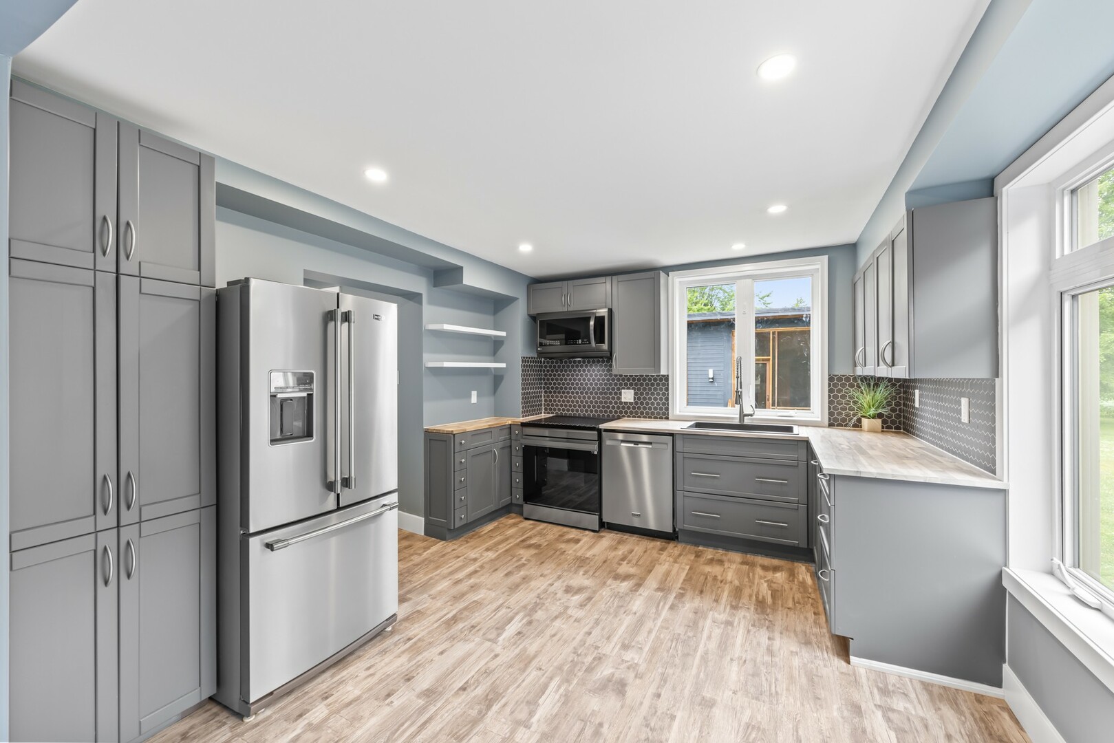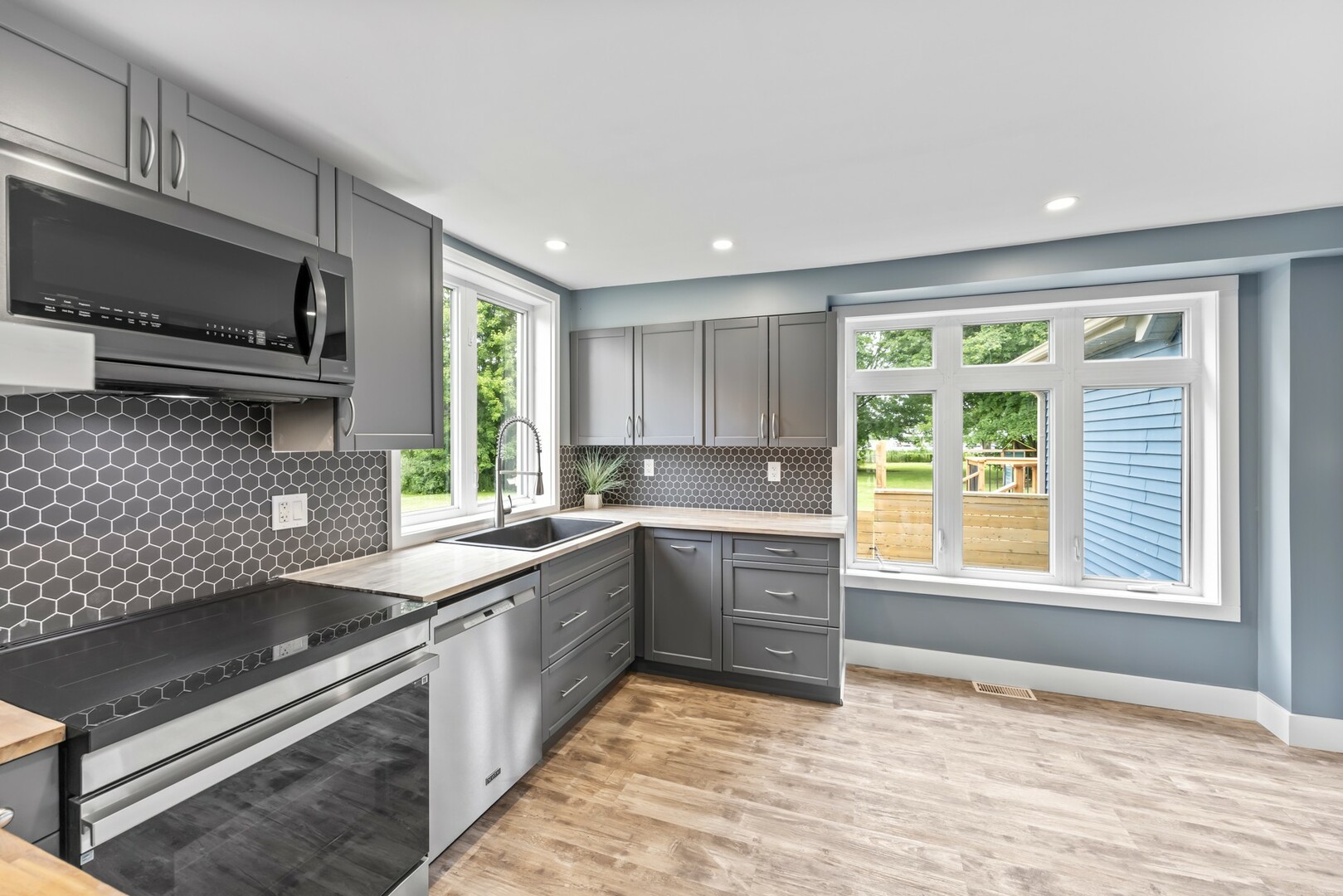 Welcome to your dream waterfront retreat at 11 Campbell St, Portland, Ontario, nestled on the serene shores of Big Rideau Lake, Eastern Ontario's largest and most coveted lake, in the charming village of Portland. This fully renovated, year-round home seamlessly blends modern comfort with breathtaking natural beauty, offering direct access to over 32 km of navigable water, perfect for boating, fishing, or sunset swims from your private dock, just steps from a free public boat ramp and Portland's public beach. The move-in-ready home features three spacious bedrooms, ideal for family, guests, or a home office, and 1.5 beautifully updated bathrooms, with a bright, open-concept layout boasting a fully equipped kitchen & generous living areas perfect for everyday living or entertaining. Top-to-bottom renovations combine contemporary finishes with cozy charm, complemented by a large new deck with stunning lakefront views, ideal for morning coffee or evening bonfires, & an expansive backyard for endless lakefront adventures. Modern amenities like high-speed internet, air conditioning, efficient heating, a garden shed, RV hookup, and a backup generator plug ensure year-round comfort. A/C & furnace 2021 by Climate Works, Asphalt & metal roof 2024 by Macdonald renovation Specialists, Vinyl Siding 2022, Doors & Most Windows 2021, Select window glass replaced 2024 by Burchells Glass, Life Proof floors 2021. Designed for all-season enjoyment, from summer barbecues to cozy winter nights by the fire or sledding, this home invites exploration of the Rideau Lakes regions world-class hiking, biking, & fishing, amidst vibrant autumn foliage or springtime serenity. Located in the heart of Portland, steps from a new community library, restaurants, grocery store, and LCBO, this walkable village offers small-town charm, with Kingston and Ottawa a short drive away for urban access. More than a home, this turnkey gem is a lifestyle, where shimmering lake views & lasting memories awaits.