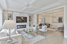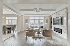 Spend quality time in the beautiful family room, complete with a coffered ceiling that adds character and dimension. The focal point of this space is the stunning marble feature wall, equipped with built-in bookcases and a sleek electric fireplace.