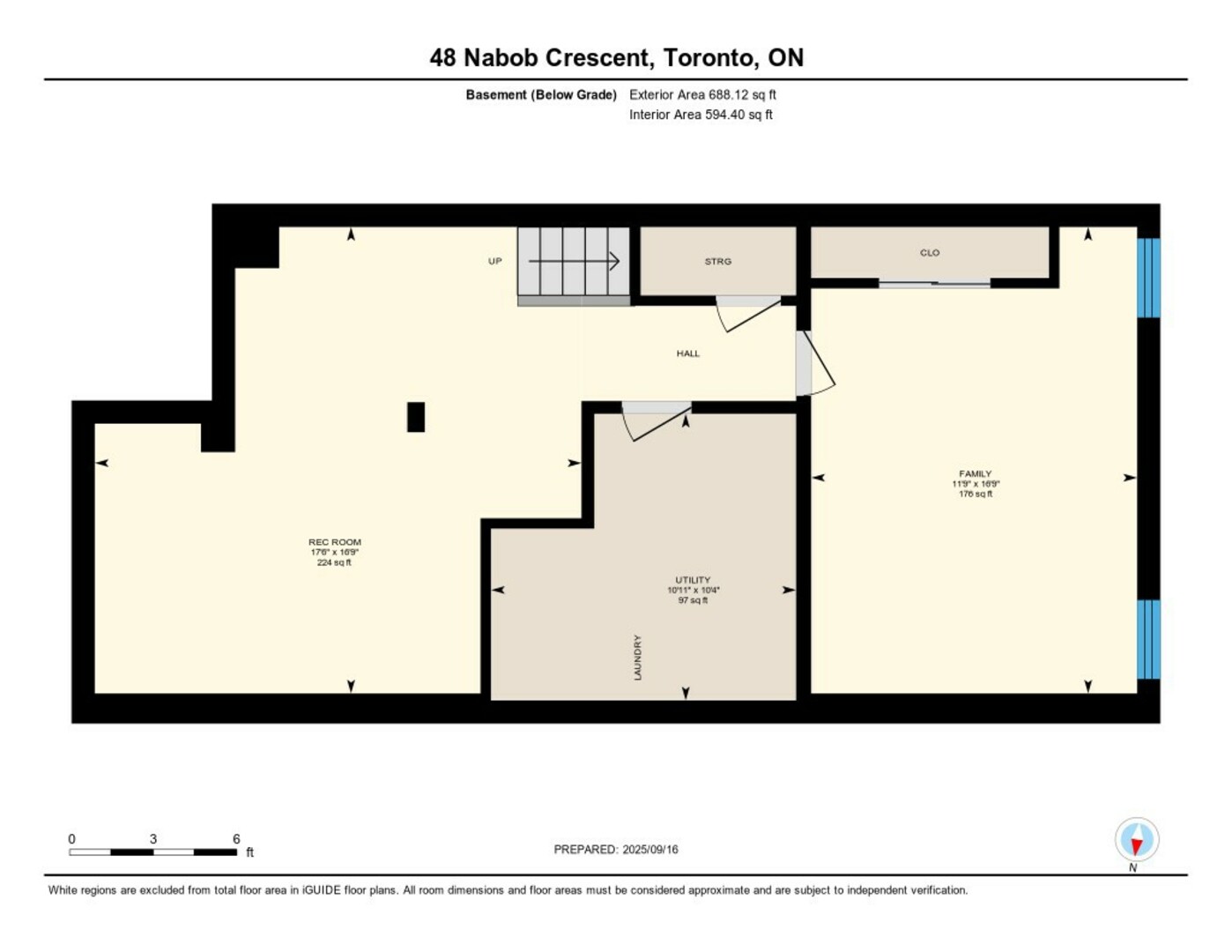 Welcome to 48 Nabob Crescent - a bright and spacious 3-bedroom, 2-bathroom semi-detached home that feels more like a detached thanks to its prime corner lot with an impressive 43-foot frontage. Lovingly maintained by the original owners, this home offers comfortable living spaces, generously sized bedrooms, and an abundance of natural light throughout. Recent upgrades include: Renovated kitchen with pantry and eat in area, renovated 2nd-floor bathroom with walk-in shower (2024), 100-amp electrical panel (2022), driveway (2022), roof & eavestroughs (2018), A/C (2008), furnace (2017). The finished basement adds versatility, complete with a rough-in for an additional bathroom. Perfectly situated in a warm, family-friendly neighbourhood, the home is close to University of Toronto, IB School Saint John Paul II, parks, shopping, transit. Everyday conveniences such as No Frills, Walmart, Home Depot, Staples, and the Pan Am Centre are just minutes away.