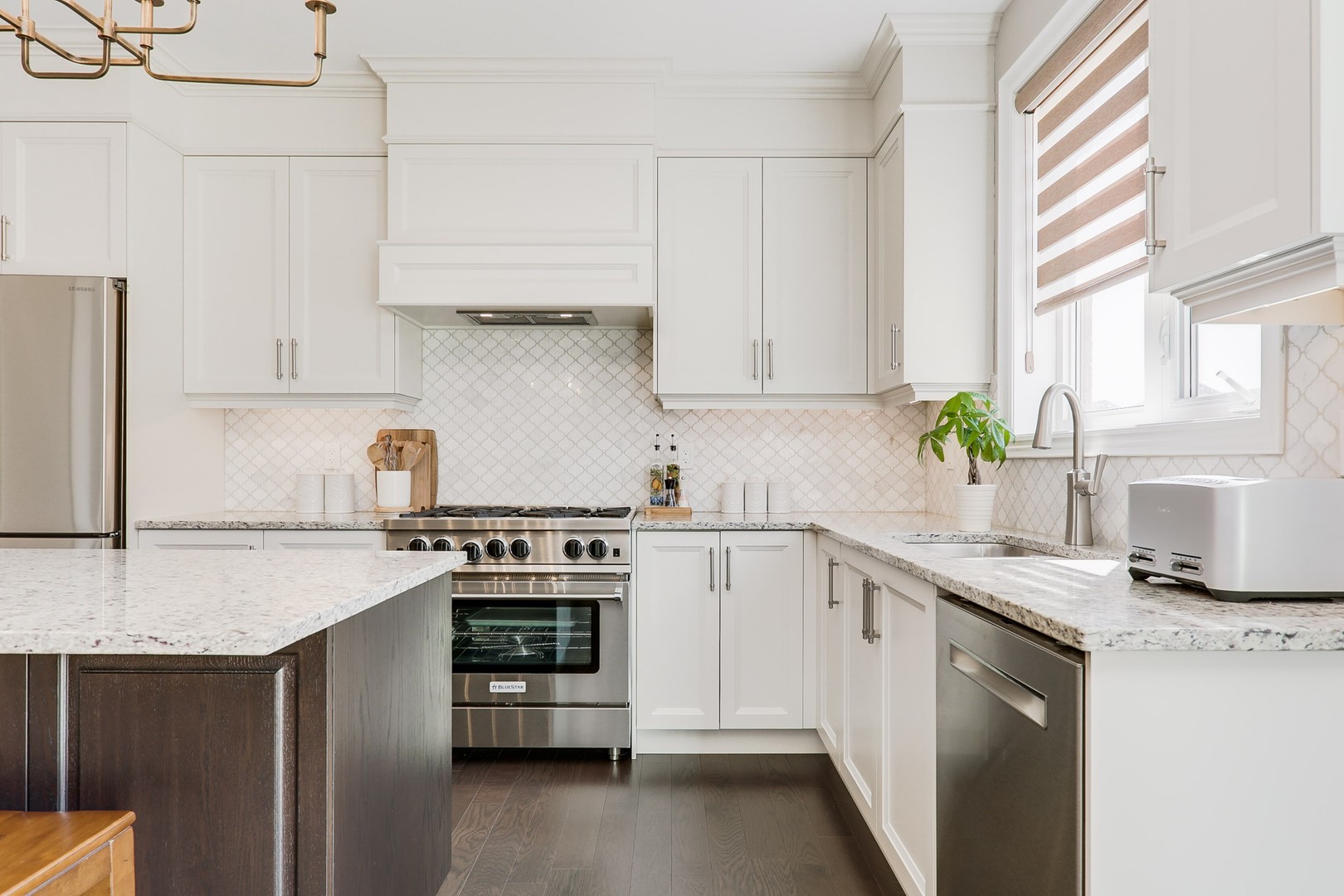 The Expansive Windows with Custom Window Coverings, the Crown Moldings, Smooth Hardwood Floors, Designer Custom Kitchen with Centre Island, Large Eat in Breakfast Area, A Butler’s Pantry, Granite Counters, Marble Back Splash & Top of Line Appliances are just a few you won’t want to miss!