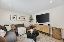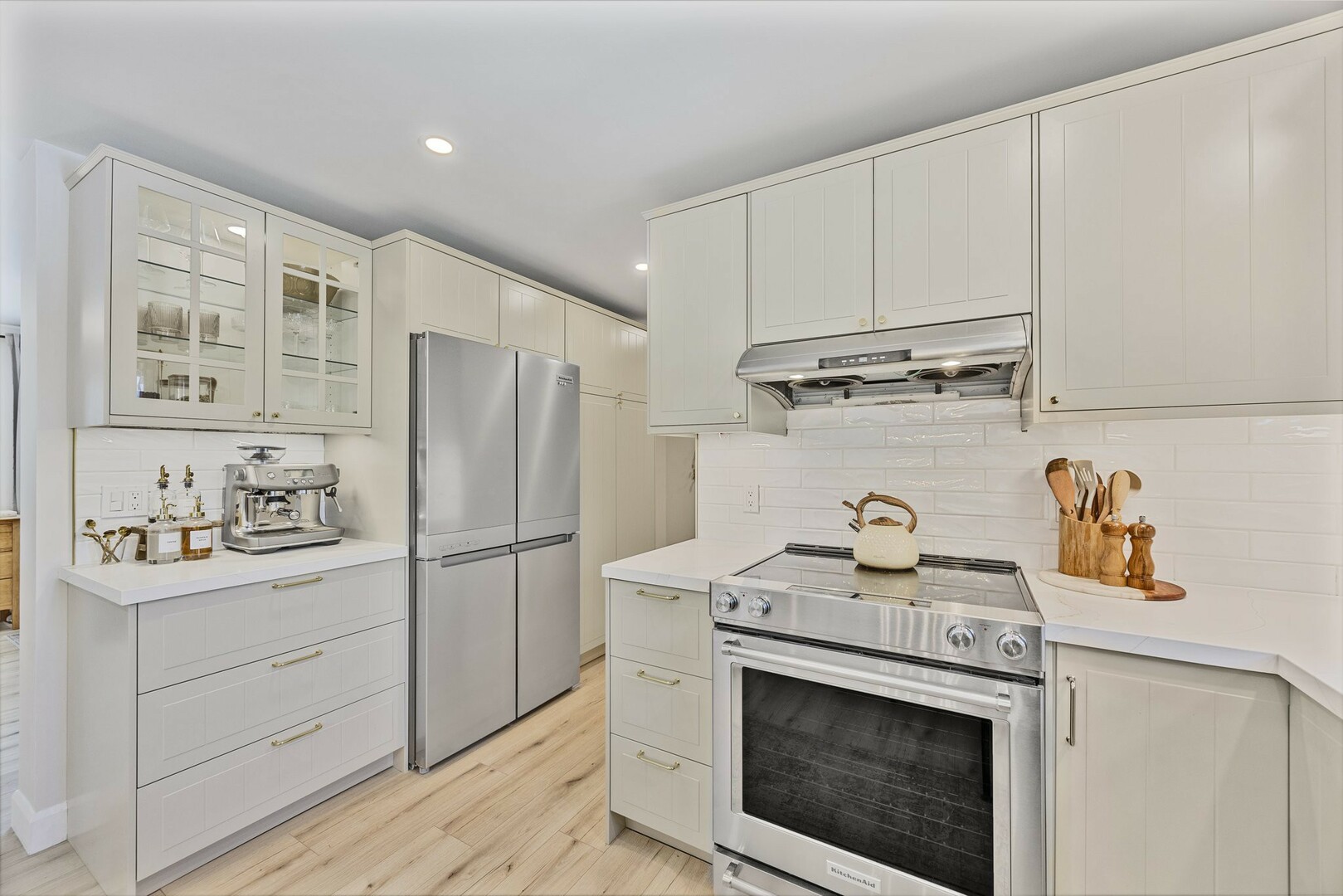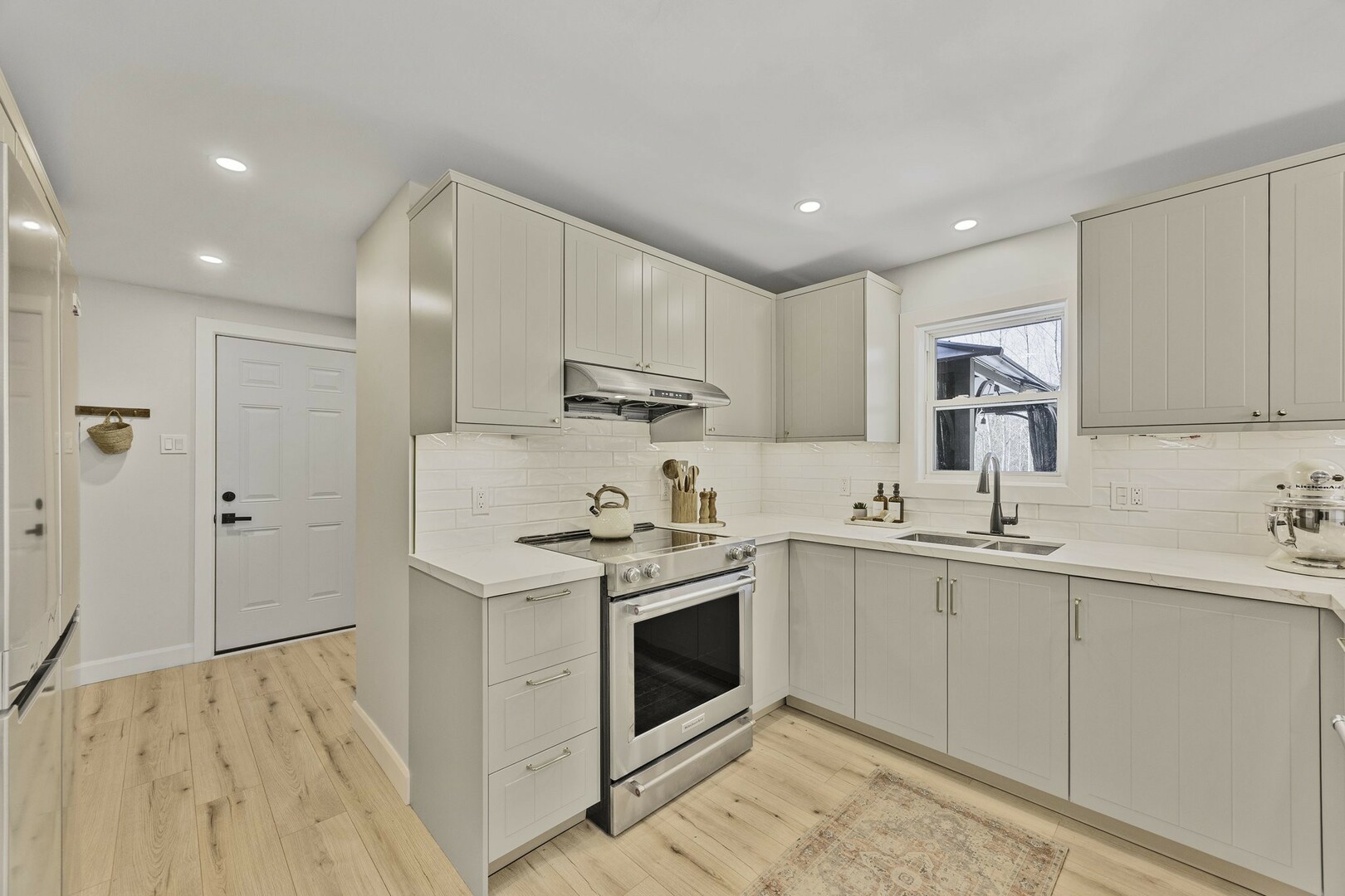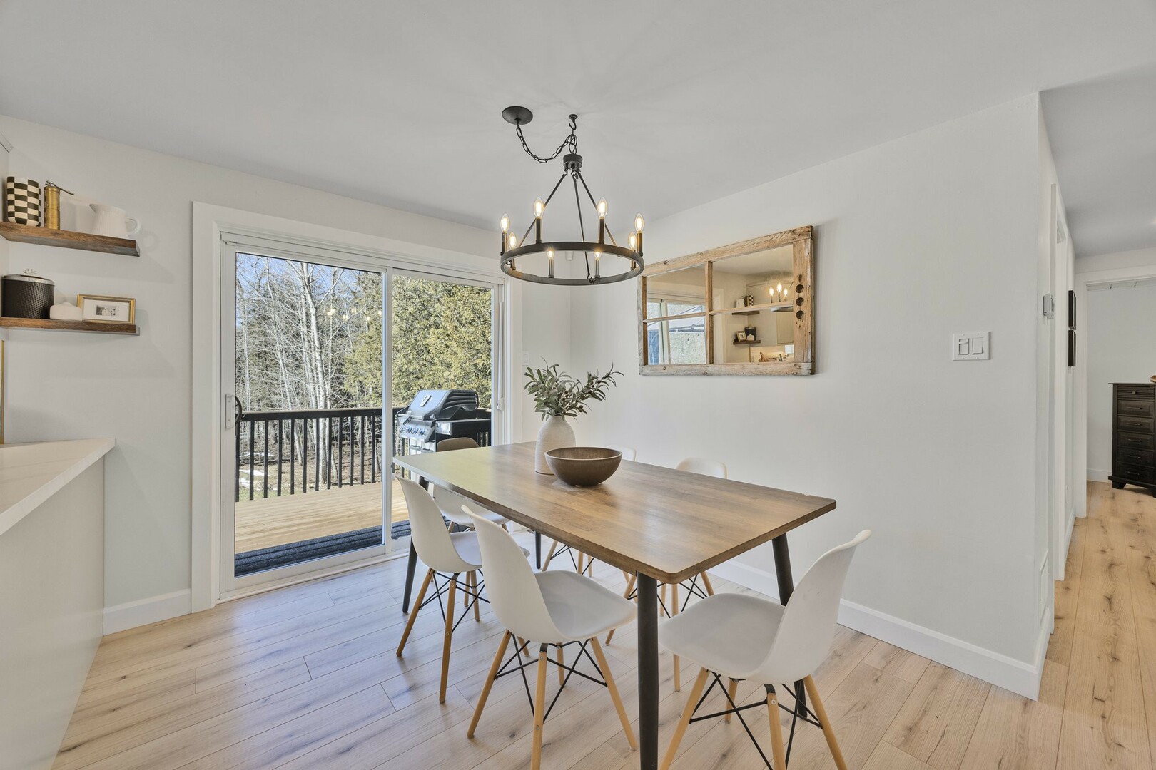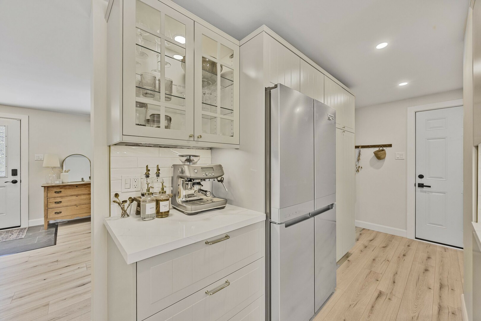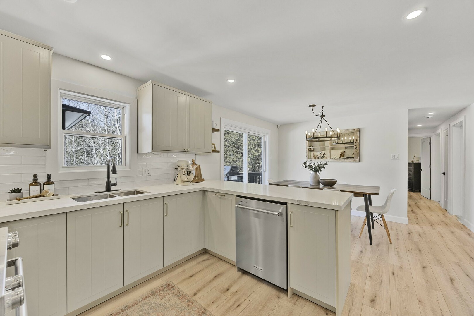 The exterior has been refreshed with new siding, and the rear deck has been re-faced and with new railings, creating an inviting outdoor space for relaxing or entertaining. Inside, the bright main level showcases new wide-plank flooring throughout and a brand-new kitchen, thoughtfully designed with quartz countertops, under-cabinet lighting, a coffee bar, pantry, and modern finishes. The open-concept kitchen and dining area offers a walkout to the west-facing deck—perfect for enjoying sunset views.
