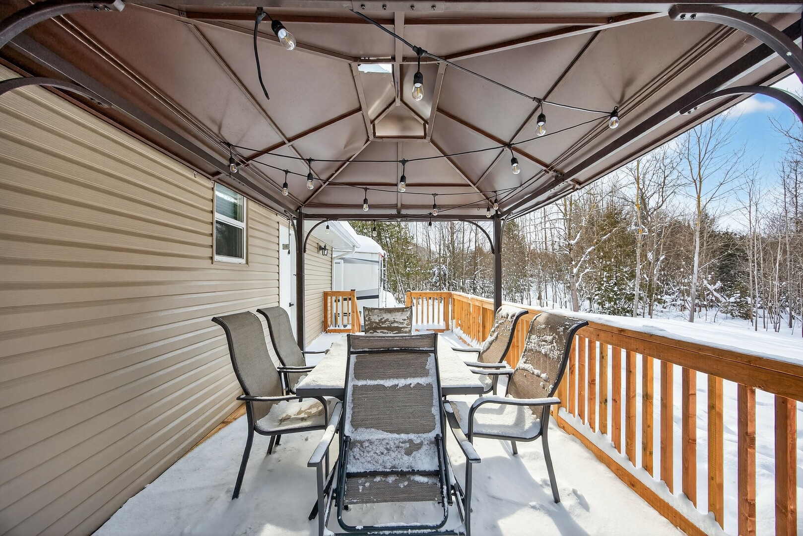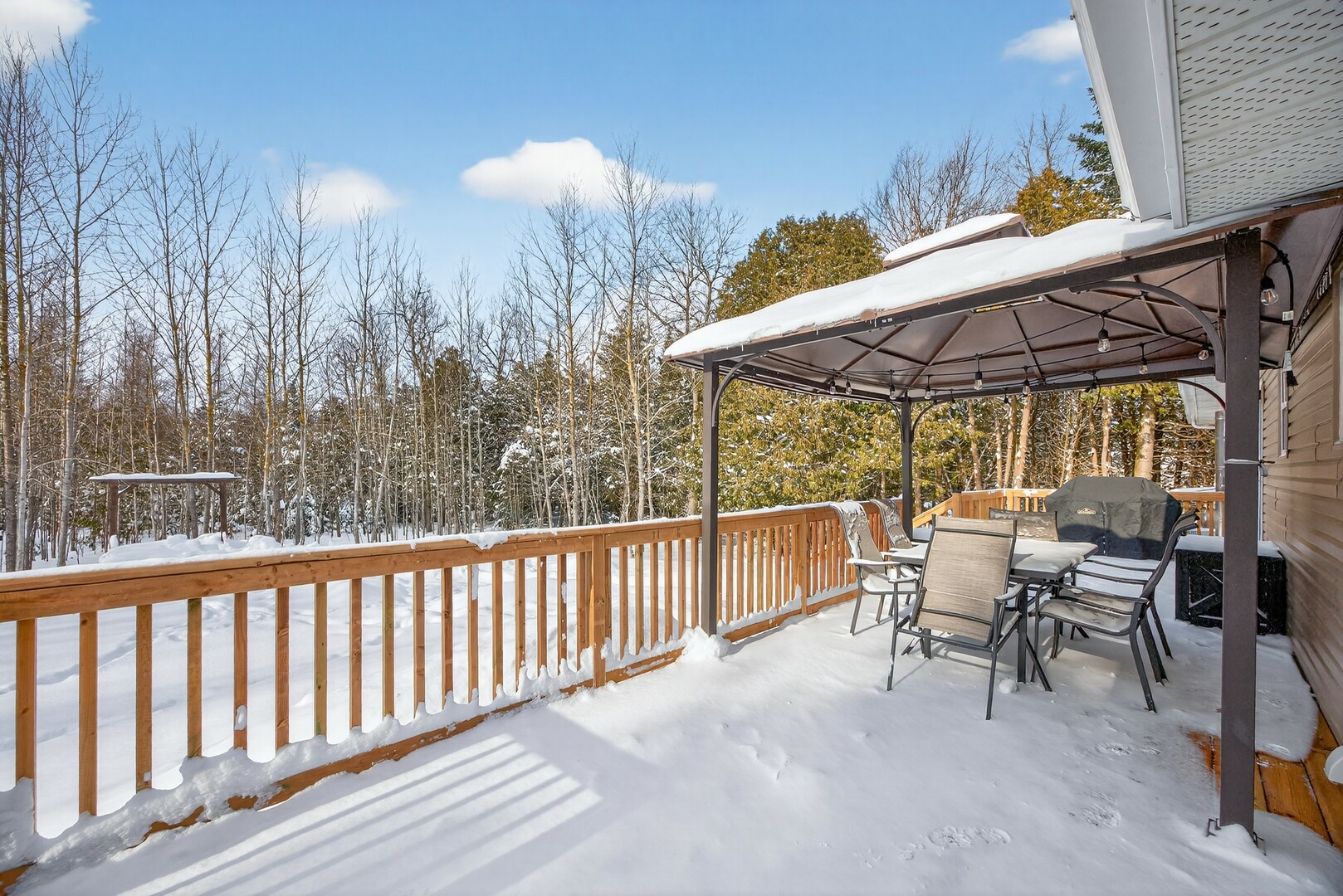 Set on a private 1-acre lot (203 ft x 219 ft) surrounded by mature trees and scenic farmland, this beautifully finished raised bungalow offers space, privacy, and modern comfort—completely move-in ready.