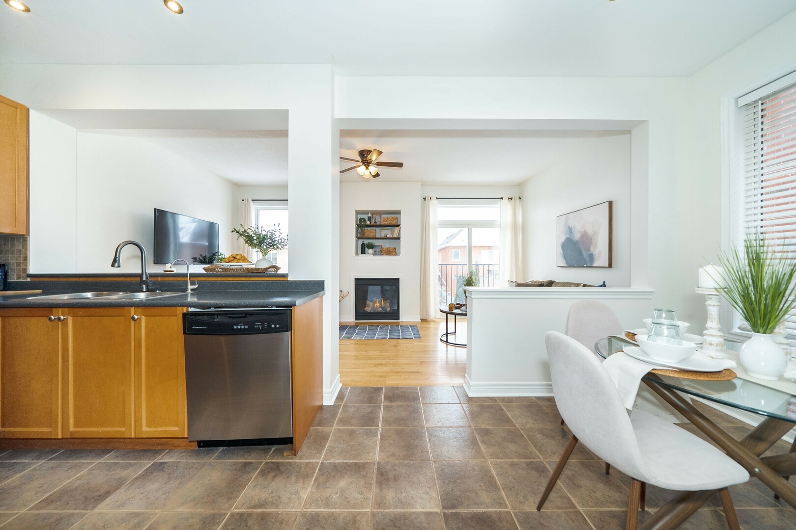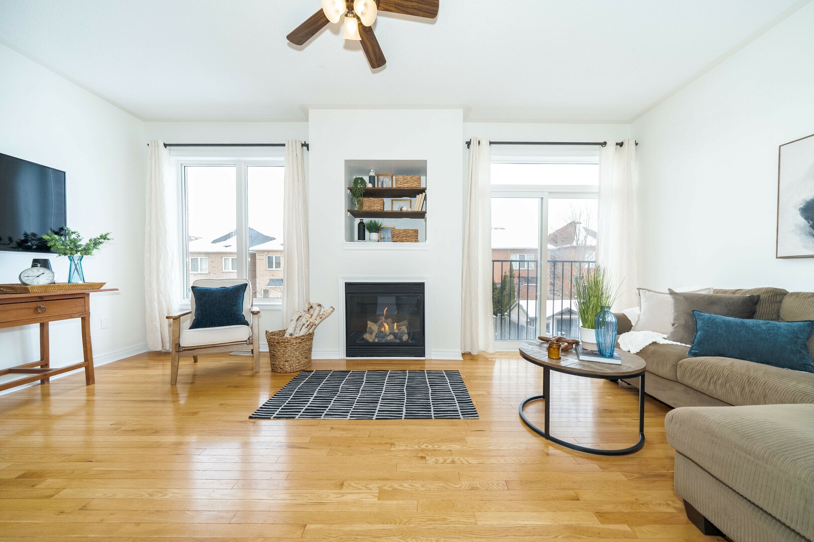 Welcome to this quality constructed Semi-detached home that features a functional open concept floor plan with over 1660 sq ft and provides 3 generous-size bedrooms, 4 bathrooms, main floor living / dining room and large family room plus the bonus feature of a spacious upper-level laundry room and a finished walk-out basement. This quiet, family-friendly street is one of the very few streets in Stouffville that offers convenient 24hr - overnight parking. Walk to Barbara Reid Public School and an amazing community park with splash pad, tennis / pickle ball and basketball court in the summer and outdoor ice rink in the winter. The bright open-concept layout is perfect for modern family living and effortless entertaining. The main floor features 9 ft ceilings, pot lights, gas fireplace, hardwood flooring. Direct garage access adds everyday convenience. The primary bedroom includes a walk-in closet and 4-piece ensuite with large soaker tub and separate shower. The two additional bedrooms, full bathroom and convenient large laundry room complete the upper level. The finished walk-out basement offers lots of windows, luxury vinyl flooring, electric fireplace and pot lights and a 4pce bathroom. In addition, there is lots of storage, a large work room complete with extensive work benches and a cold cellar too!!! The backyard is ideal for summer BBQs and family gatherings and perfect for the avid gardener. This home has been freshly painted, has a newer roof (2021), most windows replaced (2026), central vacuum, included BBQ with exterior gas hook up. Just minutes to Stouffville's vibrant Main Street with quaint shops and local restaurants, leisure/rec center, arenas and everyday amenities. Perfect for commuters with convenient access to major routes and GO transit. This is truly a beautiful, turn-key home in a true family-oriented community.