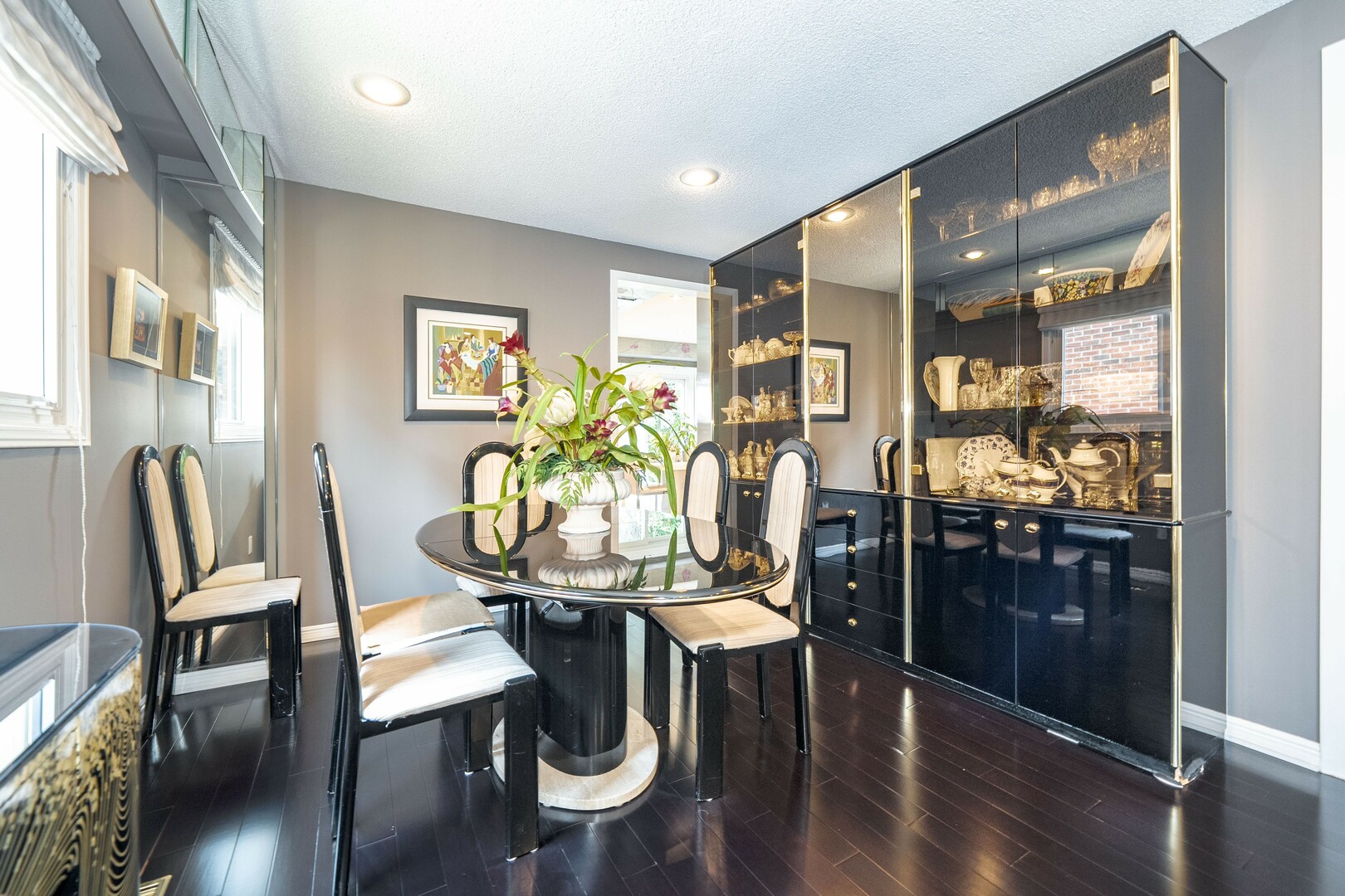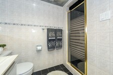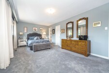 Upstairs, the generous primary suite boasts an updated ensuite bath and custom walk-in closet. Three additional large bedrooms each feature ample closet space and share a spacious double-sink bathroom.