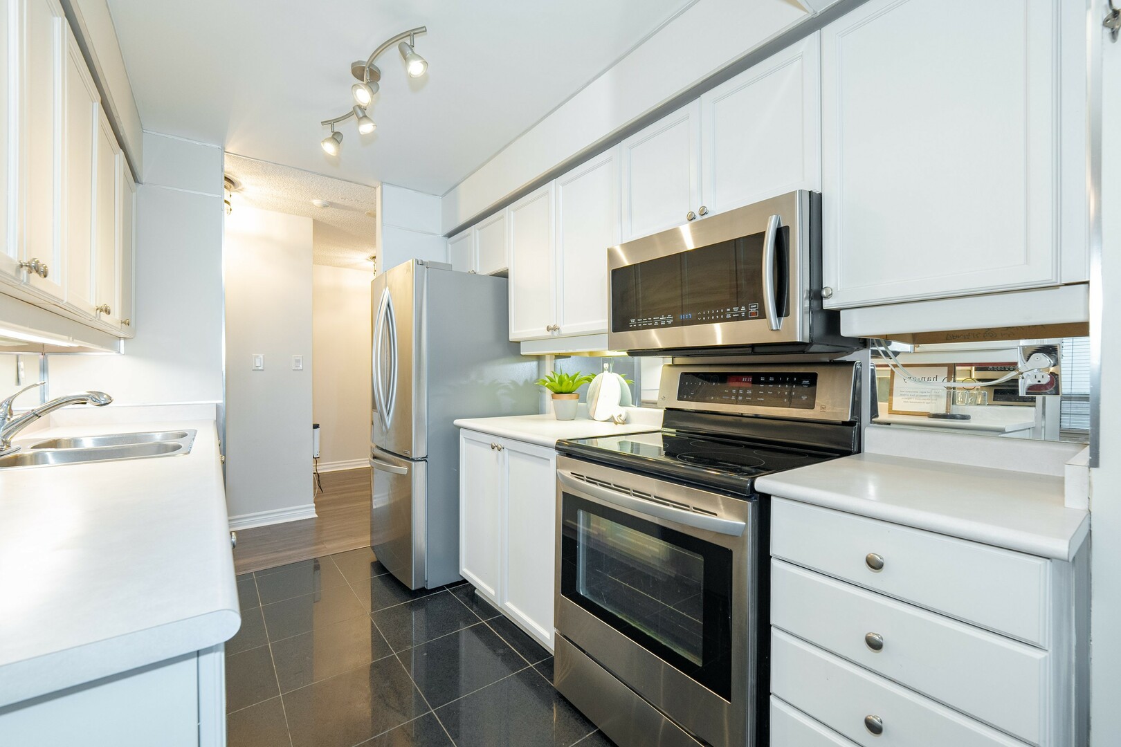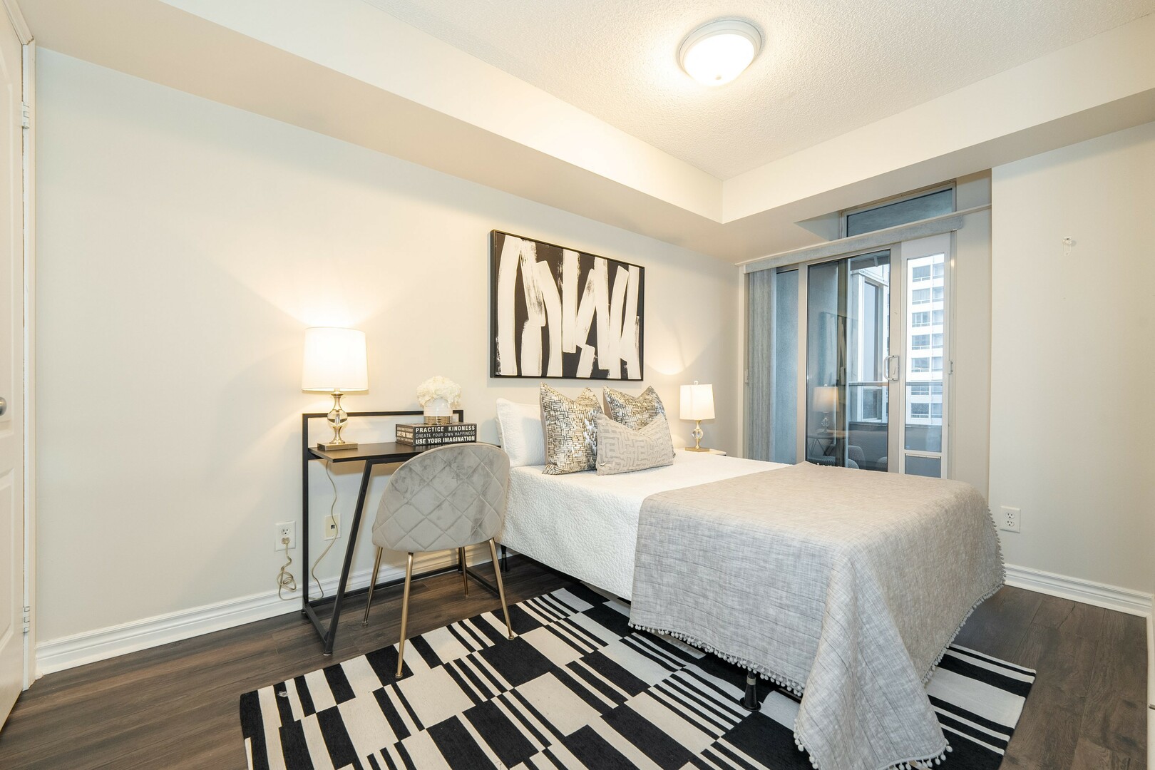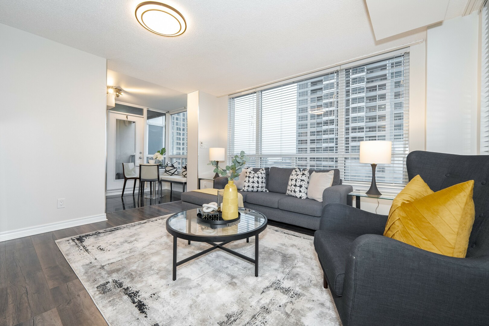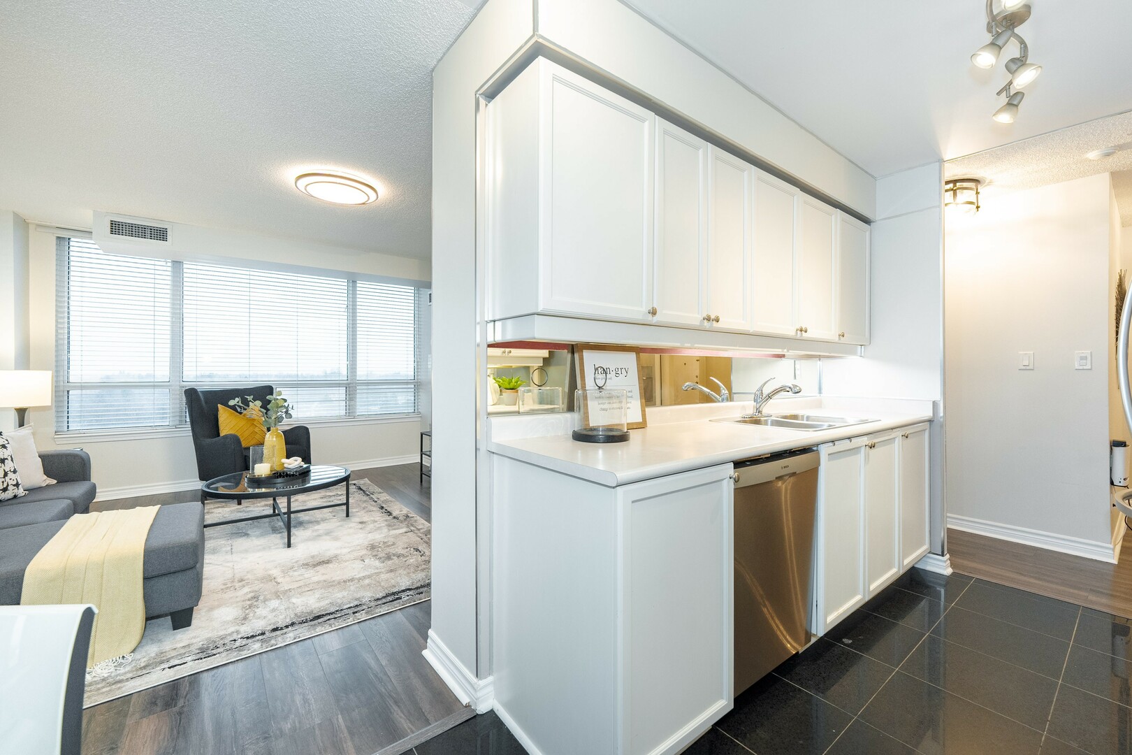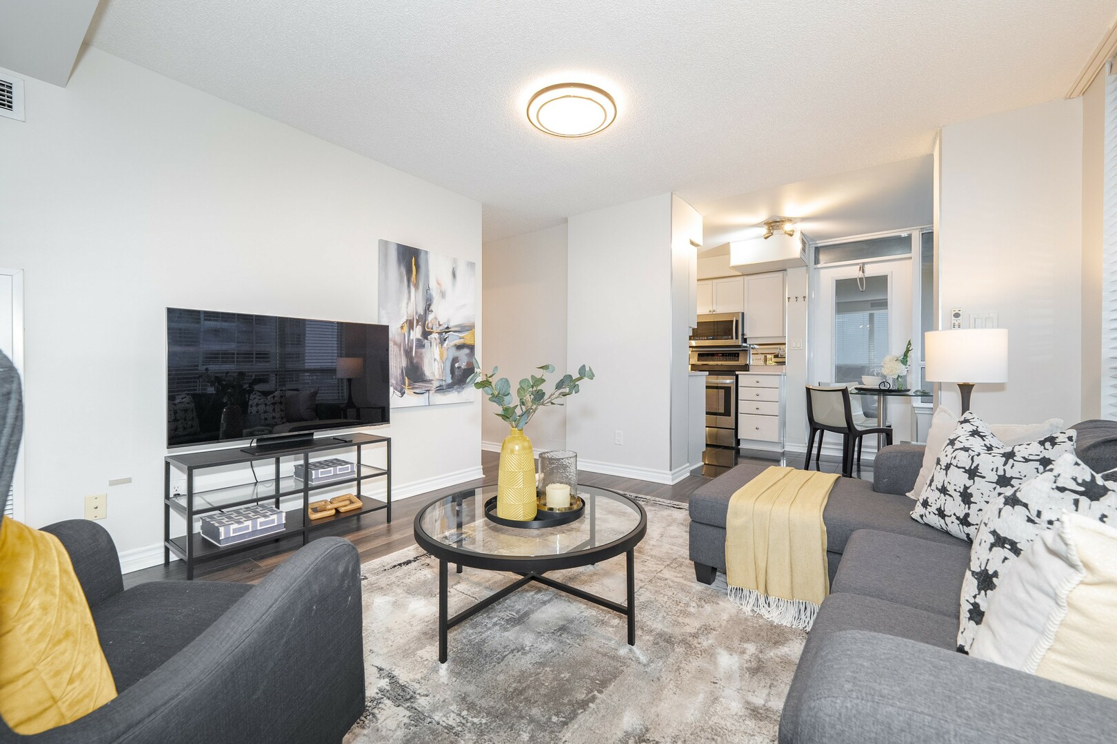 Sun-filled 2-bed, 2-bath condo with lots of natural light for a bright, airy feel. The open concept living room area flows seamlessly into a warm, inviting kitchen with ample storage. The spacious primary suite boasts a private ensuite and generous closet space. A well appointed second bedroom is perfect for guests, a home office, or both. In-suite laundry adds everyday convenience to this stylish urban retreat. Includes one parking space and a locker for extra storage. Enjoy top-tier building amenities, including a gym, pool, and 24-hour concierge. Steps to transit, shopping, and dining with top rated schools and major highways moments away. Experience the perfect blend of comfort, convenience, and luxury!