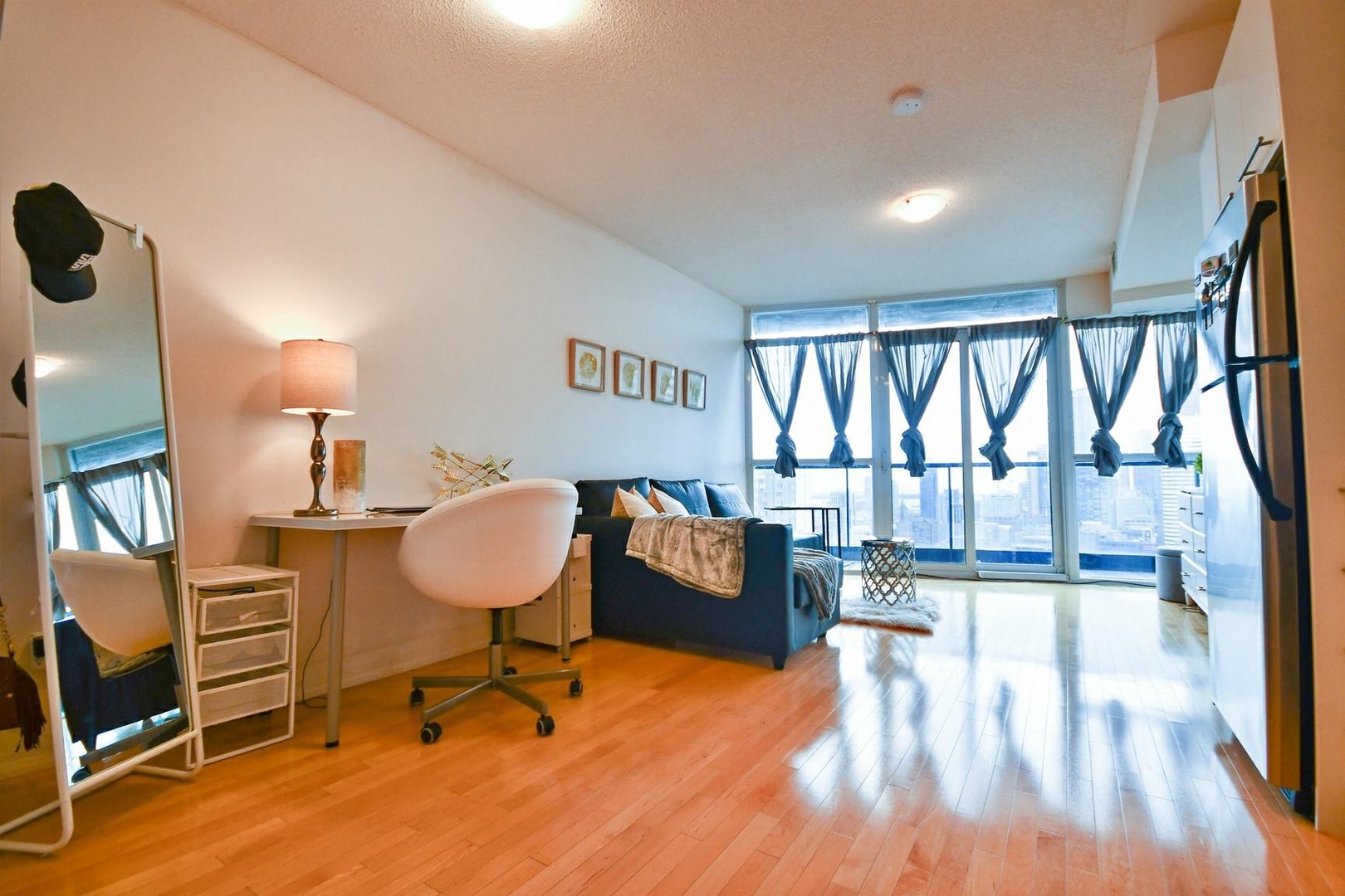 Amazing Bachelor with unobstructed South City & Lake View! Location! Location! Location! Steps To Subway, Loblaws, Street Cars, Shops, Ryerson University And All Other Amenities *Luxury 'The Met' Building with Plenty of Visitor Parkings (rarely offered) Indoor Pool *24Hr Concierge Unobstructed City View *8' 6" High Ceiling *Granite Counter Top In Kitchen *Hardwood Flooring Thru Out, Move in Ready!