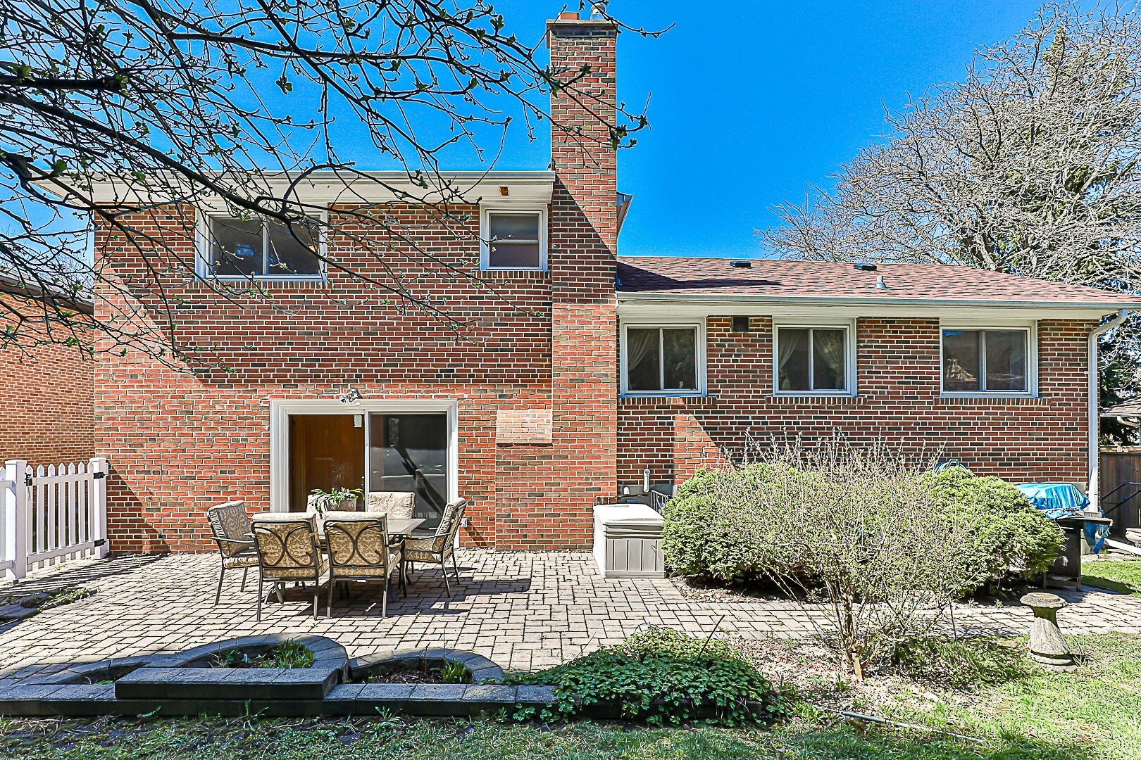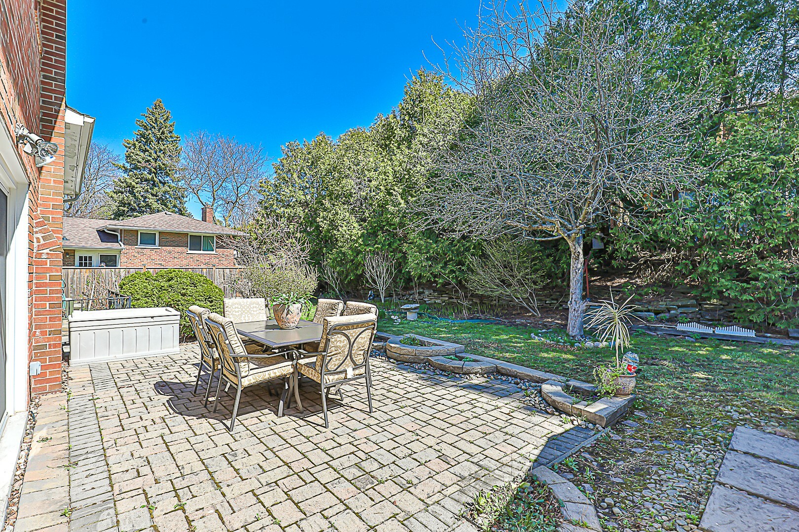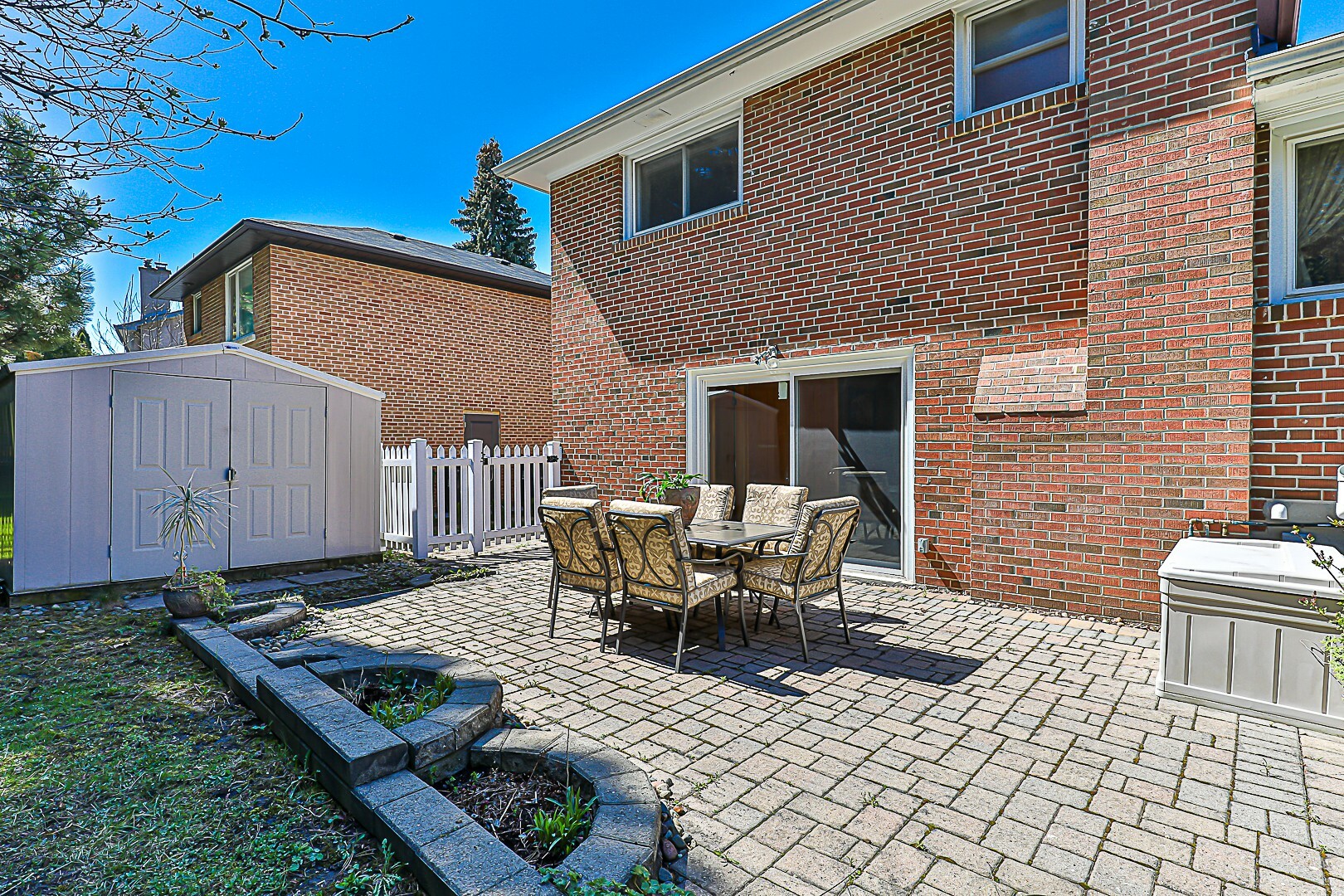 • Outdoor Living: Features an attached garage, a lush garden, stone patio, and a private yard ideal for relaxation and gatherings.
