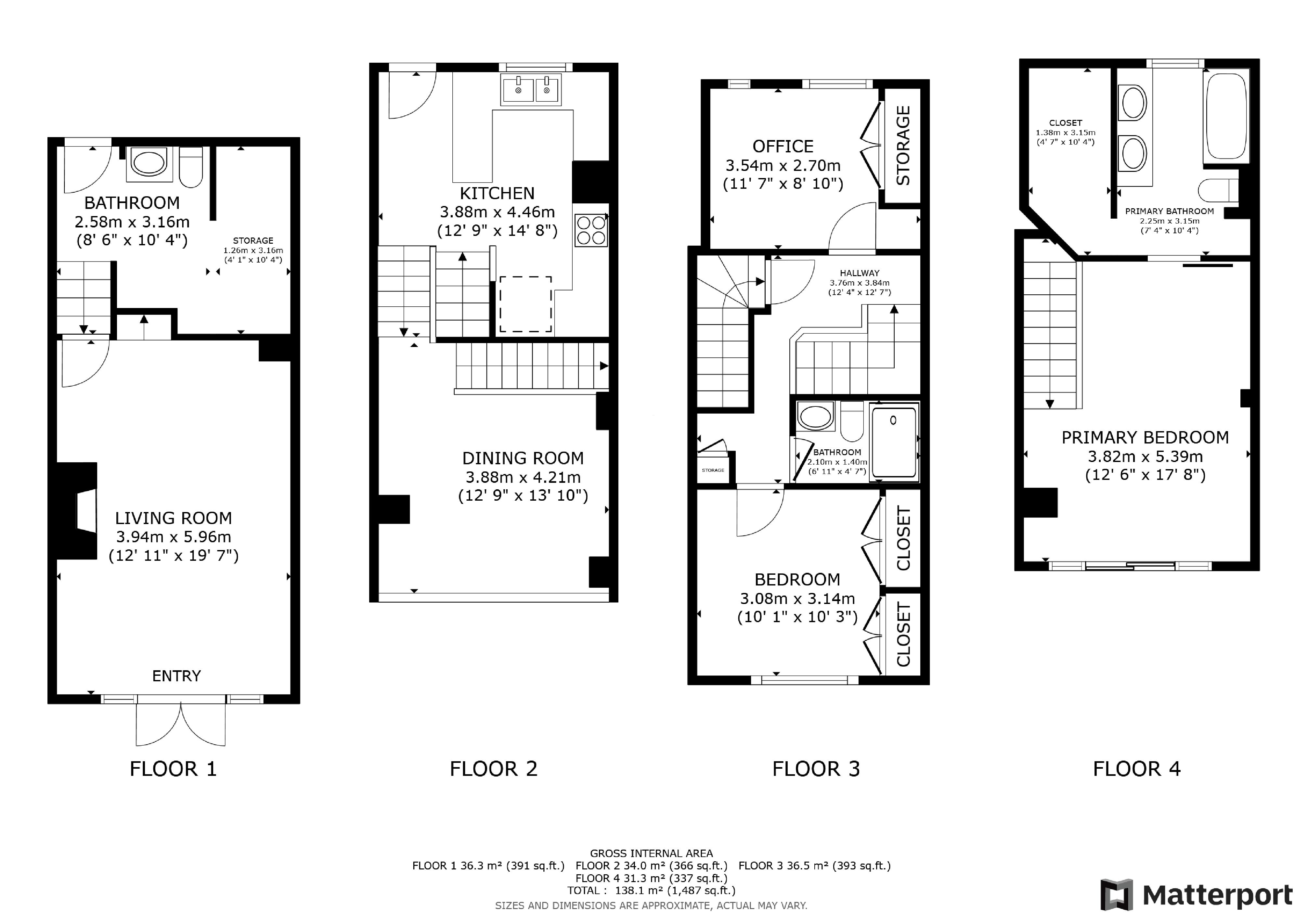 | Primary Bedroom | Third level | 5.22 x 3.89 (meters) |