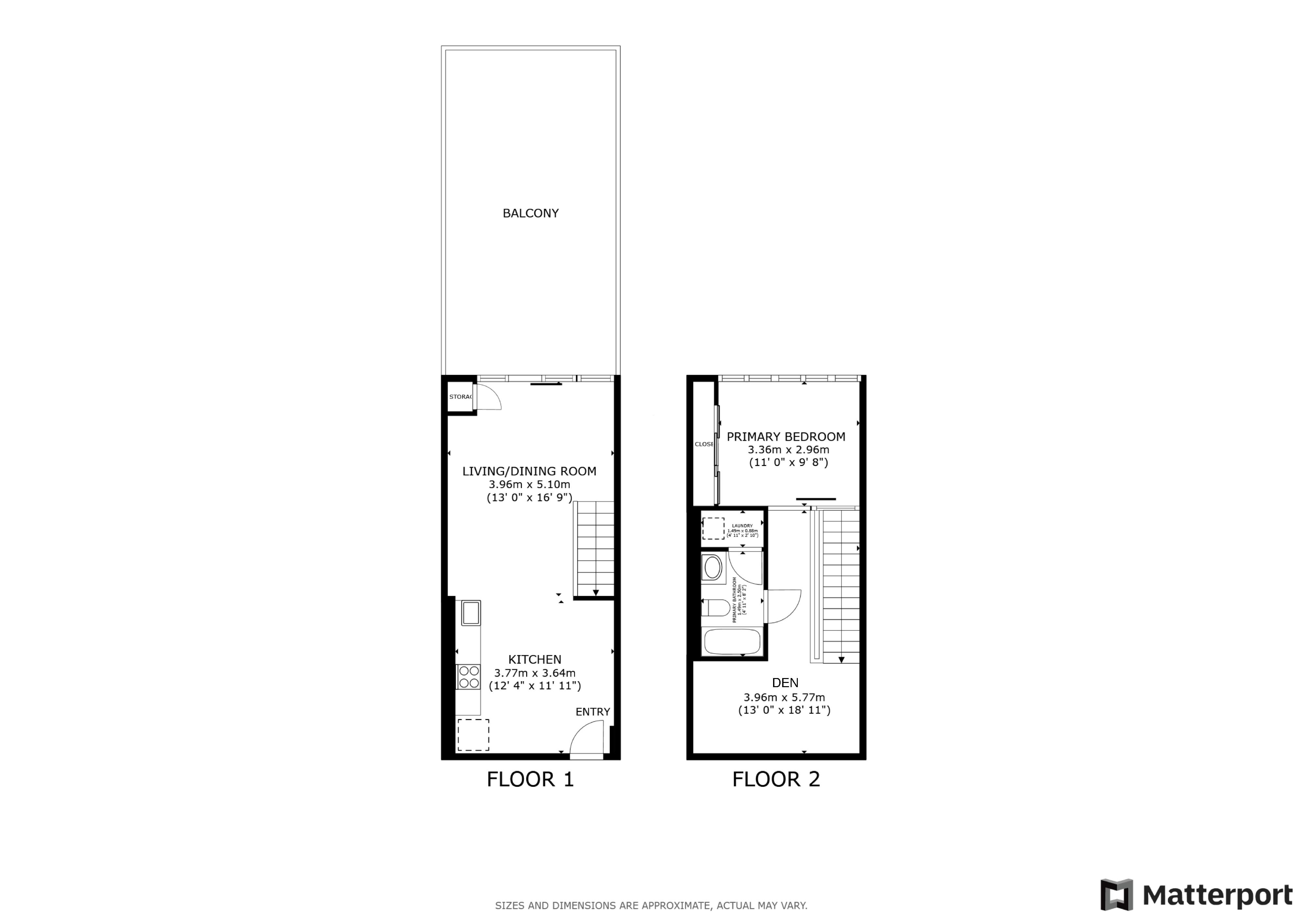 Primary Bedroom Second level 3.36 x 2.96 (meters)