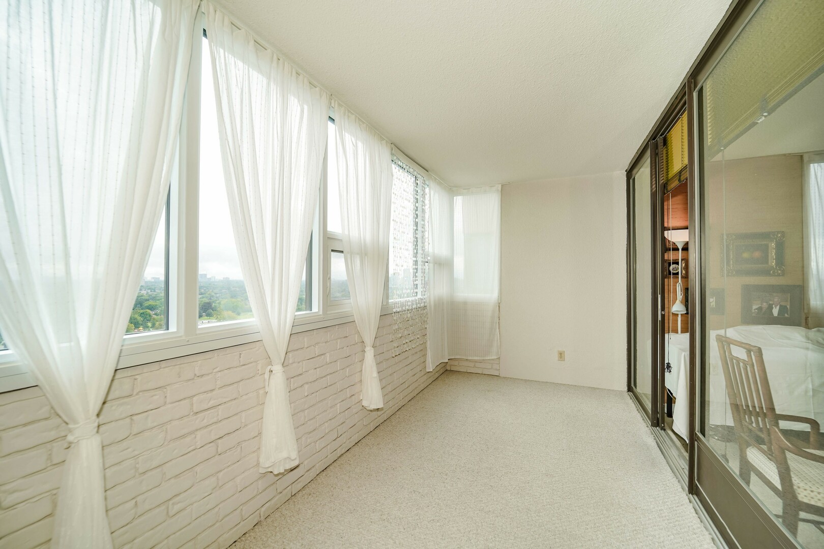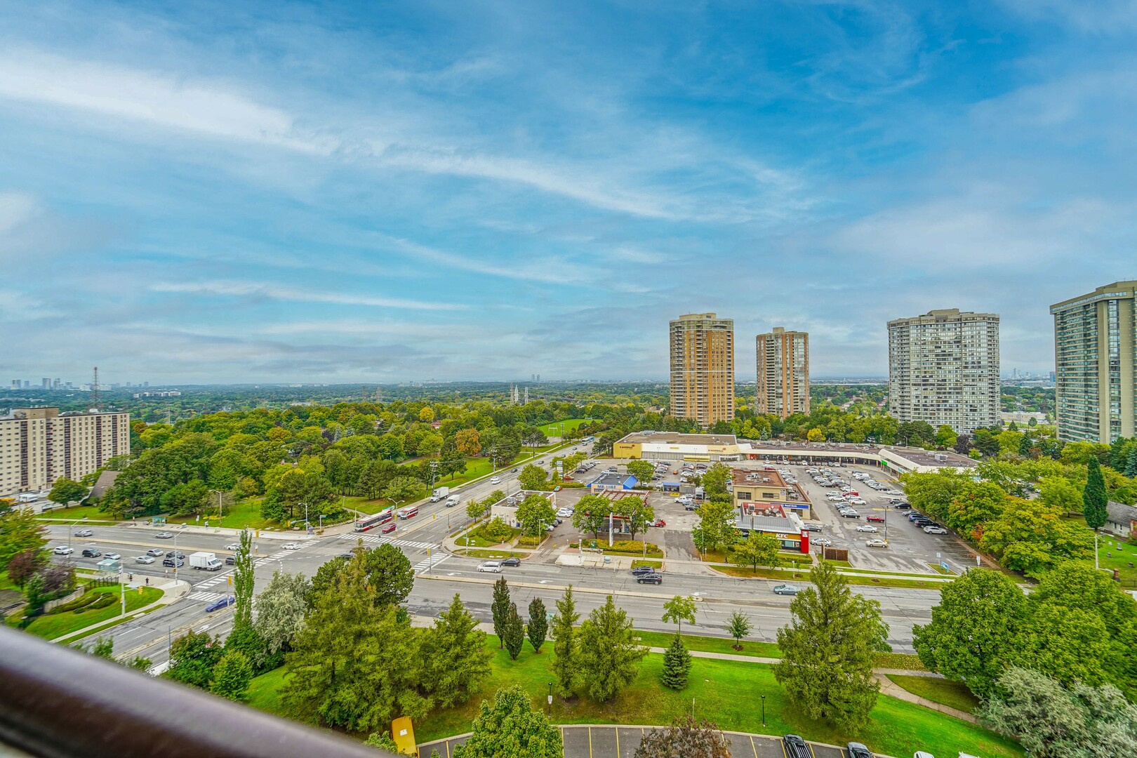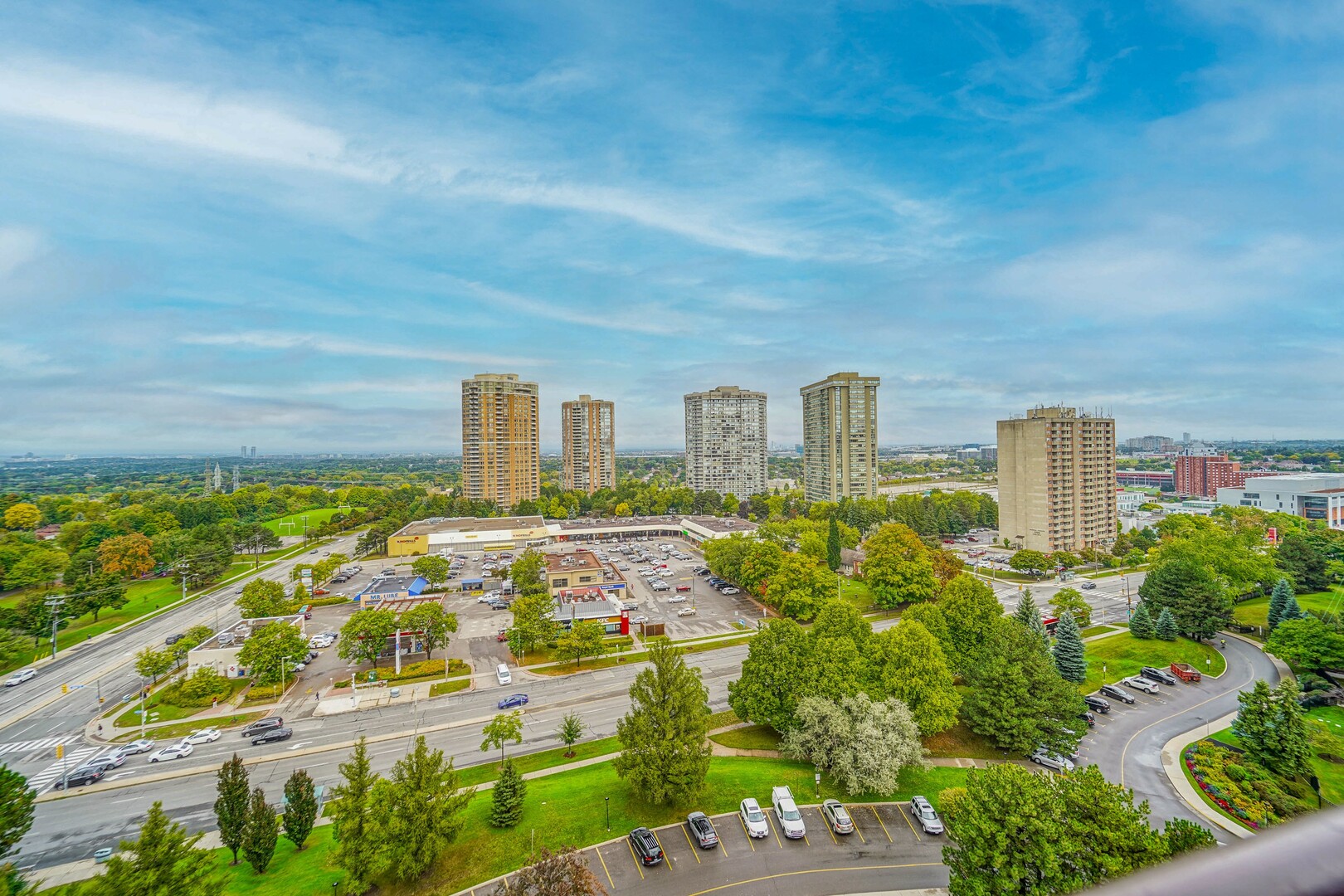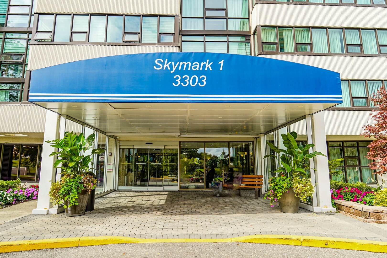 Welcome to Skymark 1, a prestigious and highly sought-after condominium community offering resort-like living! This spacious 2-bedroom + large den/family room suite spans about 1,600 sq ft (just over $450/sq.ft.), with 2 amazing parking spots, one just outside the entry door. It provides the perfect blend of comfort and convenience, whether you're a growing family or looking to downsize into a more manageable, yet luxurious space. Step inside to be greeted by a classic and functional layout featuring a sun-drenched solarium with breathtaking panoramic views, perfect for relaxing or setting up your own indoor garden oasis. The generous den offers flexibility for a home office, hobby room, or guest space. Enjoy the expansive balcony for outdoor dining or simply taking in the city views. Skymark 1 is known for its extensive, resort-style amenities, including tennis courts, indoor and outdoor pools, a fitness center, party rooms, and 24/7 security. It's a community that caters especially well to seniors, with senior-friendly features and plenty of social opportunities, ensuring you feel right at home. The unit includes two parking spots, one conveniently located right outside the door for easy access. Shopping and dining are just across the street, and you're only a 5-minute drive to Fairview Mall for all your retail needs and access to the subway. With quick access to both Highway 404 and 401, getting around the city is a breeze. Don't miss the chance to live in this exclusive complex, where luxury, convenience, and value come together seamlessly! If you are looking for less hassles doing home maintenance and more time to enjoy living but do not want to compromise on space then make sure you check out this unit. Don't forget the finances. This building is assessment free. **EXTRAS** The extras of this complex are truly unbelievable for the price. There is a new virtual golf simulator, sauna, games room, meeting rooms, media room, basketball court, daily activities.