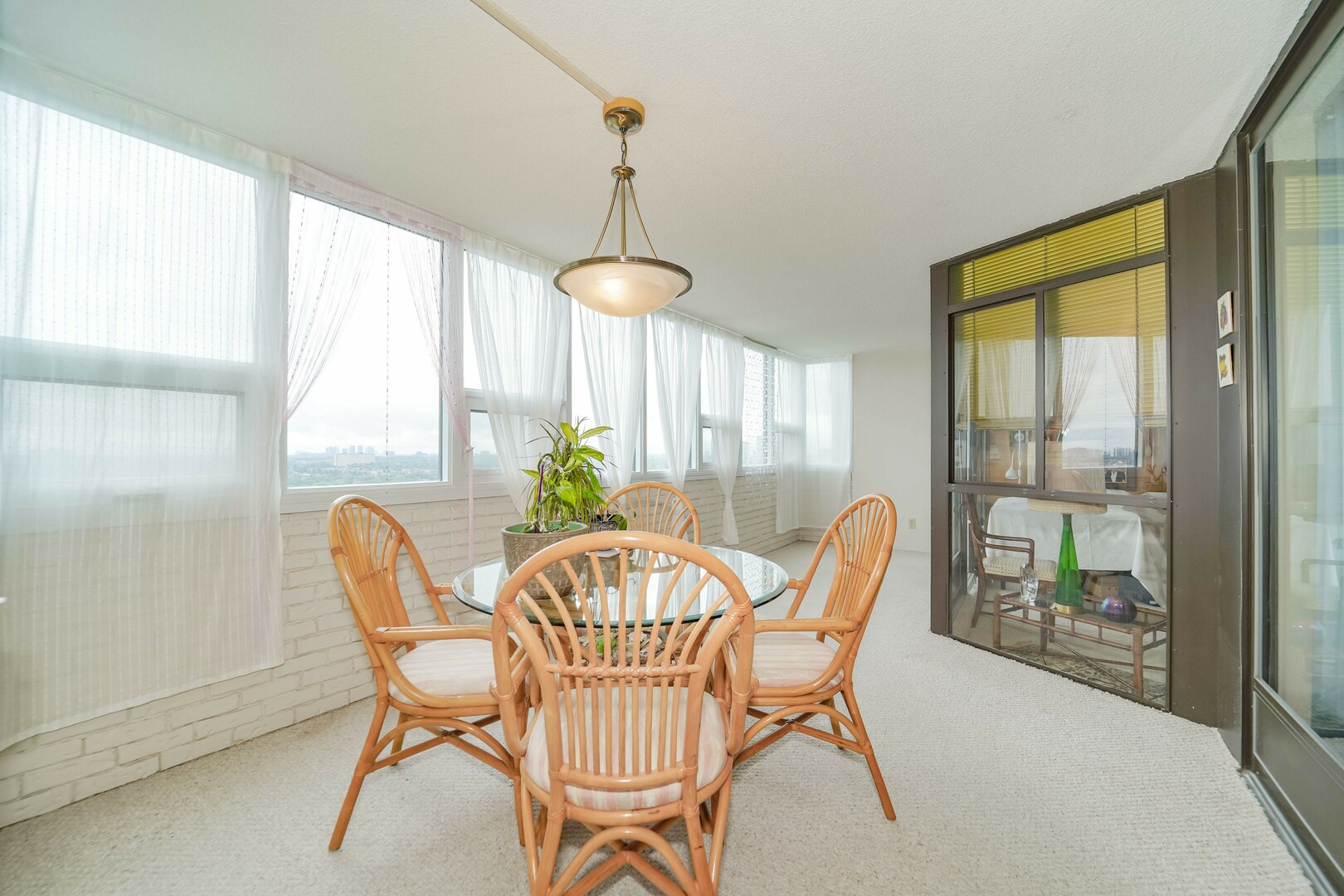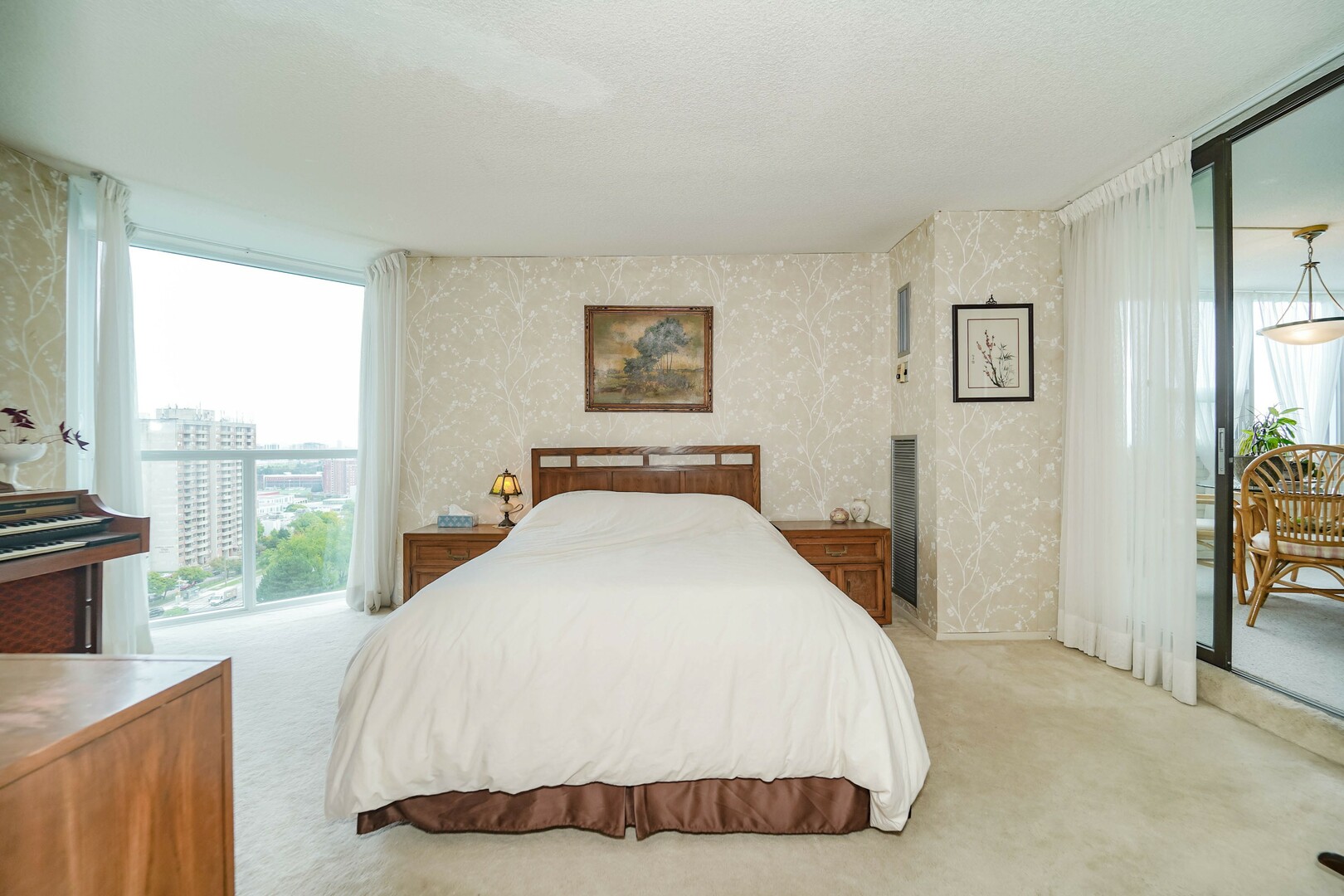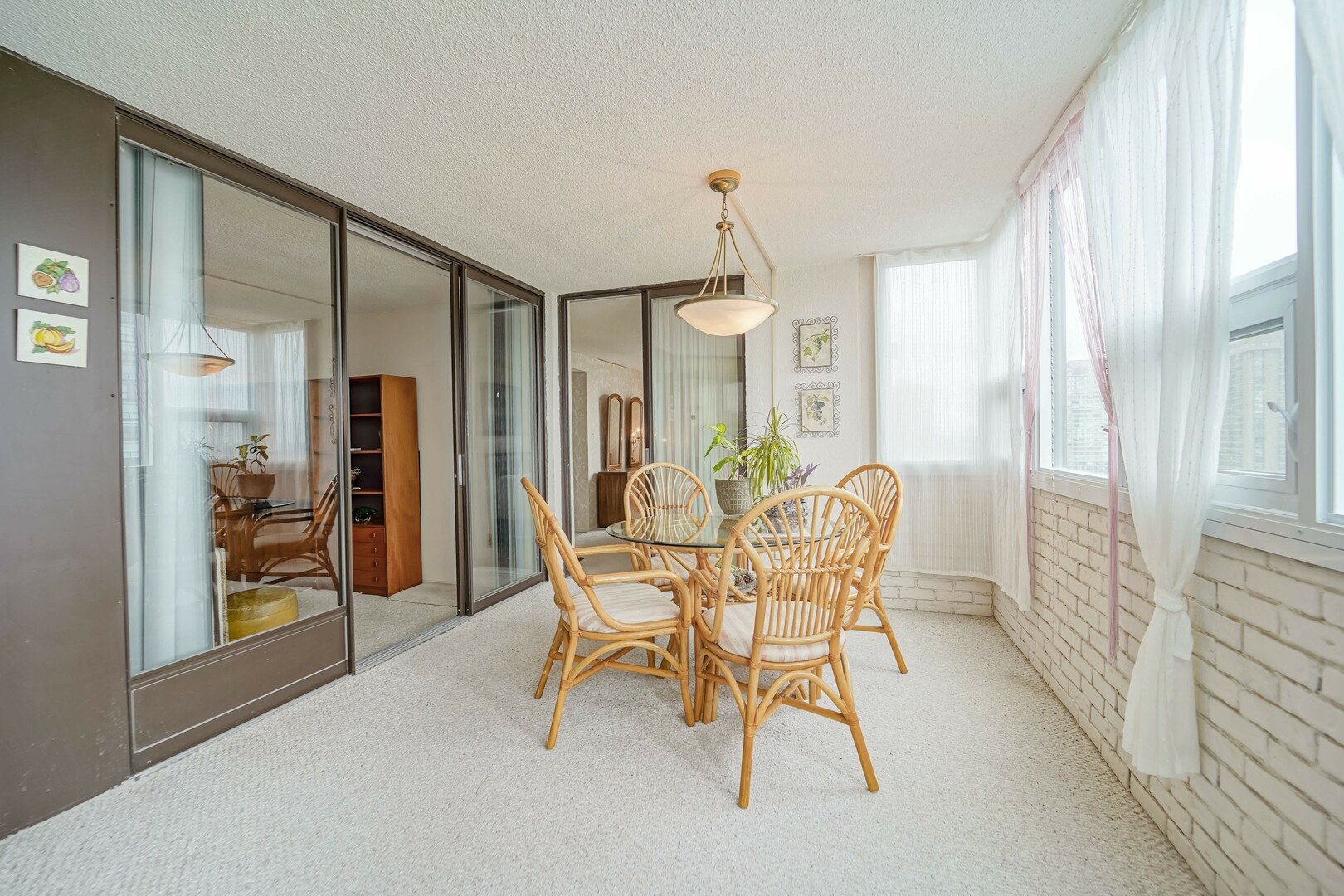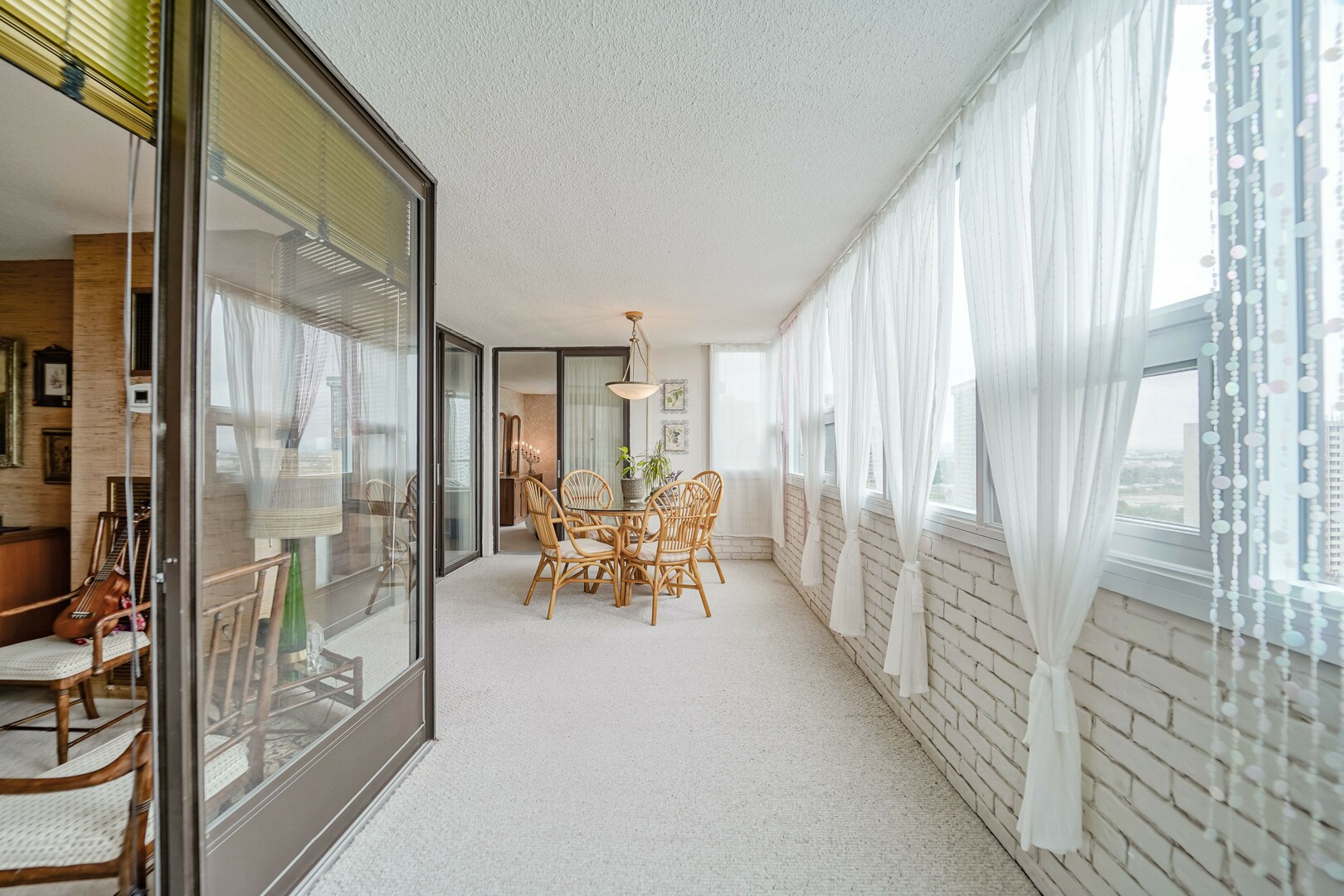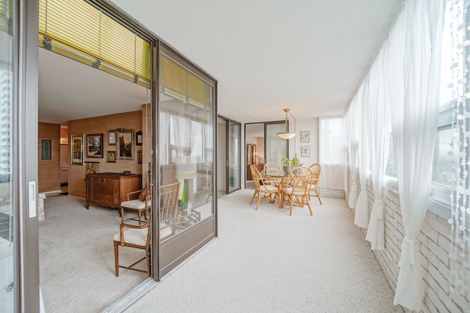 Welcome to Skymark 1, a prestigious and highly sought-after condominium community offering resort-like living! This spacious 2-bedroom + large den/family room suite spans about 1,600 sq ft (just over $450/sq.ft.), with 2 amazing parking spots, one just outside the entry door. It provides the perfect blend of comfort and convenience, whether you're a growing family or looking to downsize into a more manageable, yet luxurious space. Step inside to be greeted by a classic and functional layout featuring a sun-drenched solarium with breathtaking panoramic views, perfect for relaxing or setting up your own indoor garden oasis. The generous den offers flexibility for a home office, hobby room, or guest space. Enjoy the expansive balcony for outdoor dining or simply taking in the city views. Skymark 1 is known for its extensive, resort-style amenities, including tennis courts, indoor and outdoor pools, a fitness center, party rooms, and 24/7 security. It's a community that caters especially well to seniors, with senior-friendly features and plenty of social opportunities, ensuring you feel right at home. The unit includes two parking spots, one conveniently located right outside the door for easy access. Shopping and dining are just across the street, and you're only a 5-minute drive to Fairview Mall for all your retail needs and access to the subway. With quick access to both Highway 404 and 401, getting around the city is a breeze. Don't miss the chance to live in this exclusive complex, where luxury, convenience, and value come together seamlessly! If you are looking for less hassles doing home maintenance and more time to enjoy living but do not want to compromise on space then make sure you check out this unit. Don't forget the finances. This building is assessment free. **EXTRAS** The extras of this complex are truly unbelievable for the price. There is a new virtual golf simulator, sauna, games room, meeting rooms, media room, basketball court, daily activities.