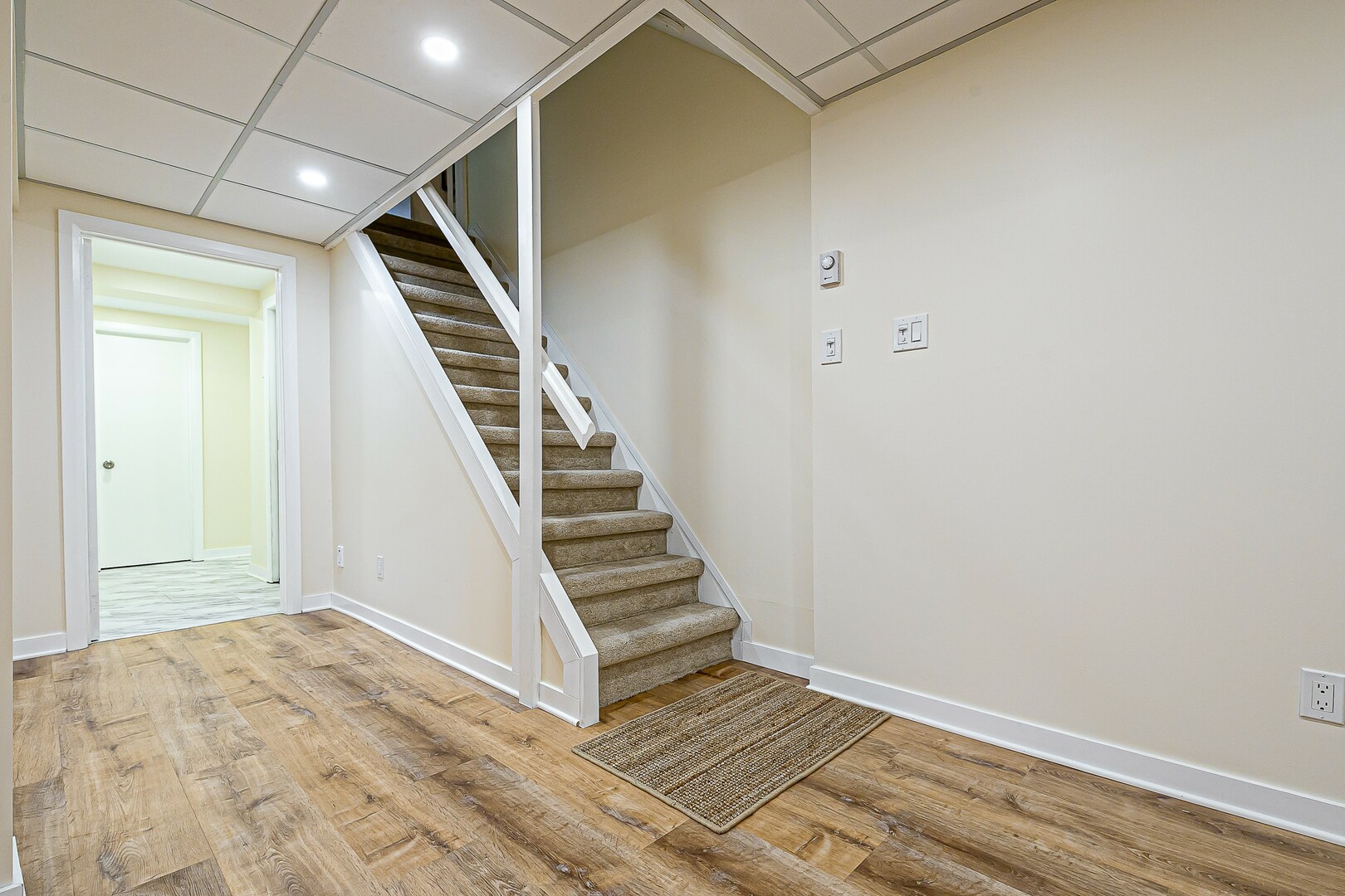 The newly renovated lower level offers above-grade windows, professional finishes, and incredible flexibility. It includes a large recreation room, an office or storage area, a modern 3-piece bathroom, a laundry room, and an unfinished space that could be used for storage or transformed into a kitchen—making it perfect for a potential in-law suite.