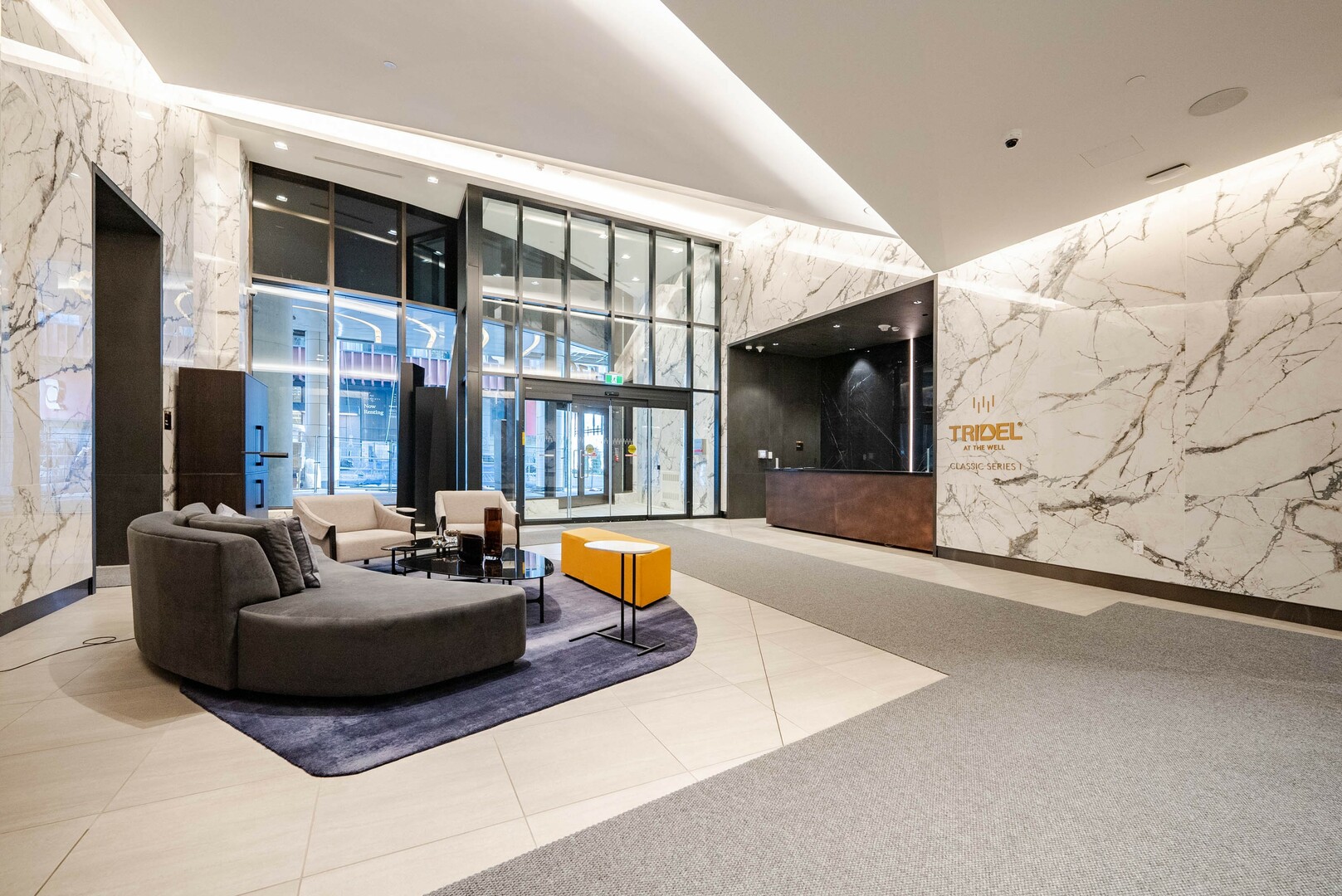 Discover urban sophistication at The Well by Tridel. This new 1-bedroom condo offers modern elegance with floor-to-ceiling windows framing city views. Enjoy a chef's kitchen, upscale amenities including a fitness center, pool, and 24-hour concierge. Prime downtown location with easy access to shopping, dining, and transit. Experience luxury living at its finest.