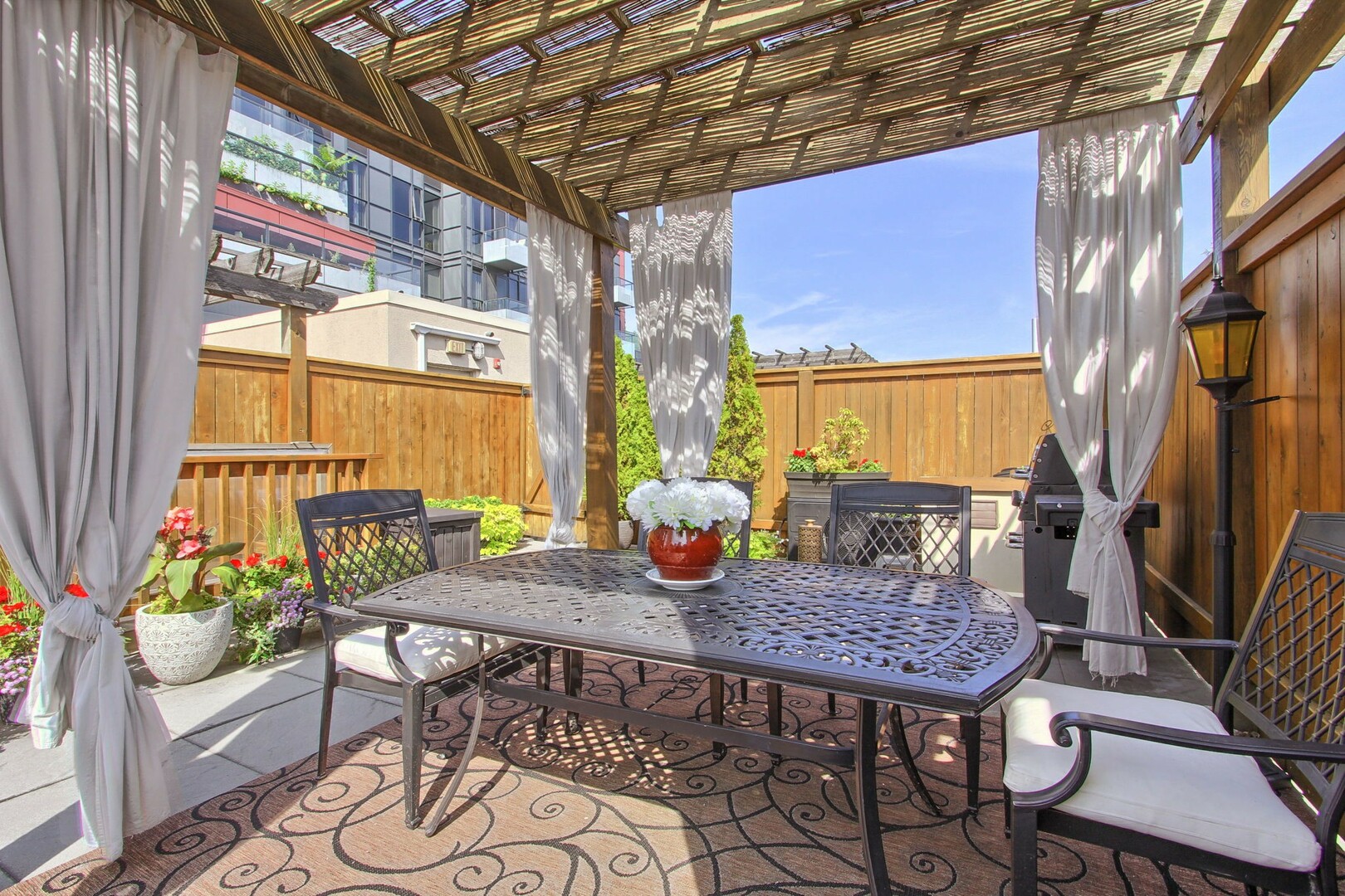 Discover the epitome of urban sophistication with our latest offering in the heart of King West Village. This stunning suite in the established Portland Park Village boasts an expansive layout spread across a total of approximately 1200 sq. ft. of living space, complemented by a 550 sq. ft. private rooftop terrace. The terrace has a gas-equipped BBQ for your outdoor culinary adventures as well a pergolas, bar & ampule seating for out door entertaining. The terrace provides breathtaking panoramic views of the city skyline, ensuring an unrivaled ambiance for entertaining & tranquil relaxation. The interior of this residence is equally impressive, featuring two well-proportioned bedrooms, with offering ample space. The open-concept kitchen & living area provide a seamless flow, with a design that accommodates full-sized furnishings without compromise. High 9' ceilings enhance the sense of space throughout, while the suite's southern exposure floods the home with natural light, accentuating the panoramic vistas. The kitchen is a chef's delight with impeccable stone countertops & a full suite of stainless steel appliances, while the convenience of a pantry & a gas fireplace adds to the home's comfort & functionality.The attention to detail continues with luxurious ceramic flooring throughout, a spacious 4-pc bathroom featuring a soaker tub & stacked washer & dryer laundry on the upper level, and a convenient 2-pc power room on the main level. Residents will also enjoy the added amenities of the building, including a well-equipped fitness centre. With its close proximity to transit options, this suite is not only a haven of luxury but also offers the ultimate in convenience for those seeking a vibrant lifestyle in downtown Toronto. This is an exceptional opportunity for down sizers seeking the perfect blend of community and city living in a respectful, homeowner-filled building. Close to shopping, Billy Bishop Airport, CNE grounds, restaurants & historic Fort York. (id:9346)