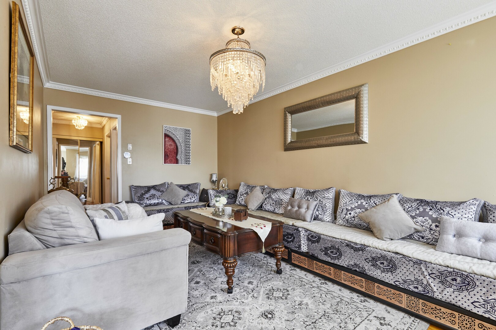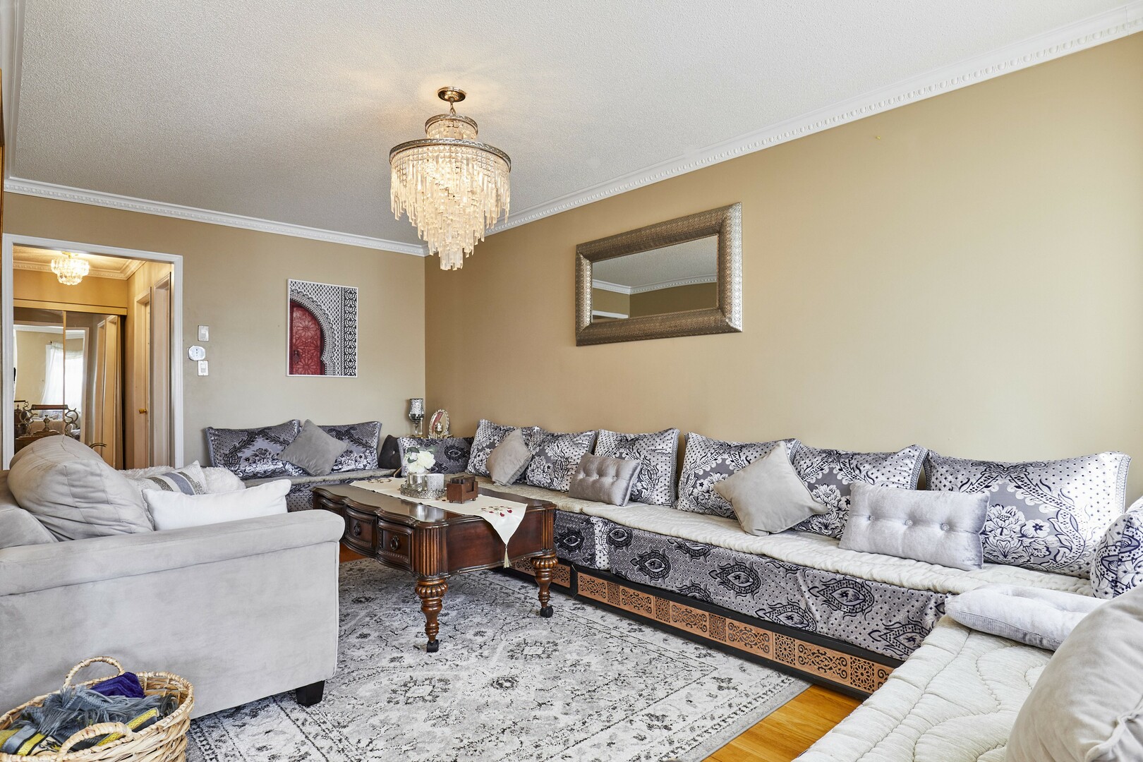 Offering approximately 2,000sq. ft. of thoughtfully designed living space, this beautifully maintained home perfectly blends comfort, style, and functionality. Featuring rich hardwood flooring and elegant crown mouldings, the interior exudes a clean and sophisticated ambiance throughout.