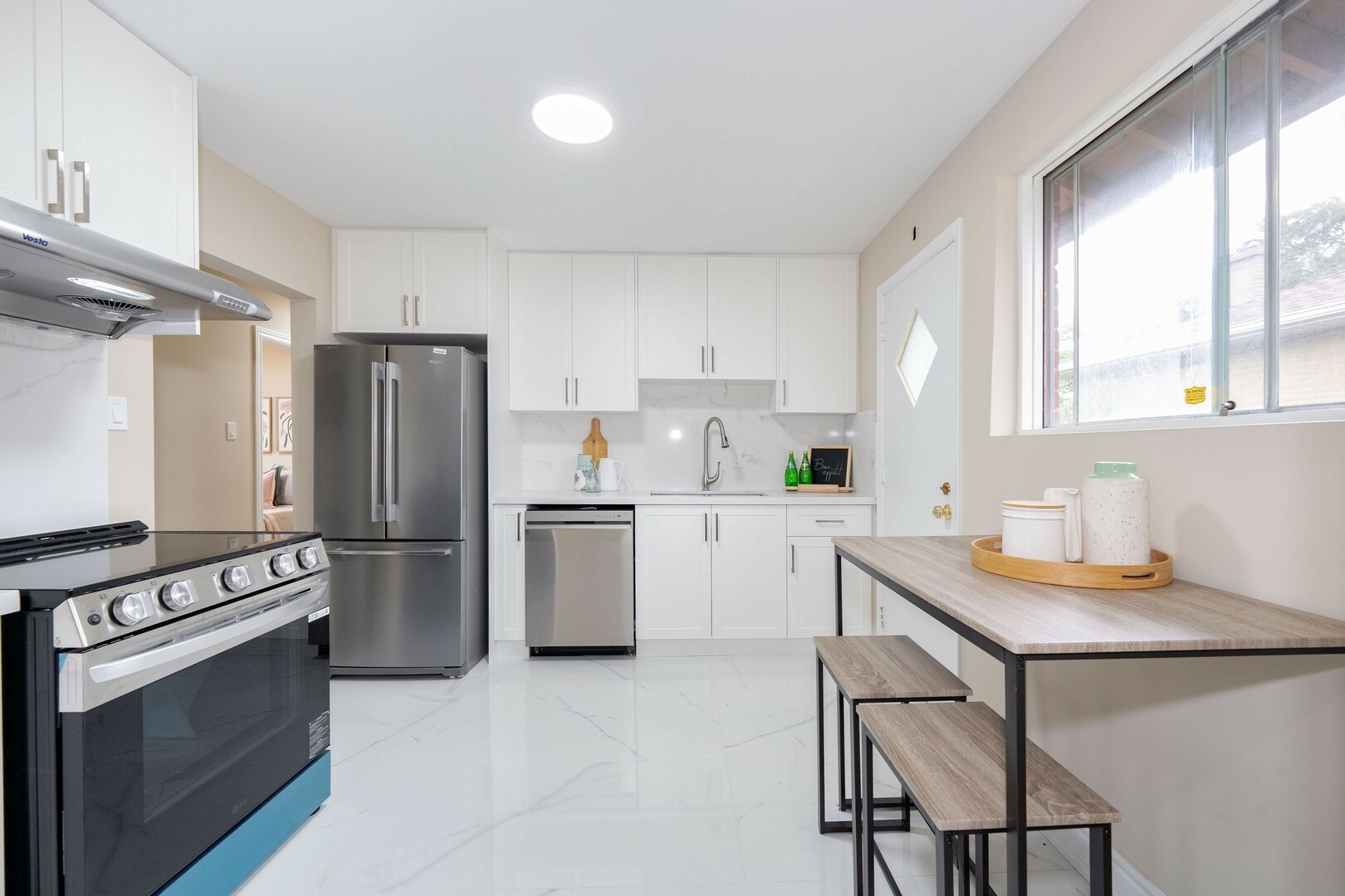Totally Updated 3+1 Bedroom Bungalow * Hardwood Floors Thru-Out * Vinyl Floor in Basement * Separate Side Entrance to Finished Basement In-Law Suite with Kitchen, Rec Rm and 4 pc. Bath * 2 New Kitchens with Quartz Counters and Backsplash * 7 New Appliances * Updated Bathrooms * Updated Flooring * All New Doors * Pot Lights * 200 Amp Panel