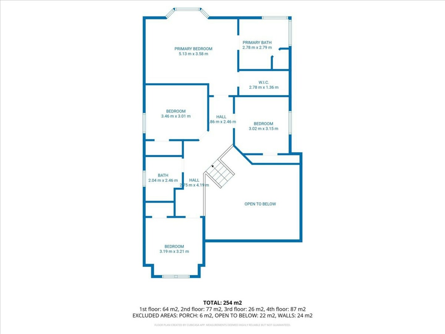| Primary Bedroom | Second level | 5.13 x 3.58 (meters) |