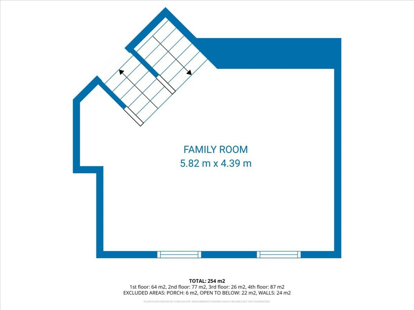 | Family room | Main level | 5.82 x 4.39 (meters) |