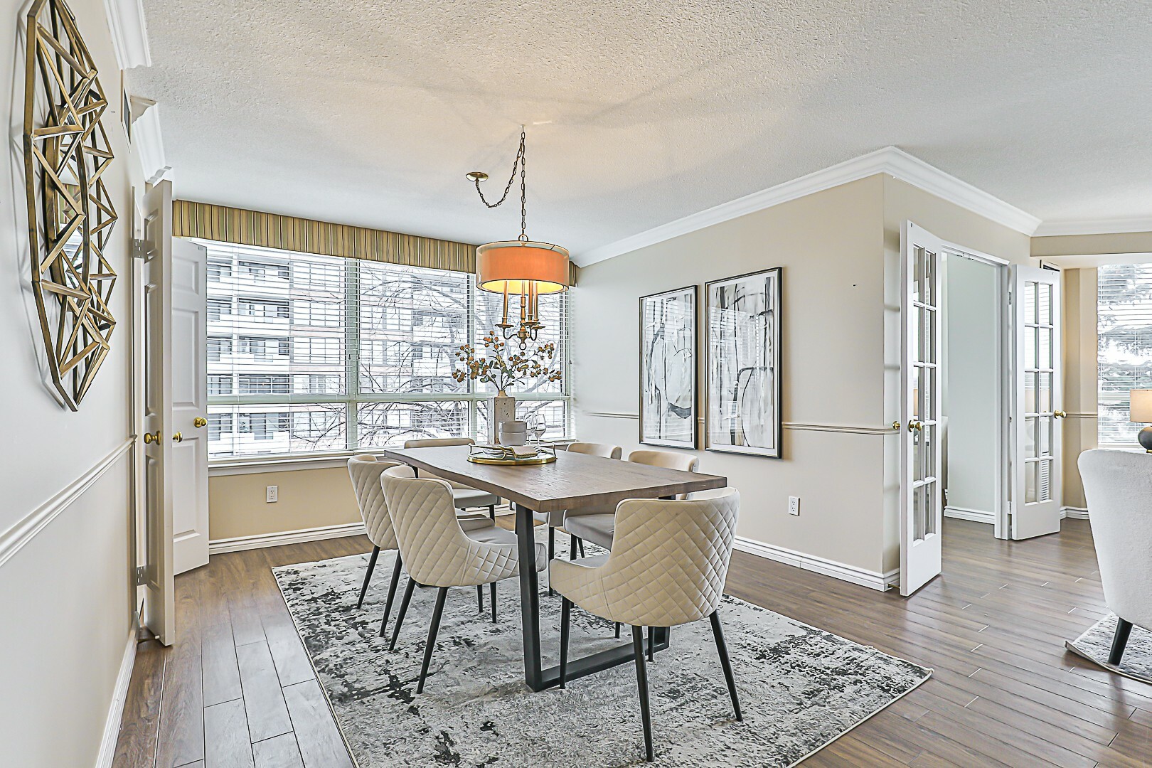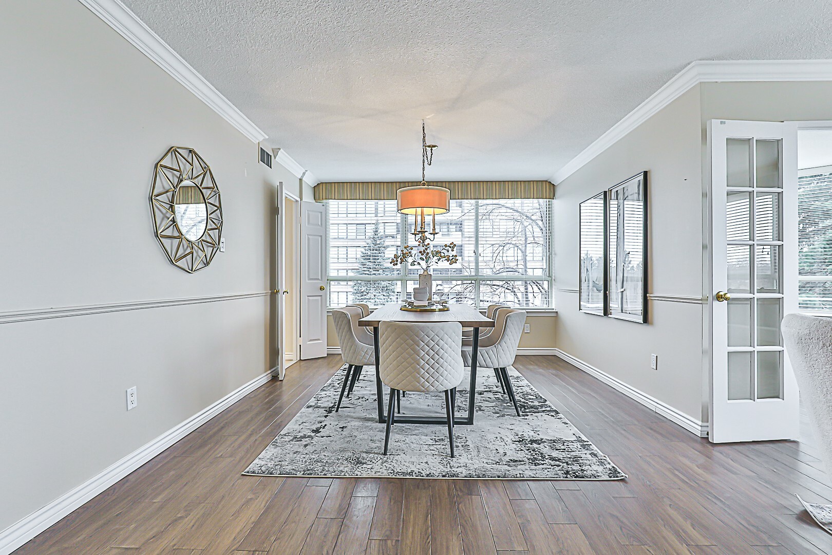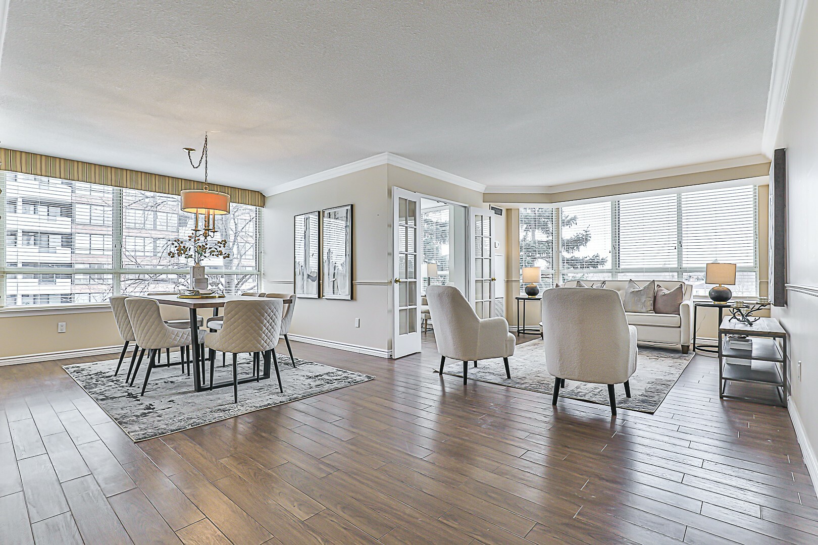 You'll love this sunfilled corner unit in the prestigious "Tridel Walden Pond 2" condos. Over 1500 sq. ft of functional living space perfect for your "house sized" furniture. This open concept layout is an entertainers delight with generous sized principle rooms....plenty of room to host family & friends for Christmas dinner! Truly "turnkey" with beautifully renovated baths, hardwood look laminate flooring, crown moulding in the living room, custom eat-in kitchen boasting granite counters, pot drawers, pantry & under cabinet lighting, and a gorgeous primary suite with walk-out to the balcony, walk-in closet with custom organizers & luxurious ensuite with a walk-in shower and soaker tub. A large balcony is perfect for your morning coffee and the solarium is ideal for your home office or hobby room. No car necessary here as it's the perfect location across from all major stores and eateries at Markville Mall and just steps away from walking trails, Milne park, public transit, Go Train, and community center. 24hr gated security for your peace of mind, fantastic building amenities include: indoor pool, exercise room, party room, guest suites, billiards, outdoor bbq, tennis court and library. All utilities, cable tv and internet included. No dogs allowed. Hurry!