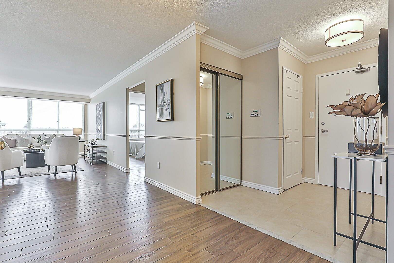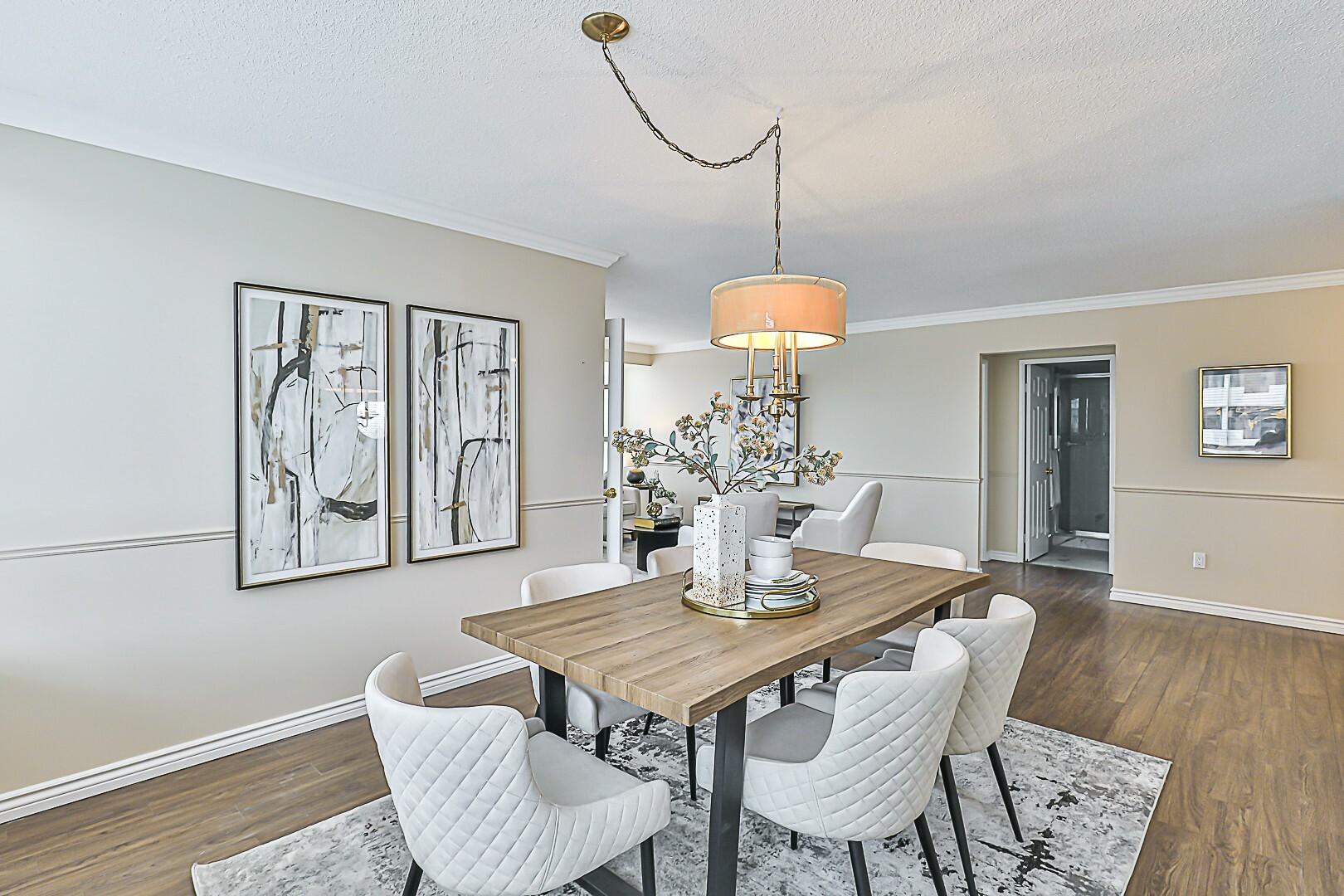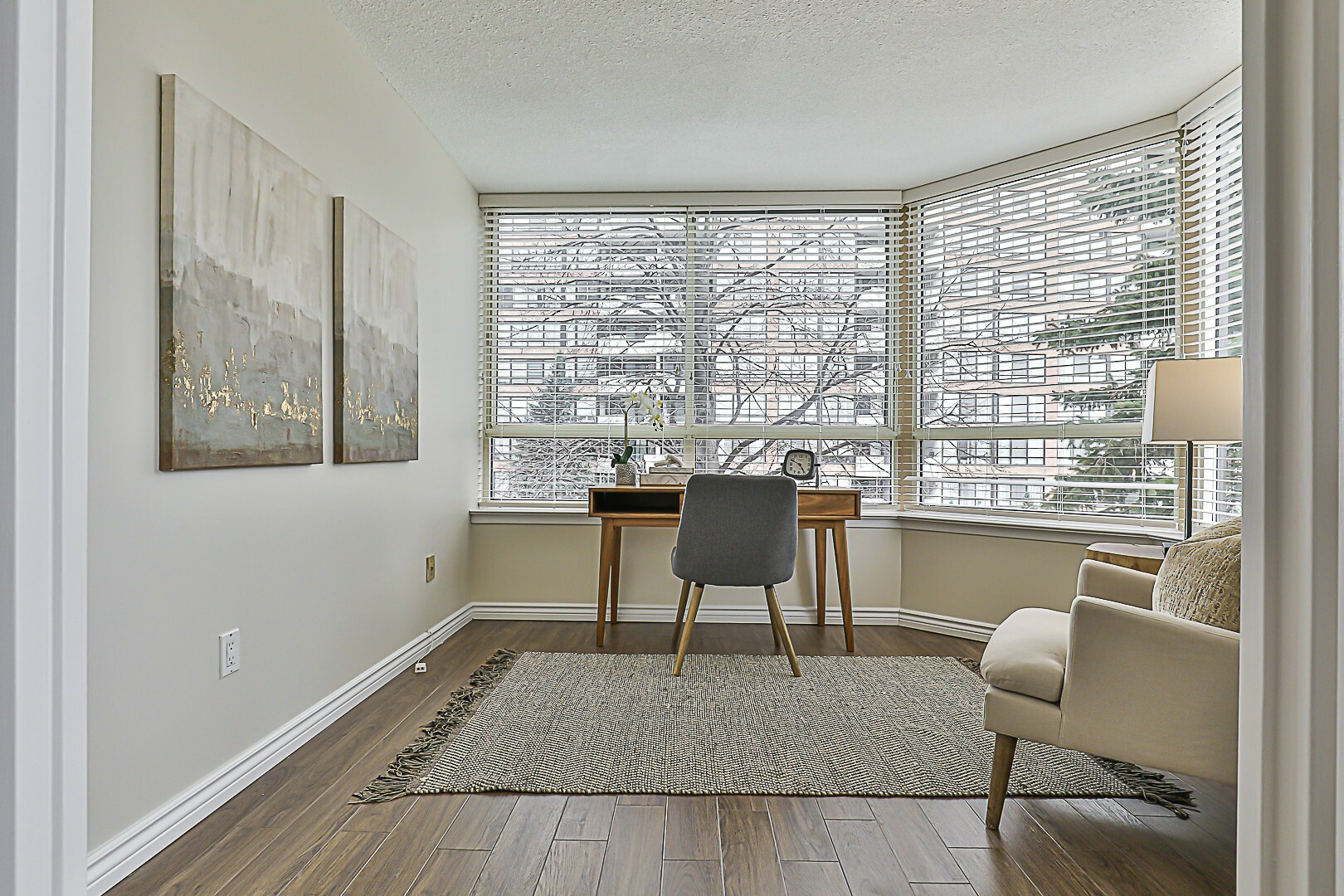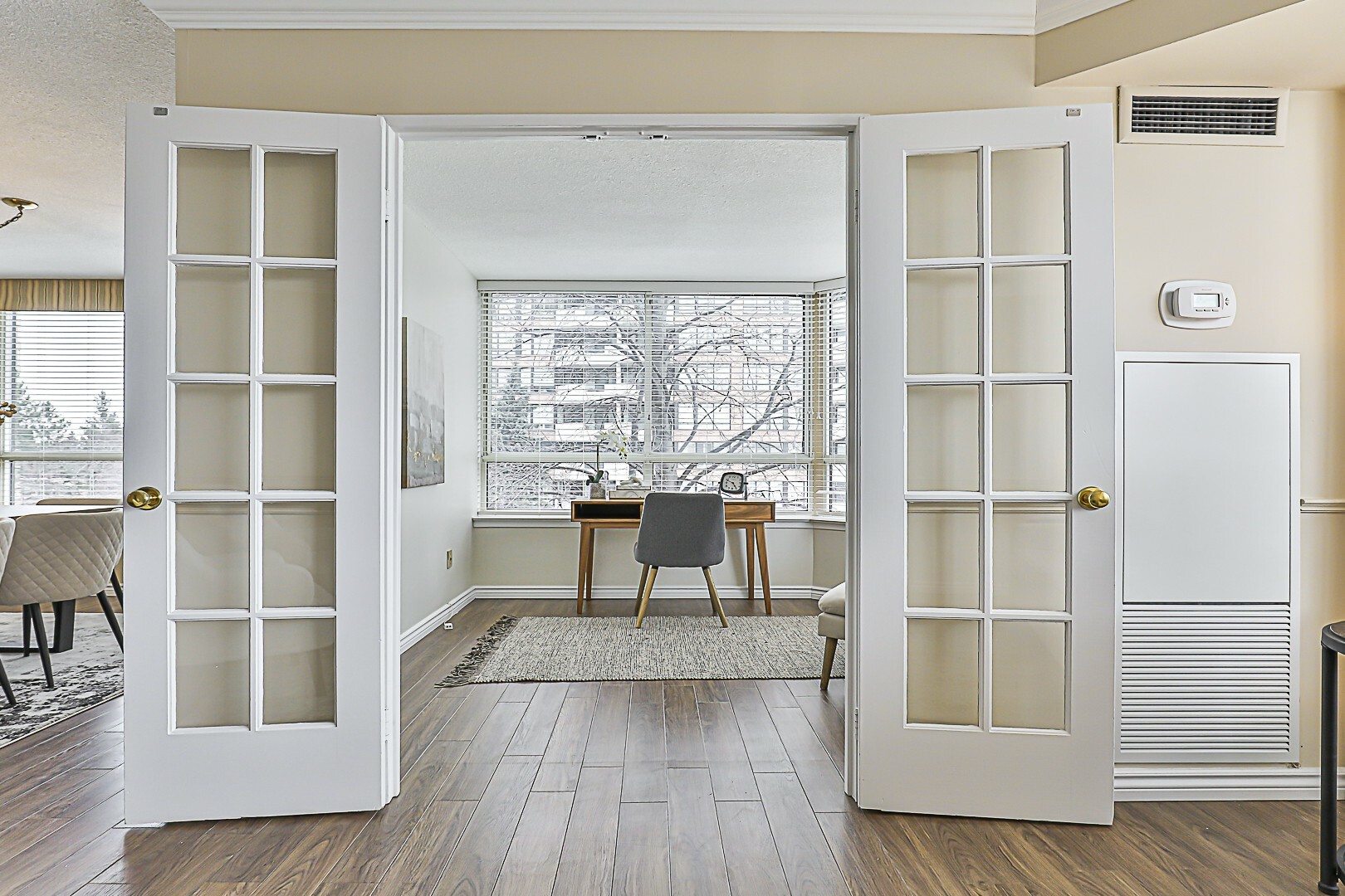 You'll love this sunfilled corner unit in the prestigious "Tridel Walden Pond 2" condos. Over 1500 sq. ft of functional living space perfect for your "house sized" furniture. This open concept layout is an entertainers delight with generous sized principle rooms....plenty of room to host family & friends for Christmas dinner! Truly "turnkey" with beautifully renovated baths, hardwood look laminate flooring, crown moulding in the living room, custom eat-in kitchen boasting granite counters, pot drawers, pantry & under cabinet lighting, and a gorgeous primary suite with walk-out to the balcony, walk-in closet with custom organizers & luxurious ensuite with a walk-in shower and soaker tub. A large balcony is perfect for your morning coffee and the solarium is ideal for your home office or hobby room. No car necessary here as it's the perfect location across from all major stores and eateries at Markville Mall and just steps away from walking trails, Milne park, public transit, Go Train, and community center. 24hr gated security for your peace of mind, fantastic building amenities include: indoor pool, exercise room, party room, guest suites, billiards, outdoor bbq, tennis court and library. All utilities, cable tv and internet included. No dogs allowed. Hurry!
