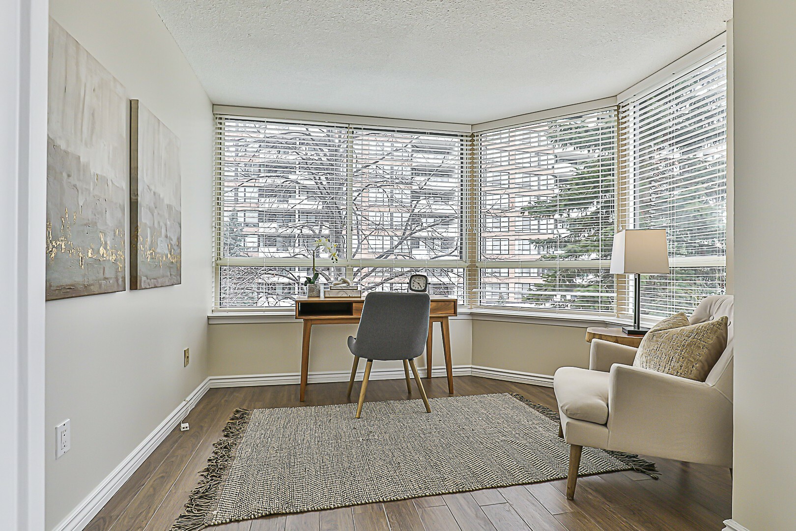 Get ready to fall in love! All of the "I wants" in this lovely suite.... wrap around windows provide loads of natural light, rooms large enough to fit your house-sized furniture, renovated bathrooms, home office, generous sized guest room, fabulous primary suite with access to the balcony and a massive customized walk-in closet, updated eat-in kitchen with ample counter space, pot drawers, pantry and so much more. Move in ready.....just bring your toothbrush!