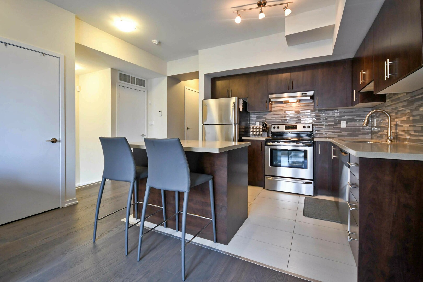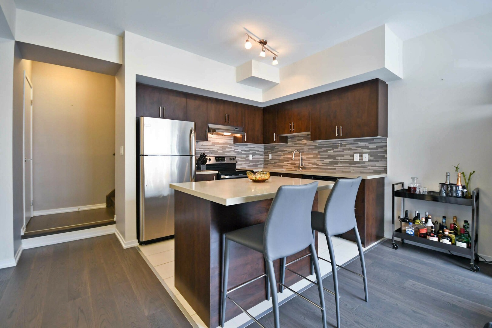 Welcome to unit B4 in "La Viva Towns". This beautiful 2 bedroom, 2 bath townhome is located in a prime Woodbridge location. This home features everything you need. Open concept living on main level is perfect for family time and entertaining. Many upgrades including Oak Staircase, Hardwood floors on main level, quartz countertops, 12"x24" porcelain tiles, stainless appliances plus much more. Located close to public and catholic schools, transit, parks, shopping and highway. Don't miss the opportunity to call this home!