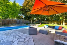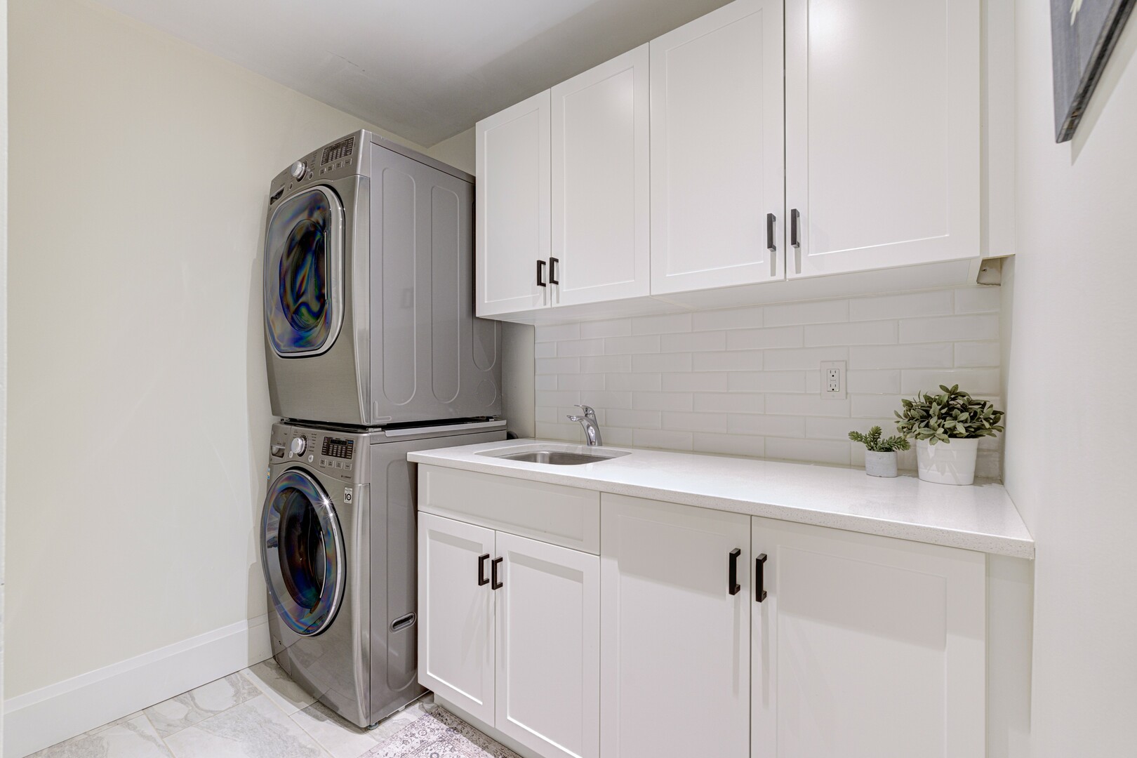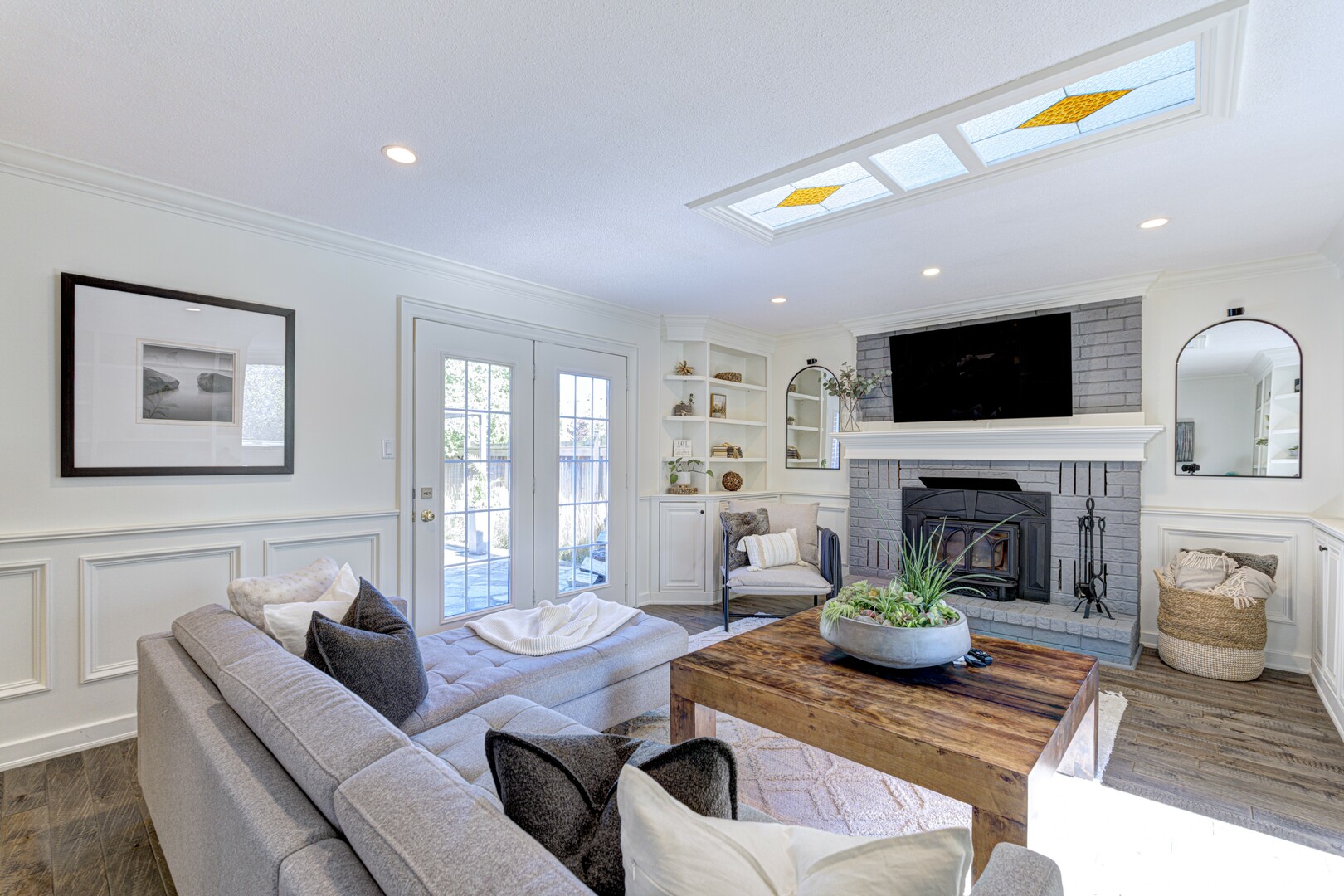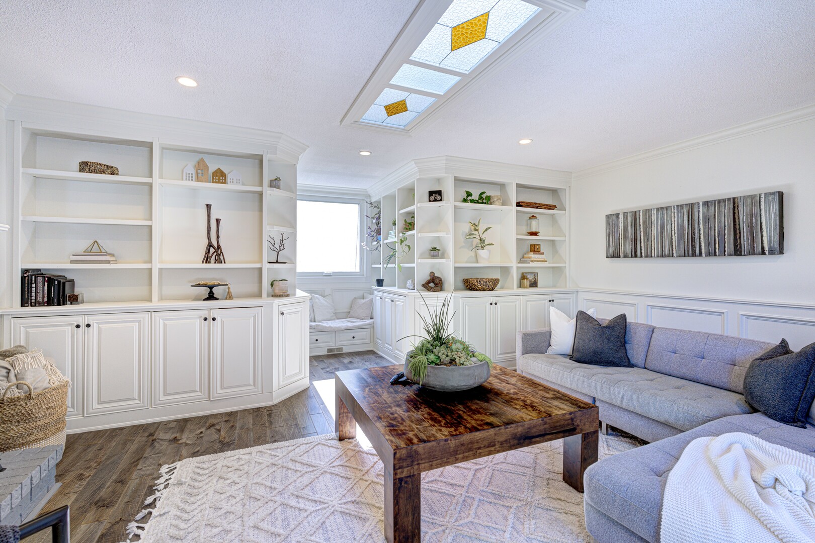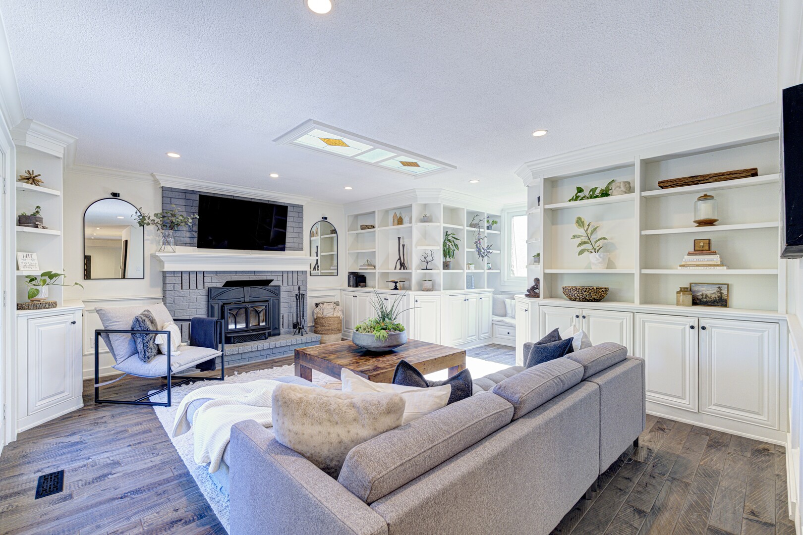Multiple living spaces offer flexibility: a cozy family room with custom built-ins and a wood-burning fireplace and the main floors 3rd! walkout, a sprawling front living room with a reading nook overlooking the gardens and serene views of the pool—perfect whether you’re entertaining, relaxing, or simply enjoying quiet moments, a main floor laundry-powder room complete this level.